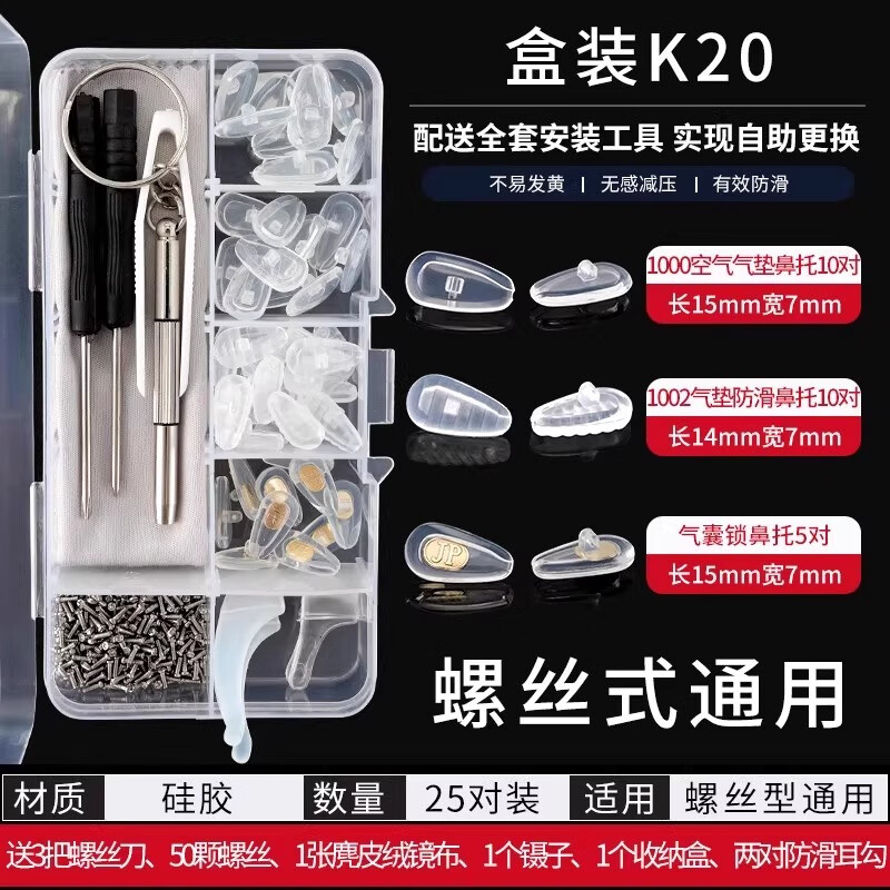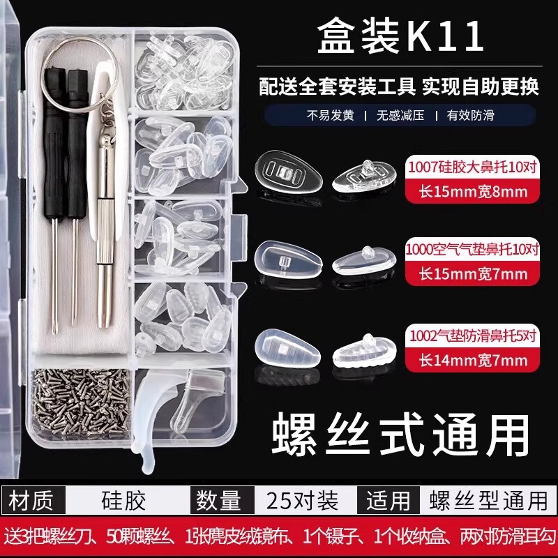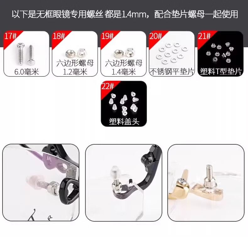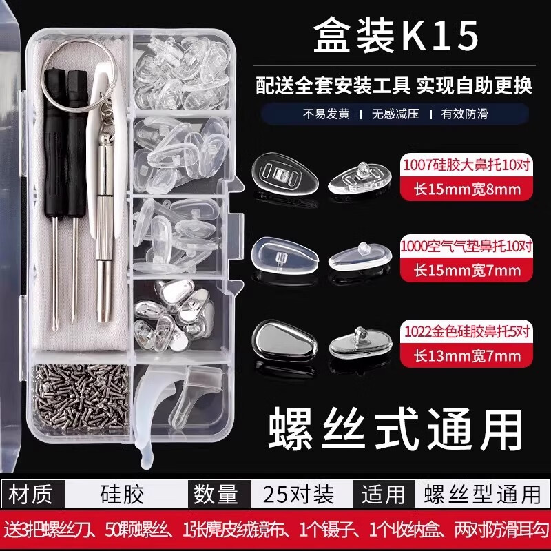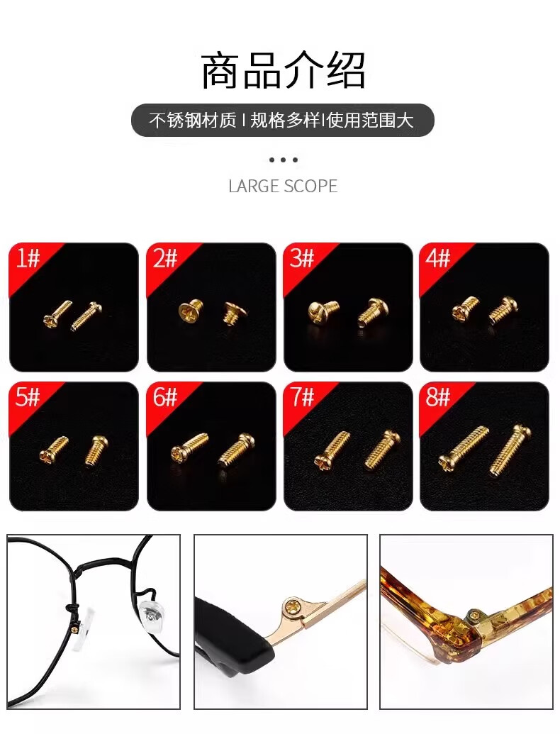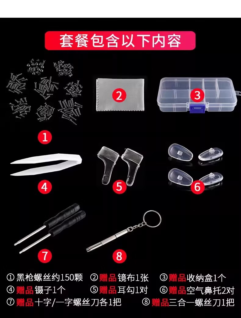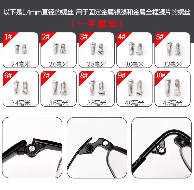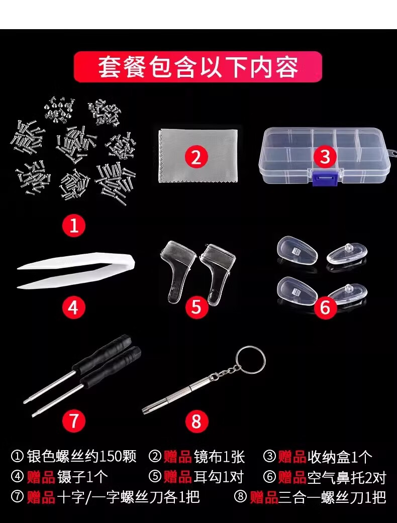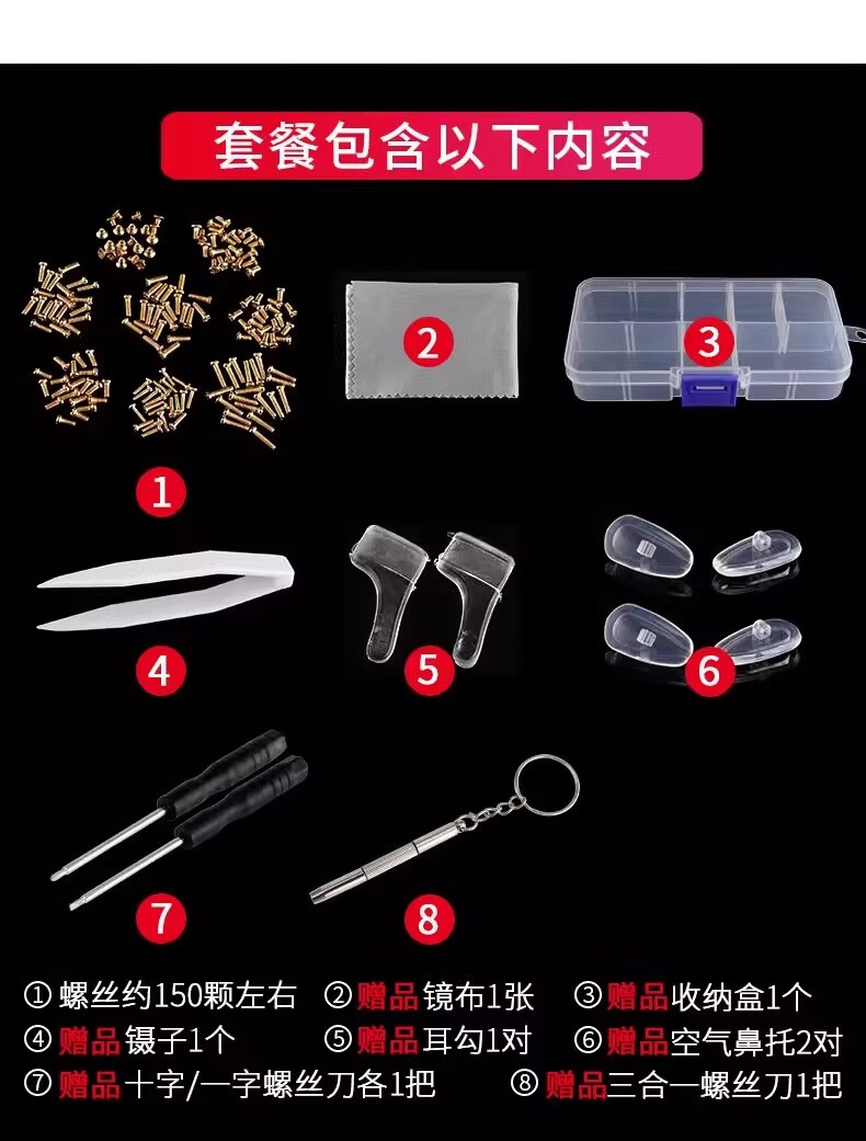 GOGOSOON眼镜维修小螺丝框架腿镙丝硅胶鼻托垫螺丝刀零配件修理工具盒套装