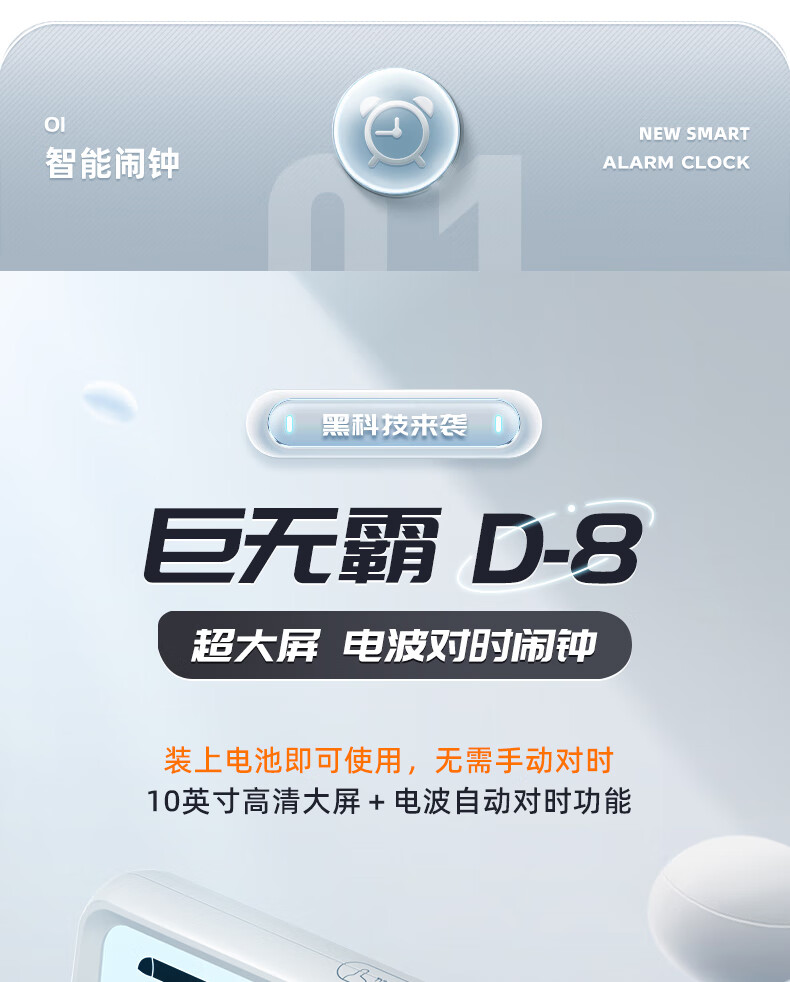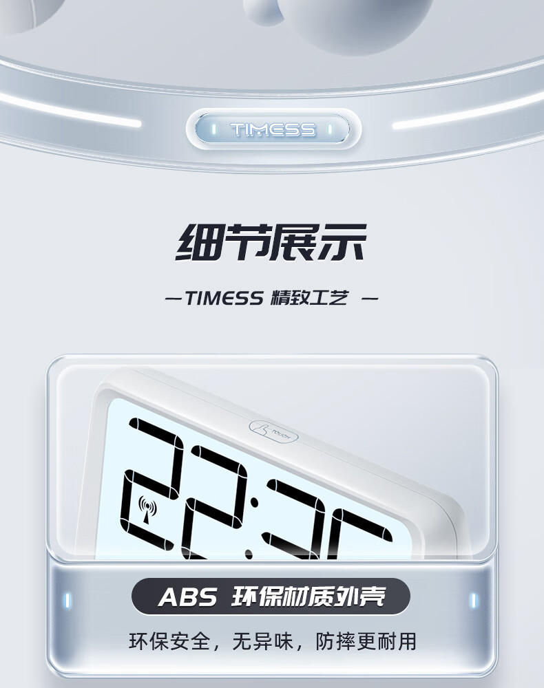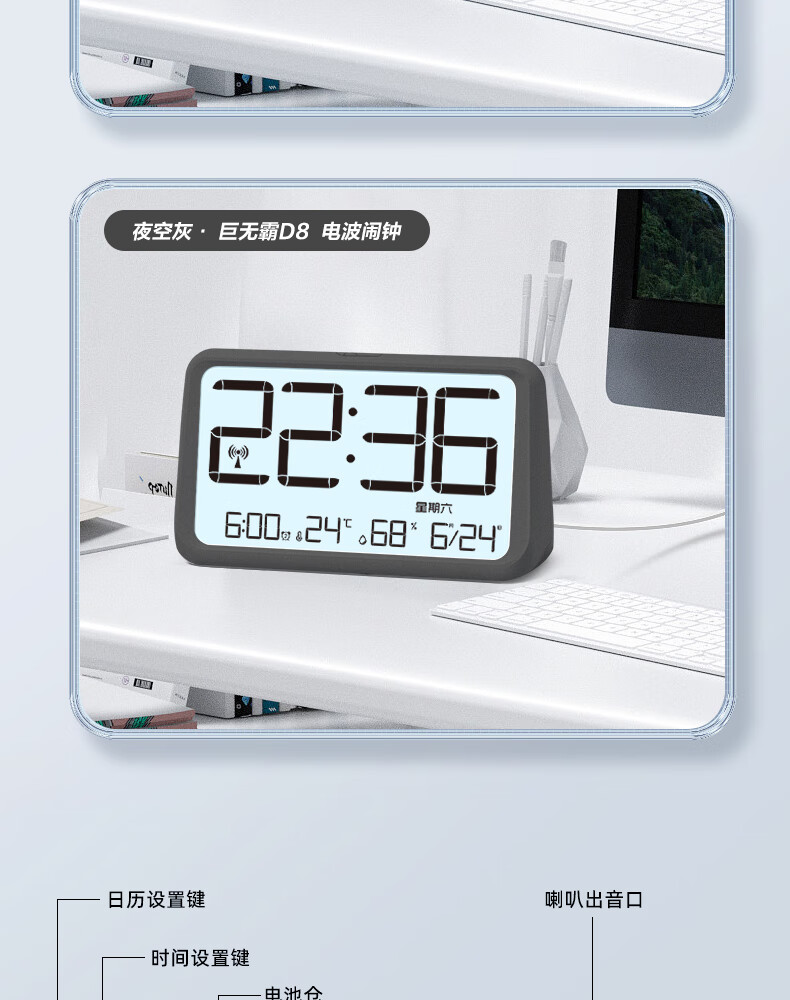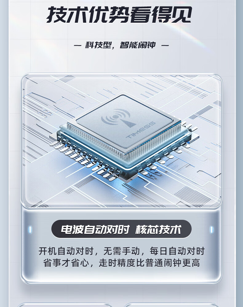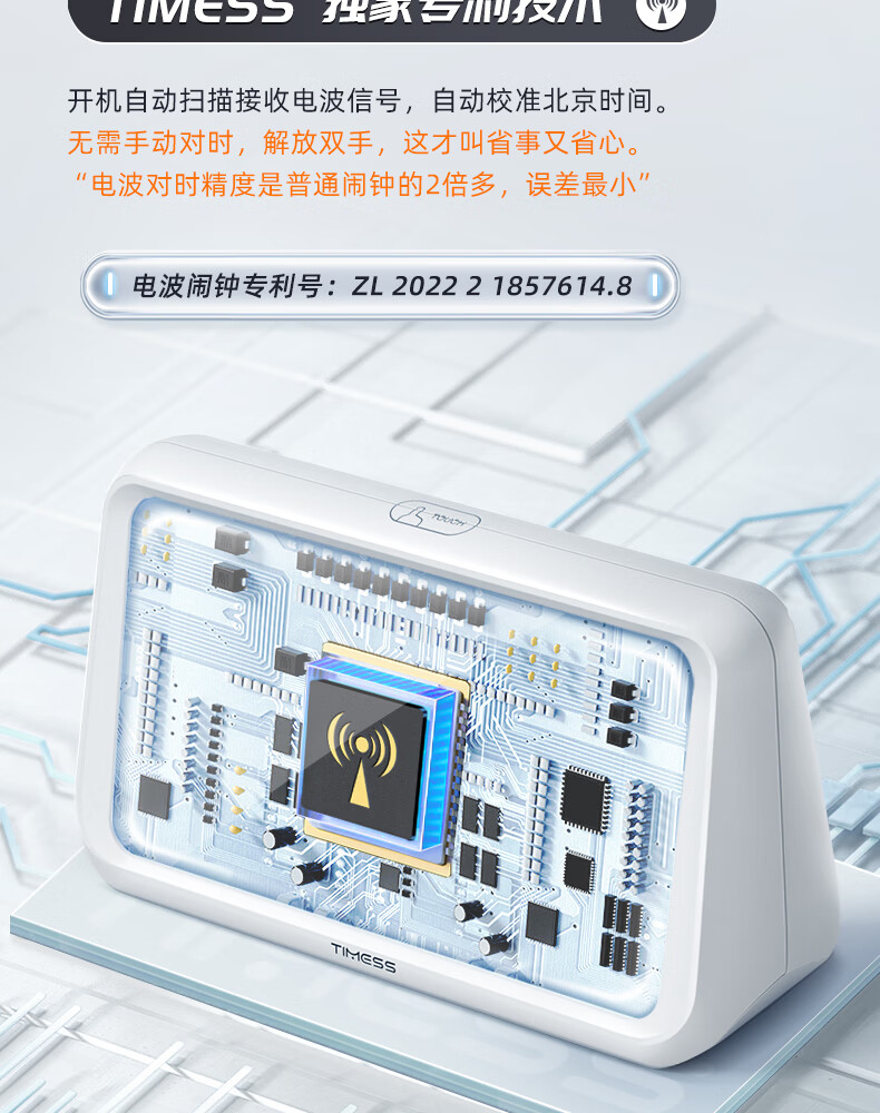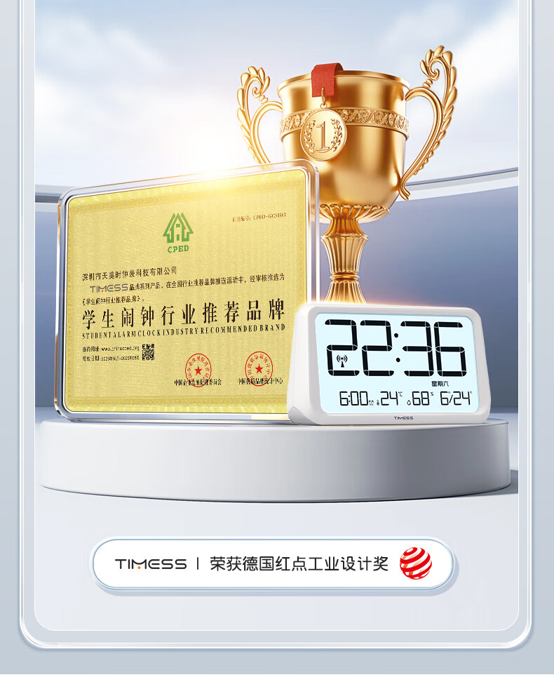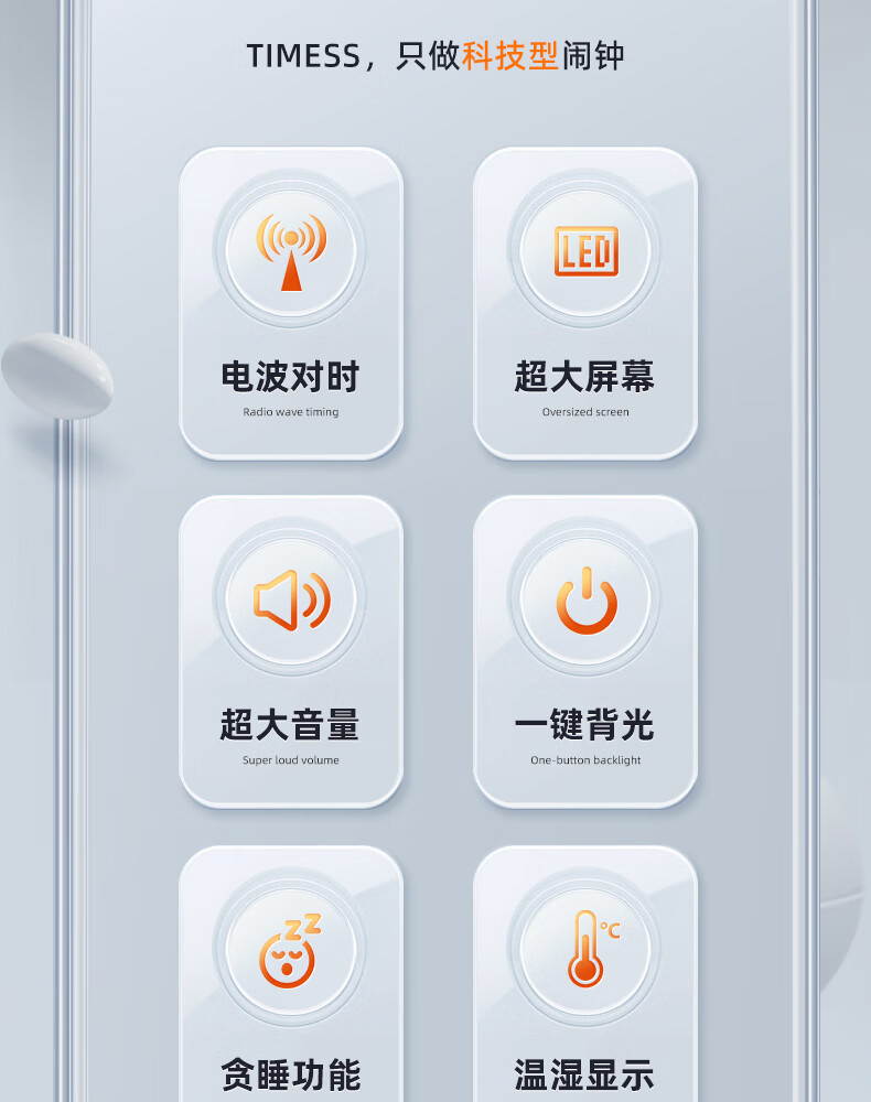 Timess电波自动对时超大屏智能温湿度闹钟儿童学生专用起床神器背光贪睡时钟大音量床头钟开学季礼物22cm