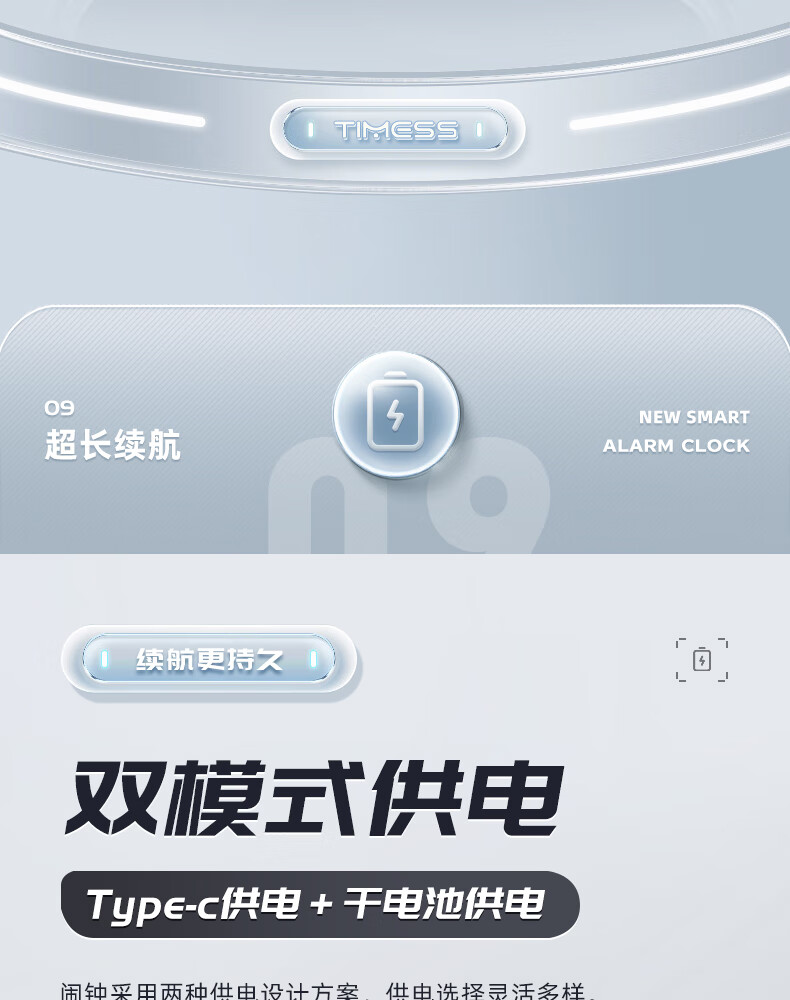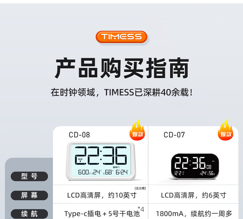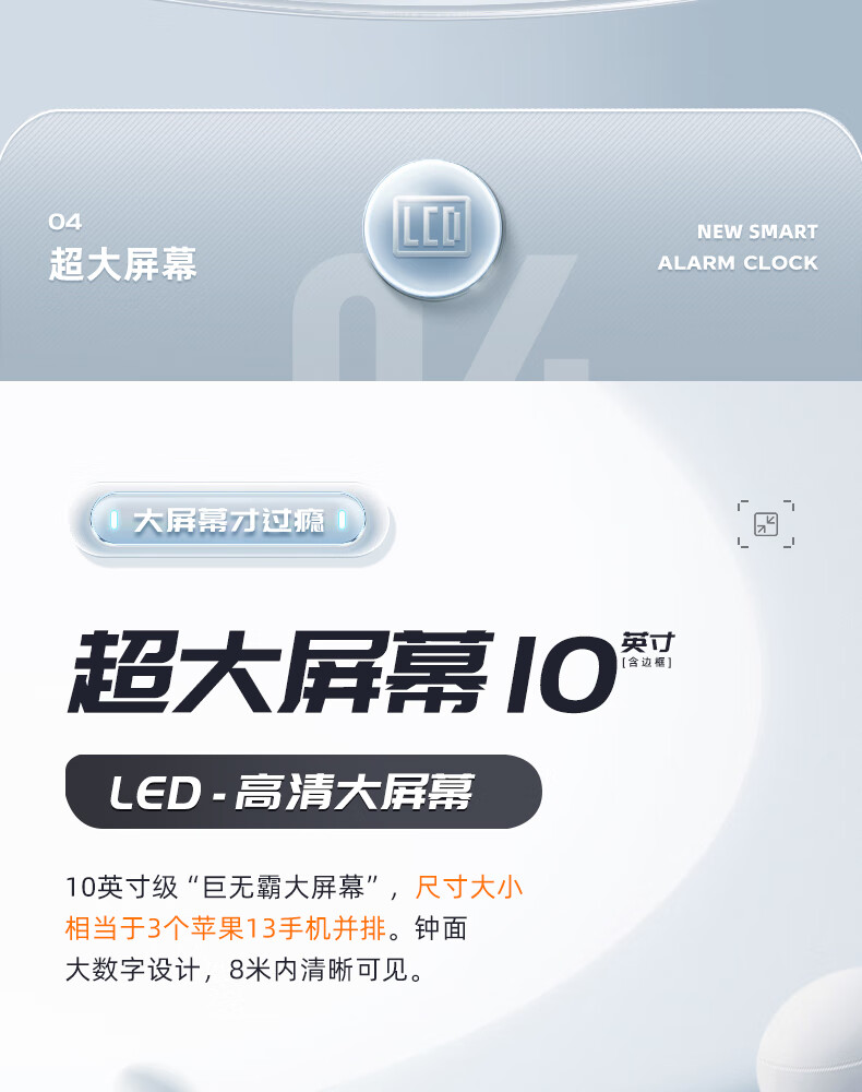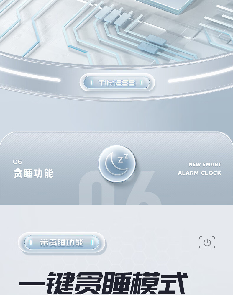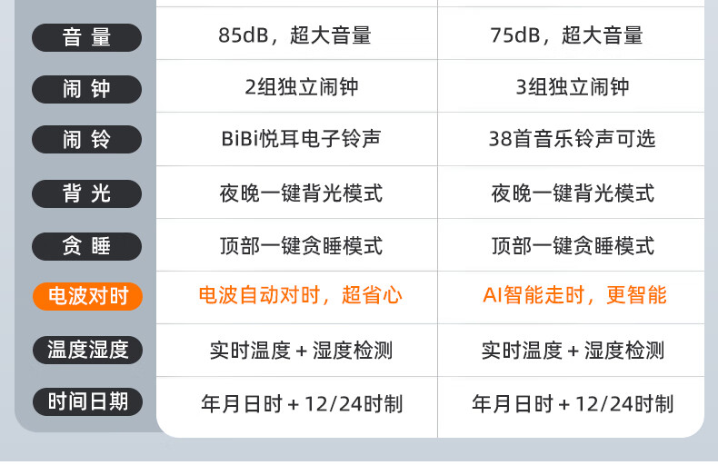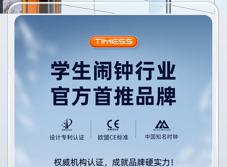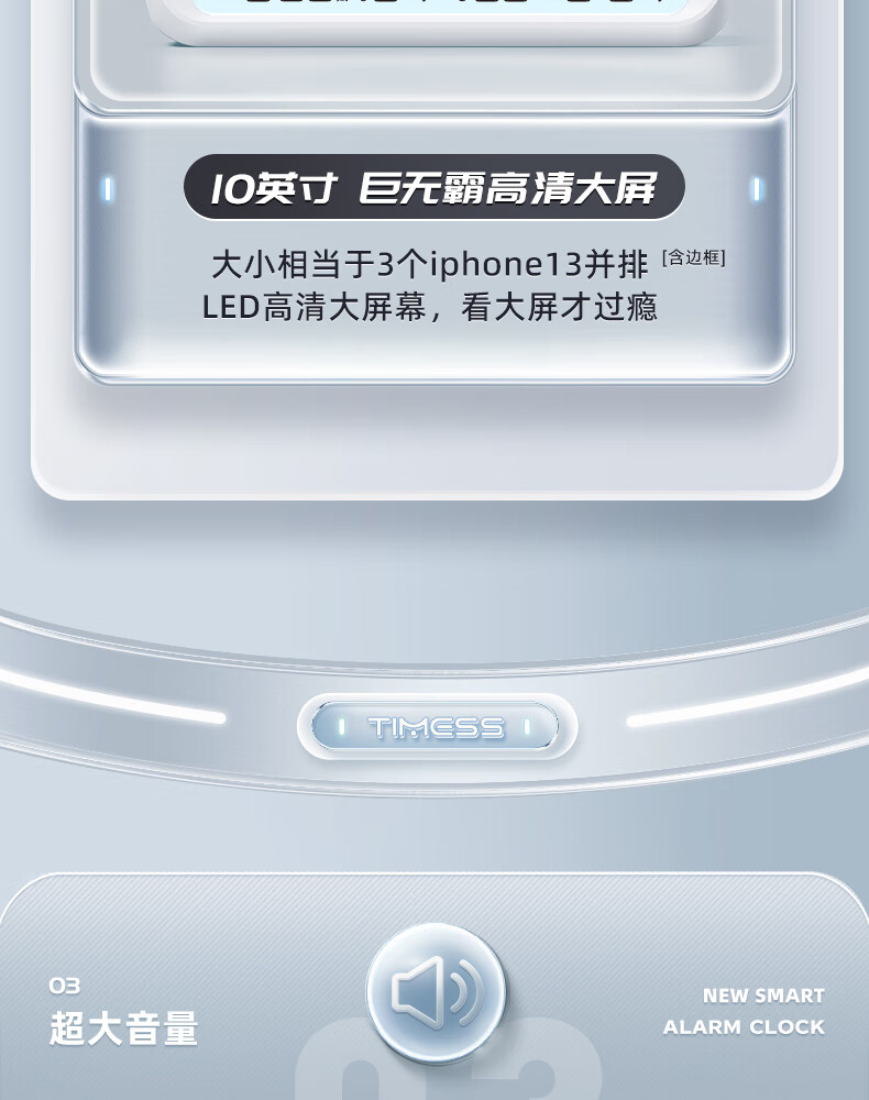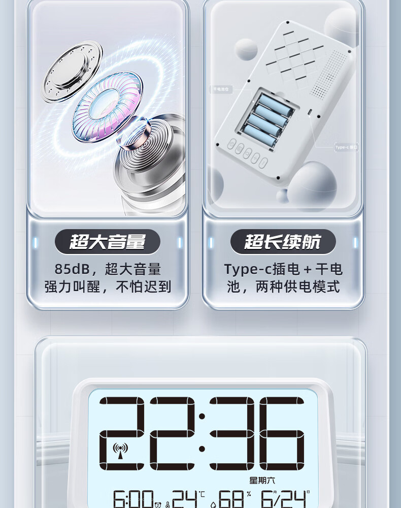 Timess电波自动对时超大屏智能温湿度闹钟儿童学生专用起床神器背光贪睡时钟大音量床头钟开学季礼物22cm