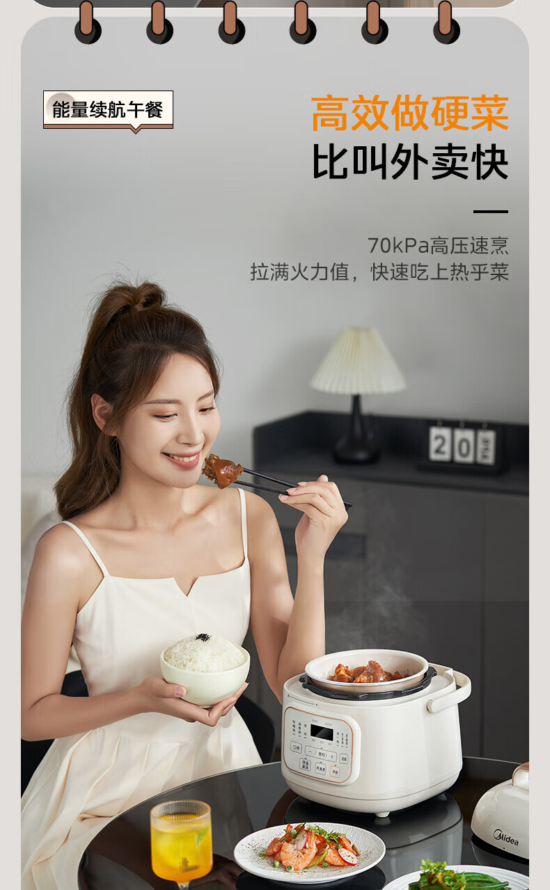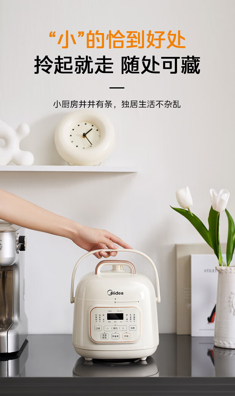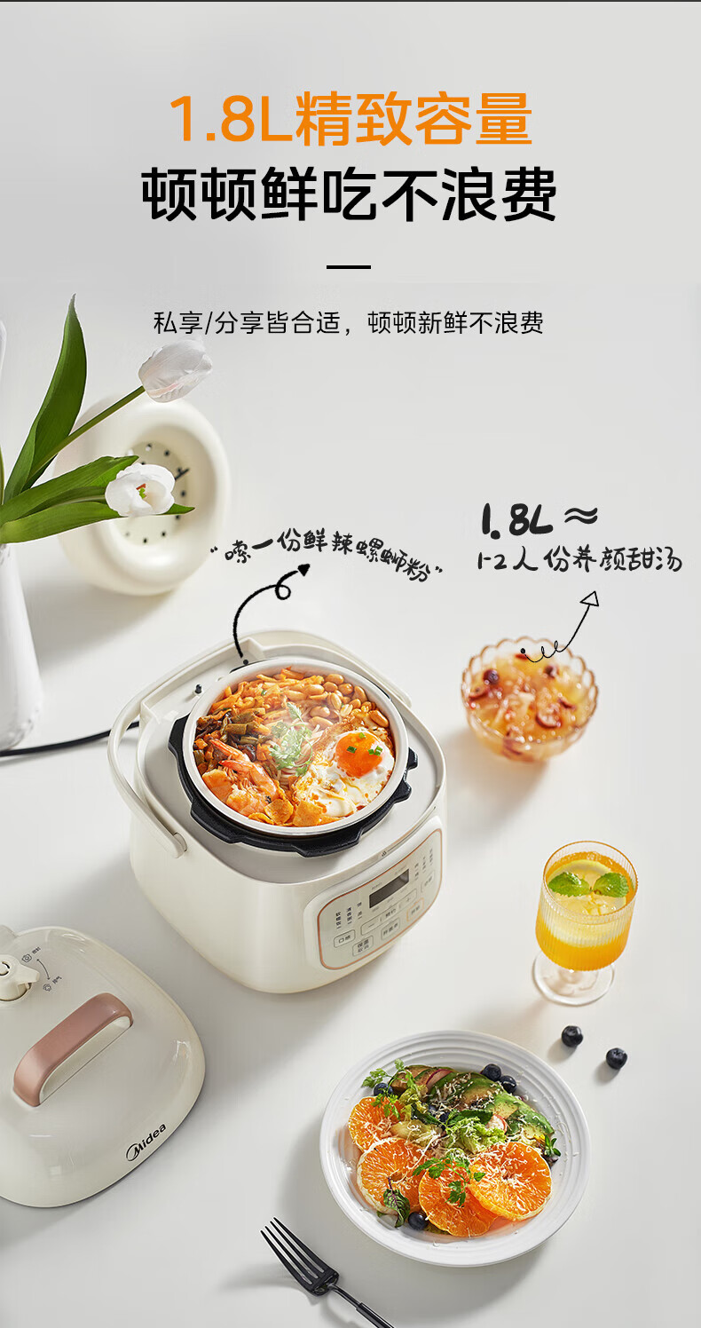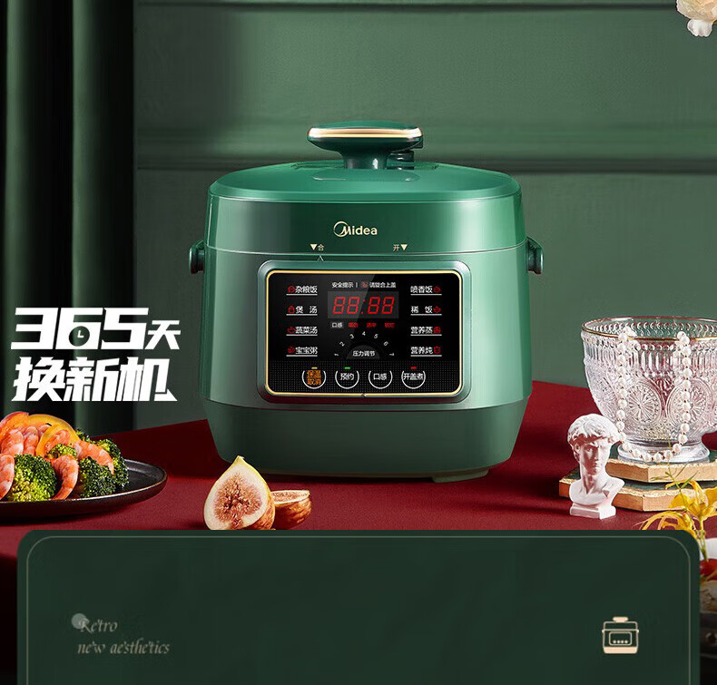 美的(Midea)电压力锅小型电高压锅小容量2.5L开学宿舍留学压力锅电饭煲智能多功能迷你家用高压1-2-3人小绿锅 【高压快煮】智能预约煮火锅 2.5L