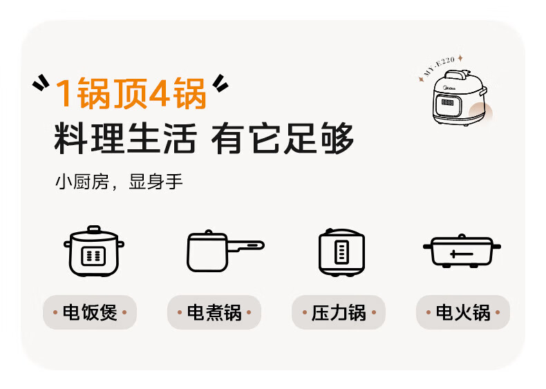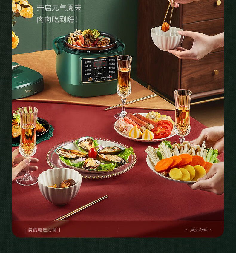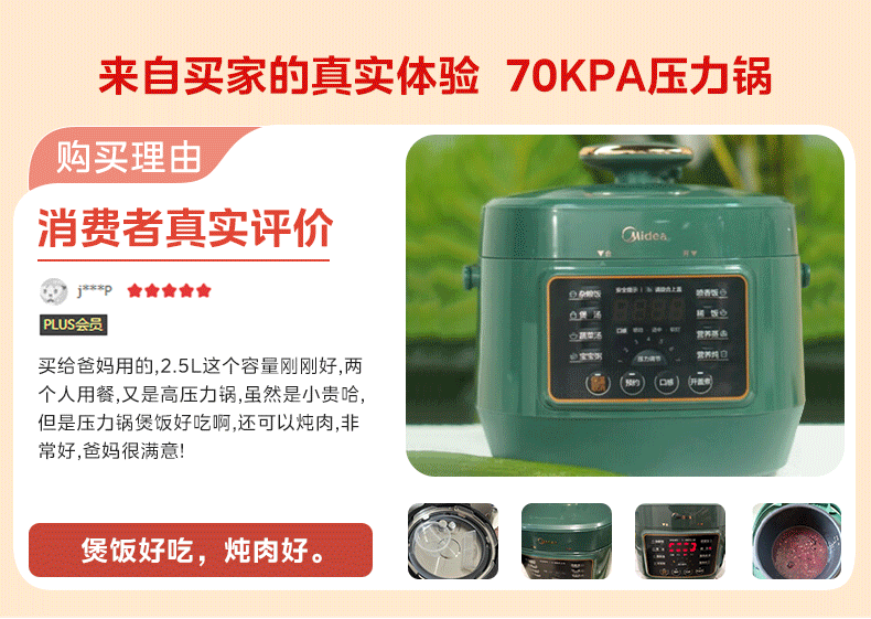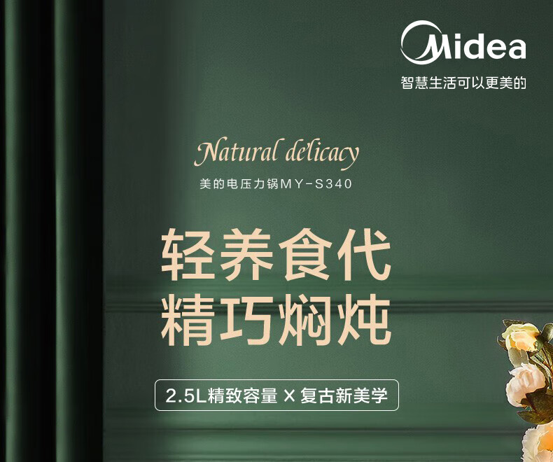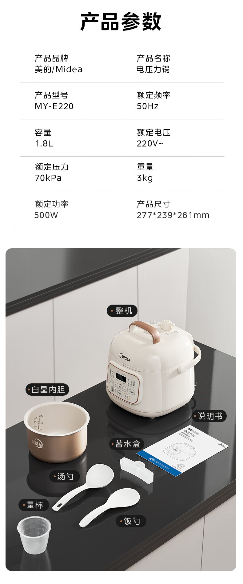 美的(Midea)电压力锅小型电高压锅小容量2.5L开学宿舍留学压力锅电饭煲智能多功能迷你家用高压1-2-3人小绿锅 【高压快煮】智能预约煮火锅 2.5L