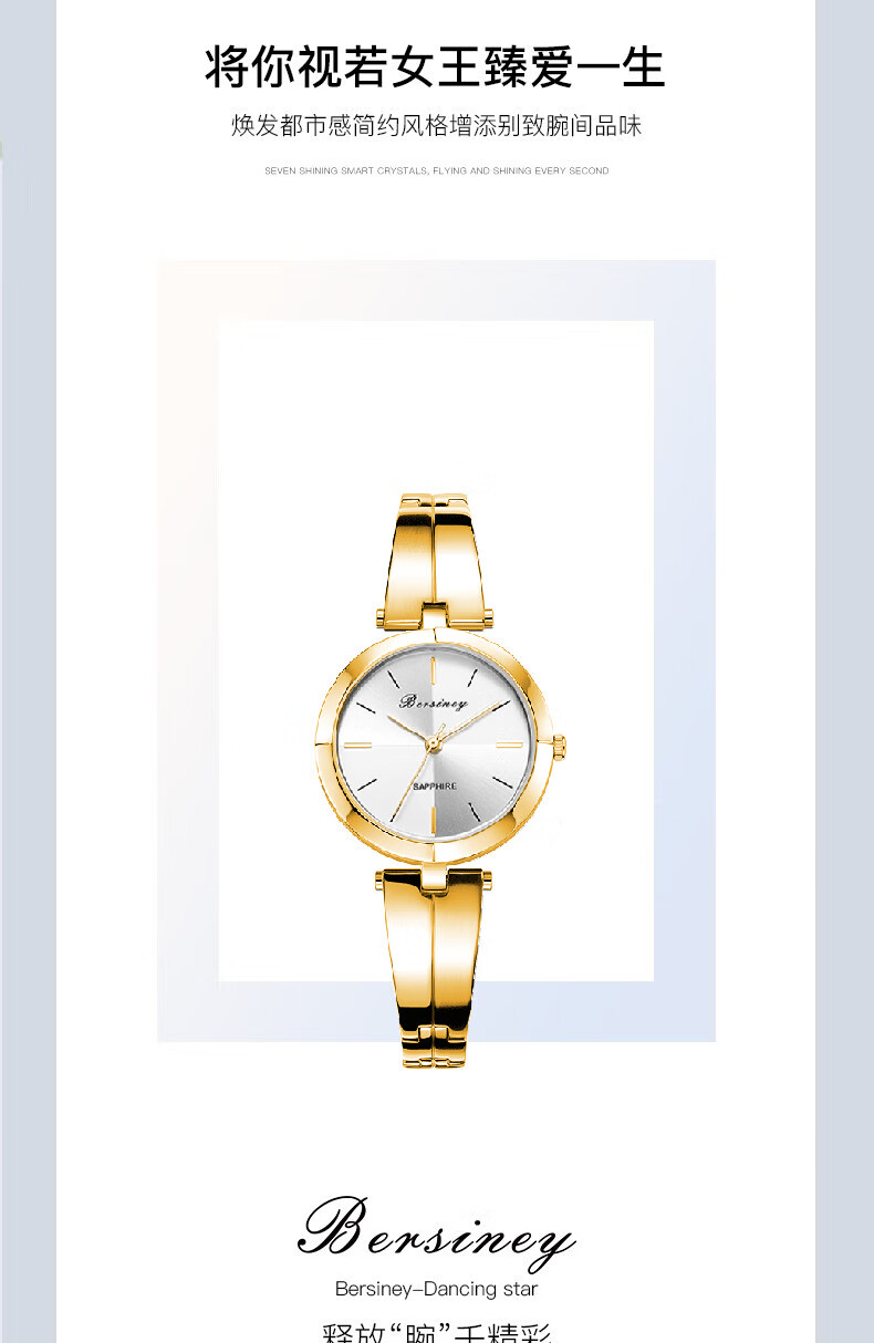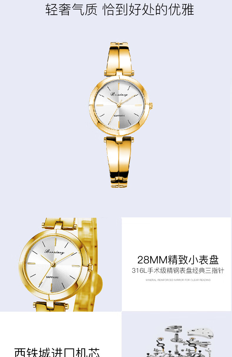 波西尼(BERSINEY) 石英腕表女表防水精致时尚手环腕表石英机芯气质手表节日礼物 WBL8106.GGW贝尔尼