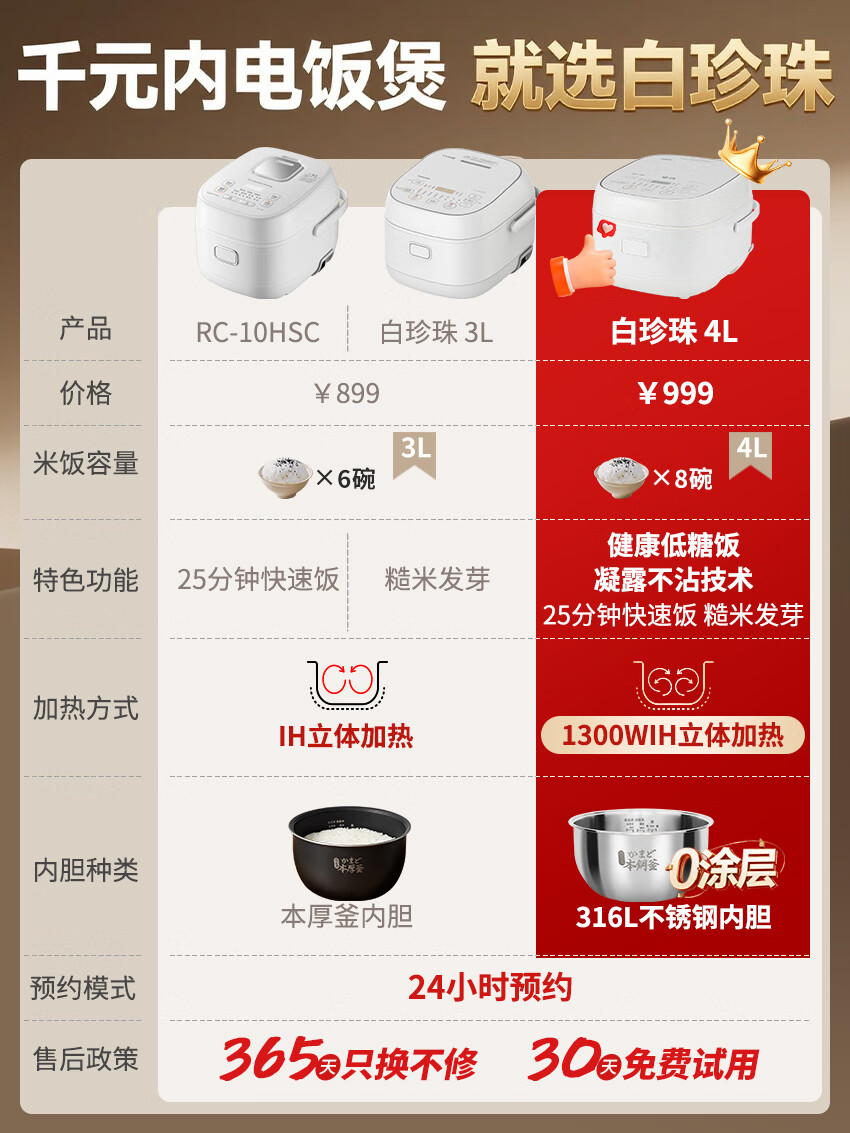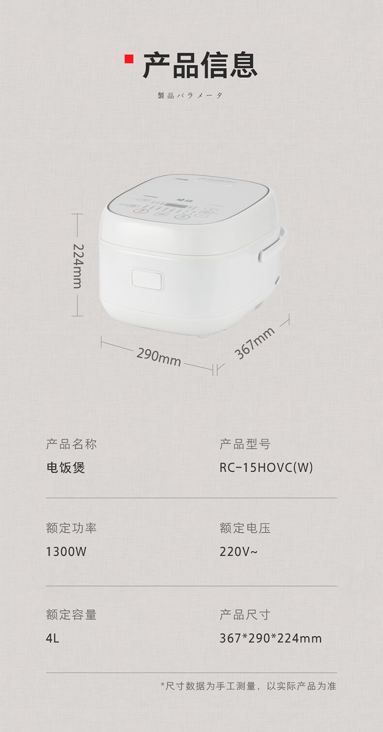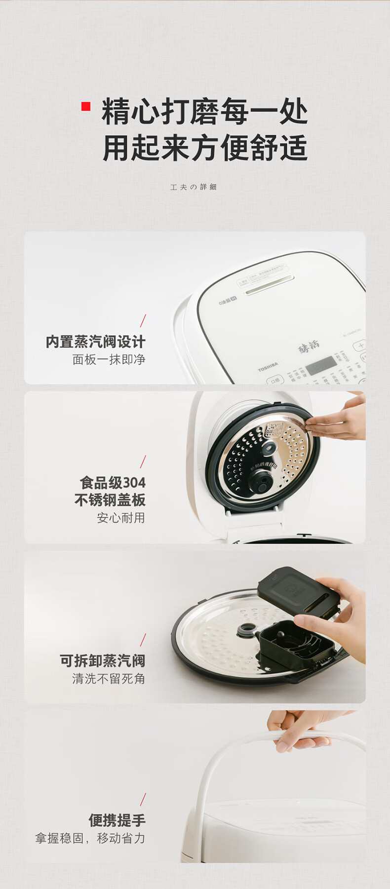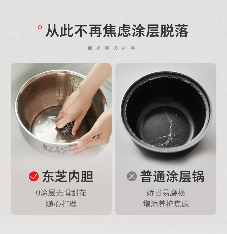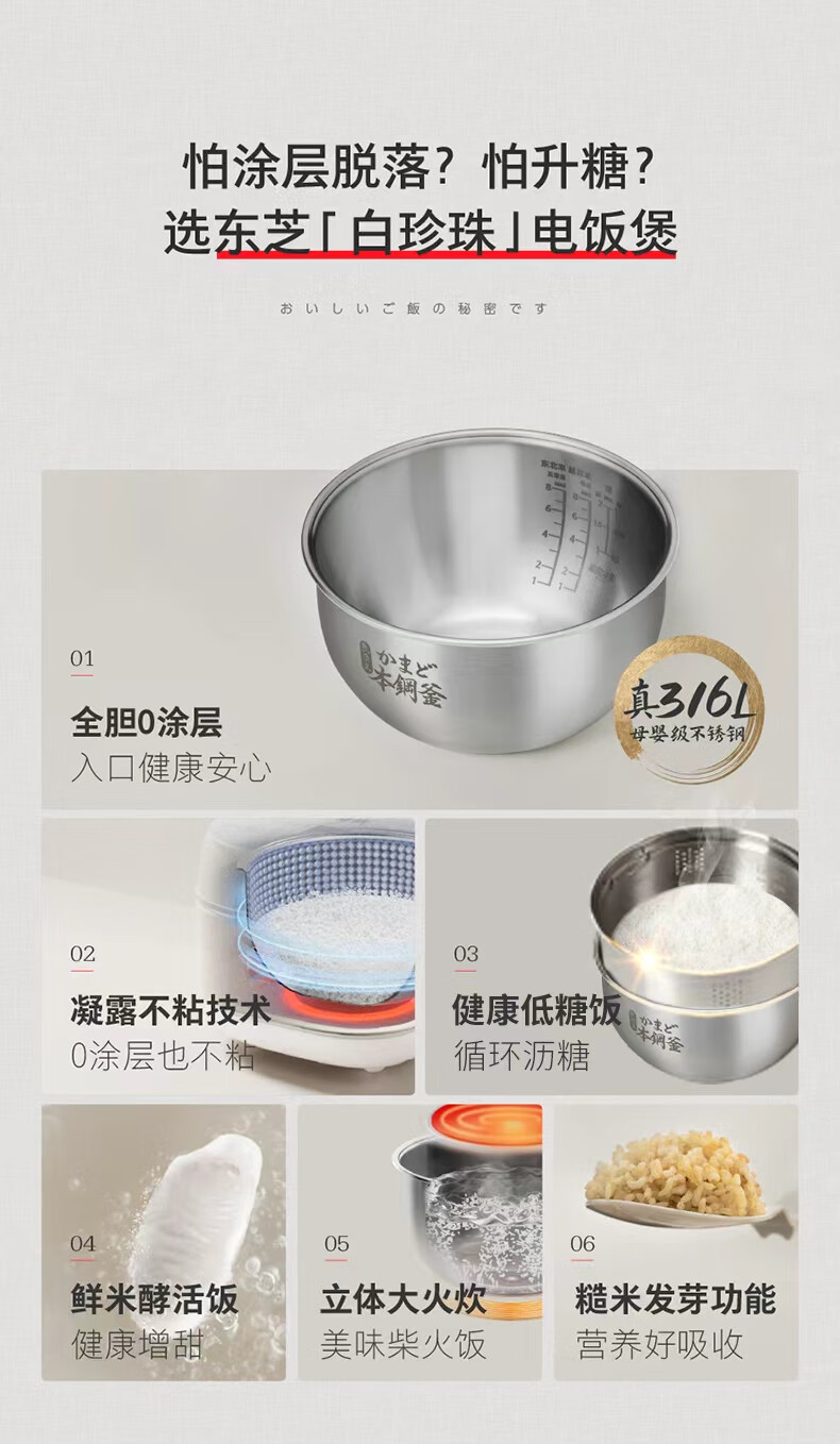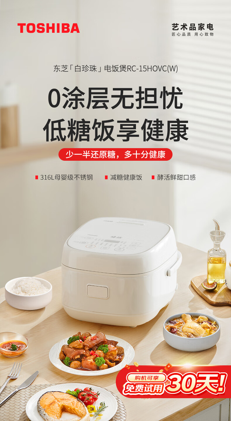 东芝(TOSHIBA)【重磅新品国家补贴20%】白珍珠0涂层电饭煲4-5人无涂层不锈钢IH低糖电饭煲4升容量 RC-15HOVC(W)