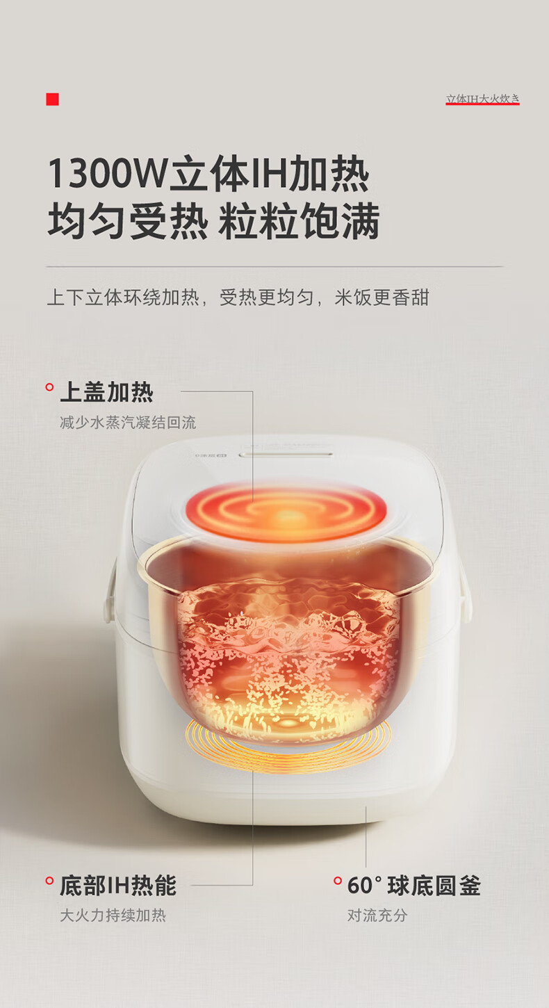 美的(Midea)电饭煲3L家用智能家电电饭锅 IH电磁加热精钢厚釜内胆2-3人一键柴火饭MB-WHS30C96 国家补贴