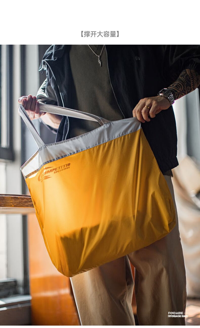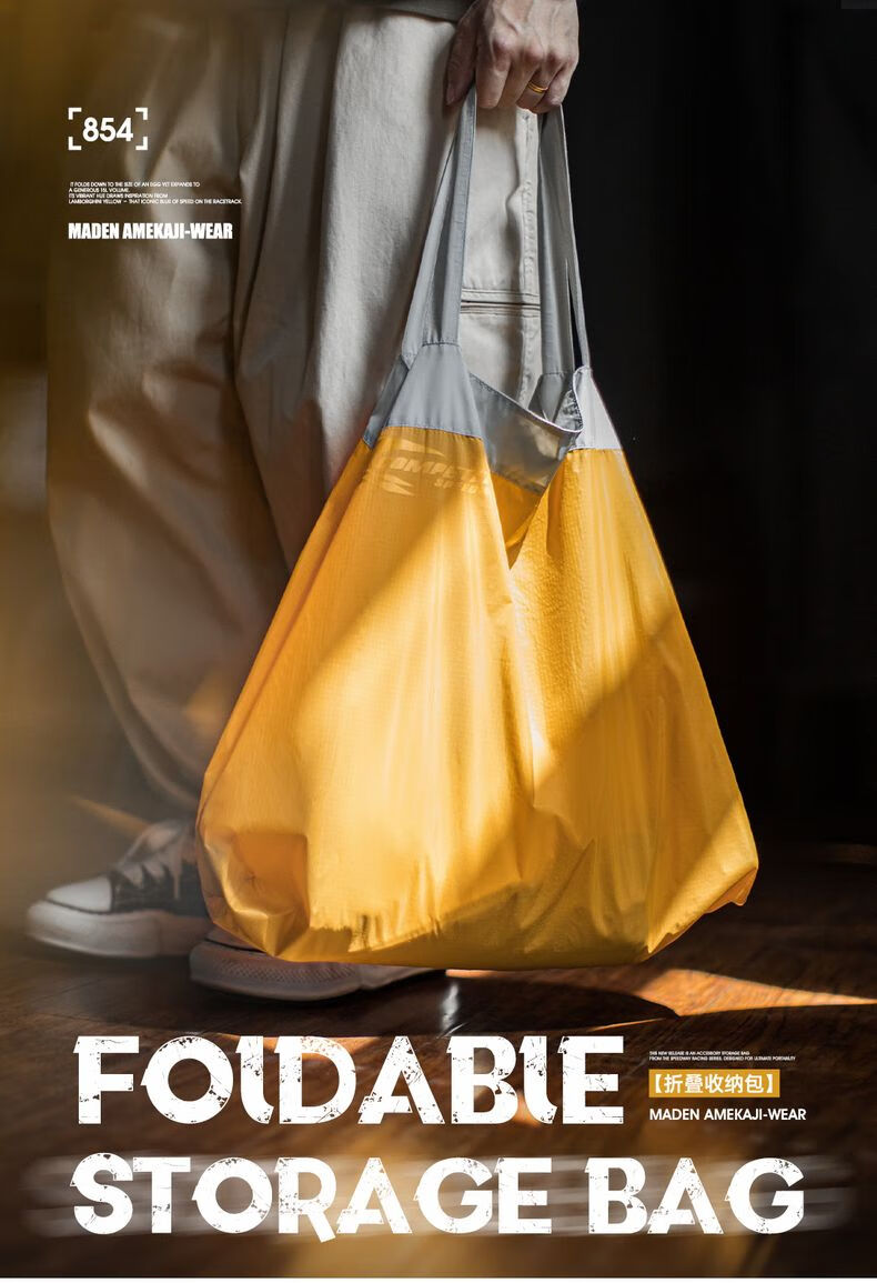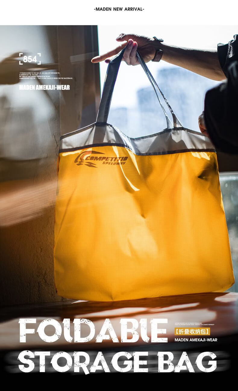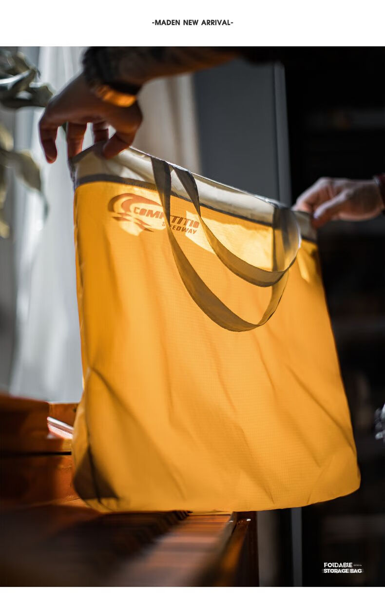 马登工装日系折叠大容量托特包黄色轻便尼龙户外手提包通勤旅行单肩包 琥珀黄【今日下单 顺丰包邮】 43cm*11cm*38cm