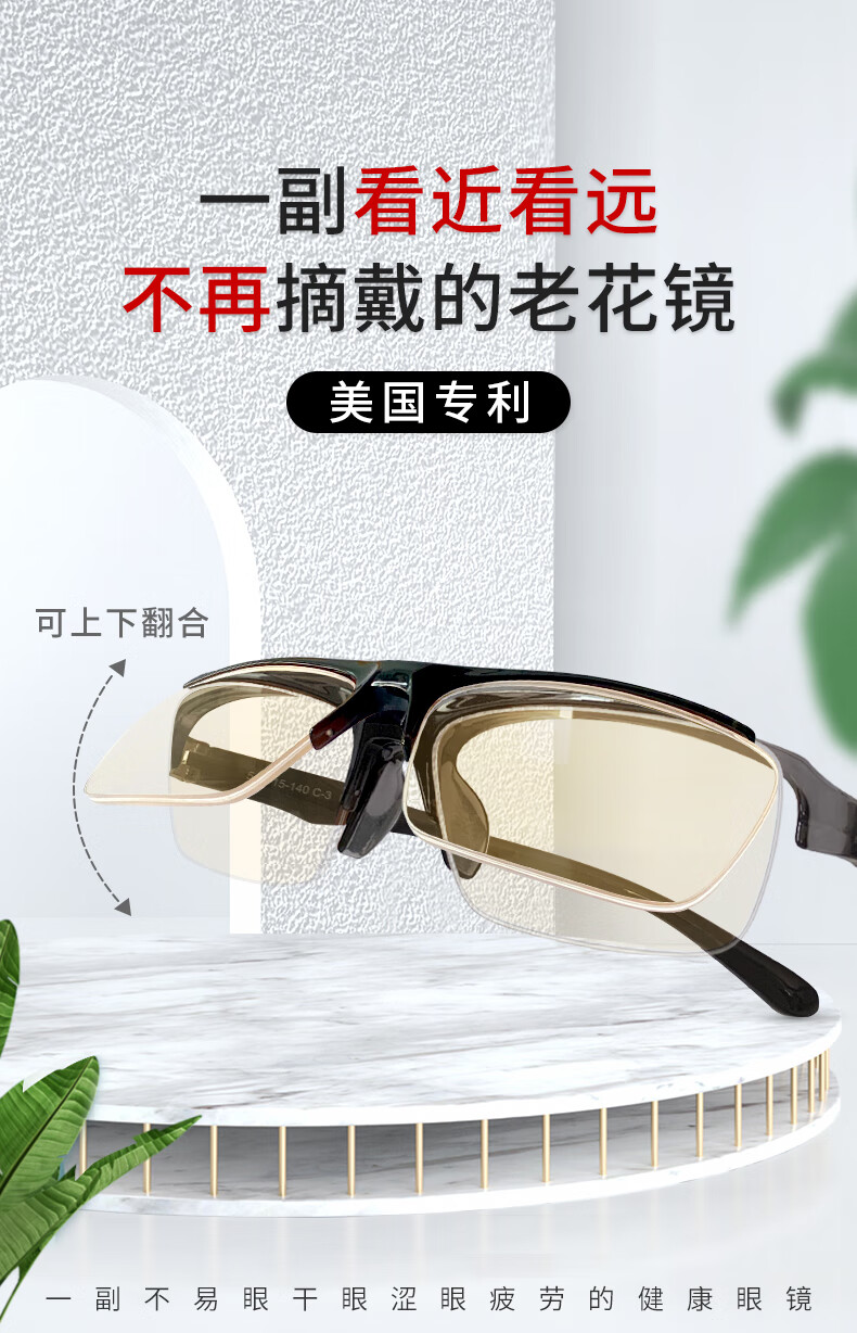 Quark防蓝光折叠双光老花镜高清远近两用男女老人疲劳老光眼镜3012+200