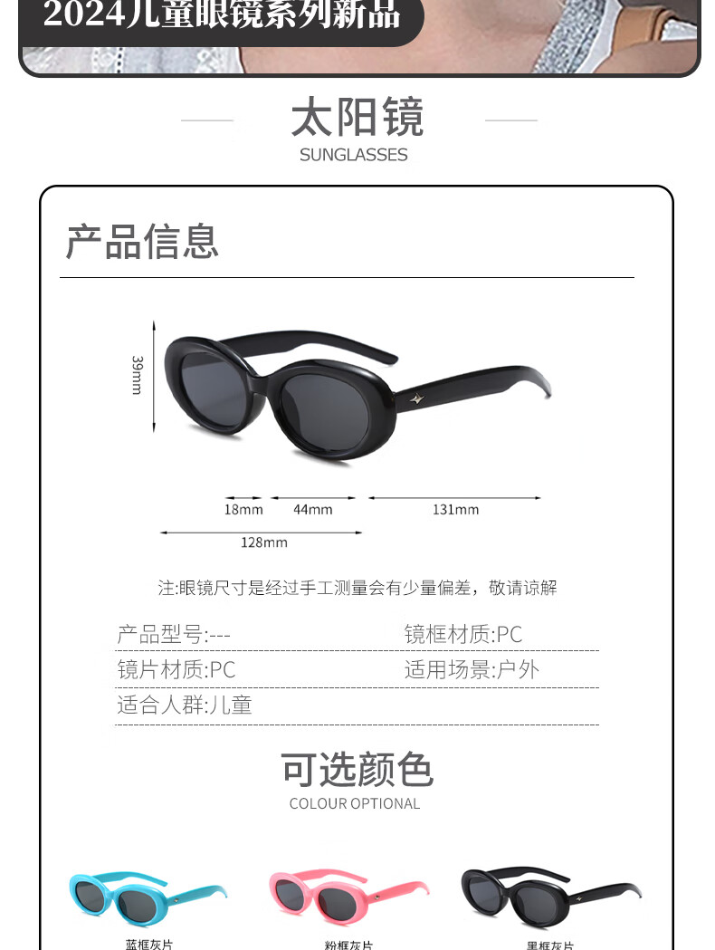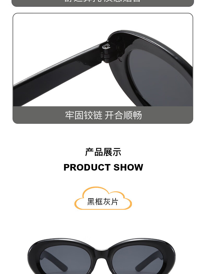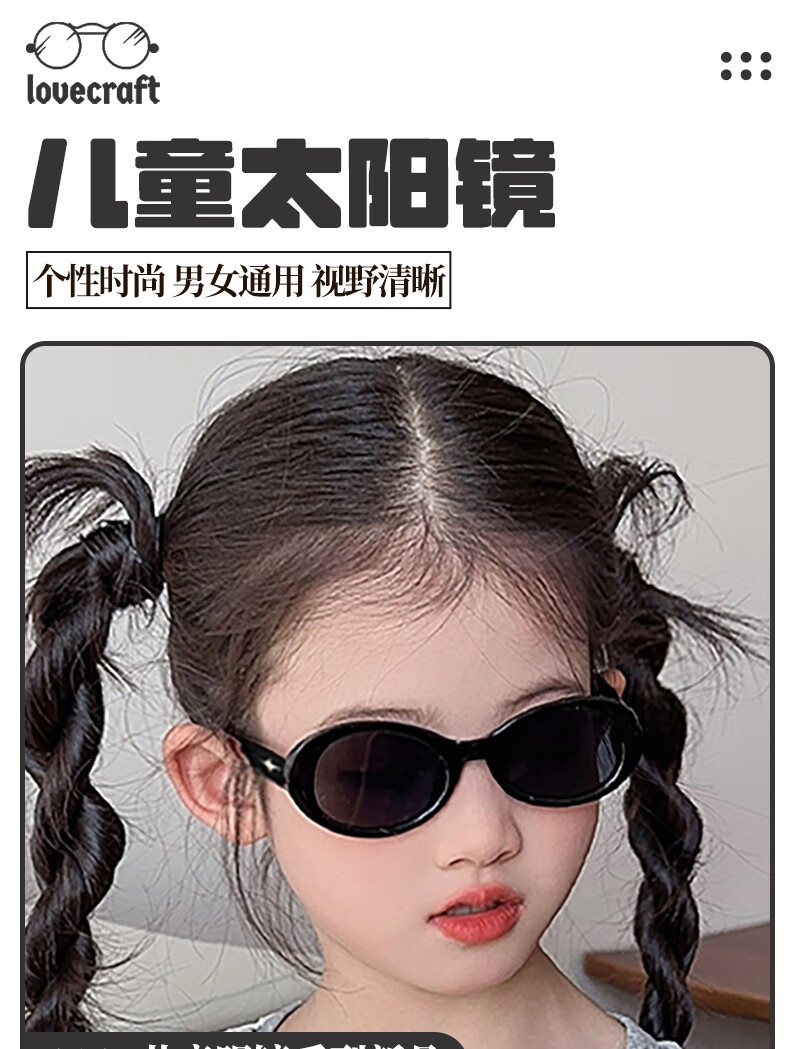 LOVECRAFT新款gm儿童墨镜黑色灰片 男女时尚户外街拍遮阳椭圆太阳镜