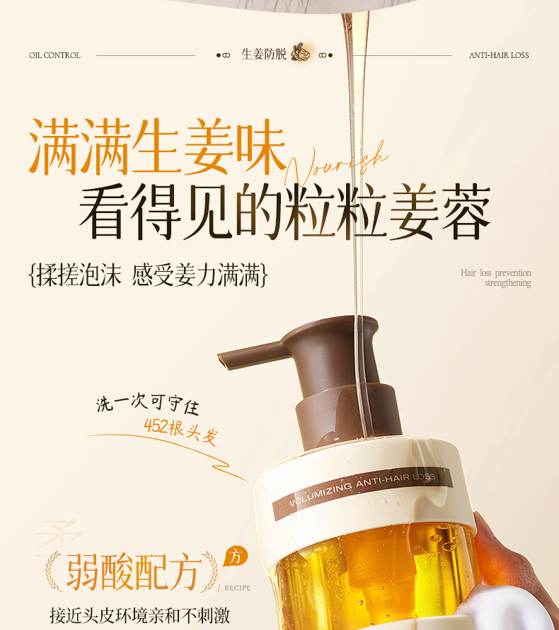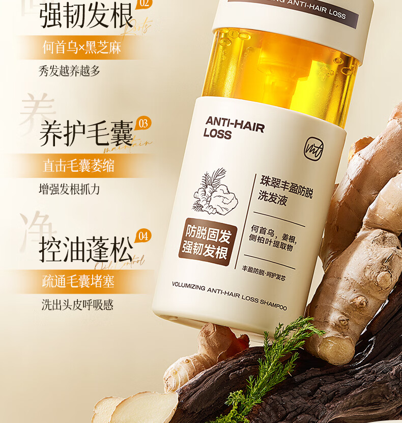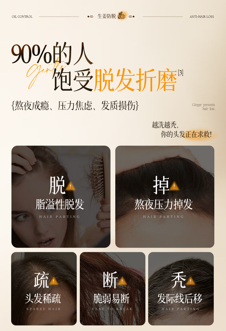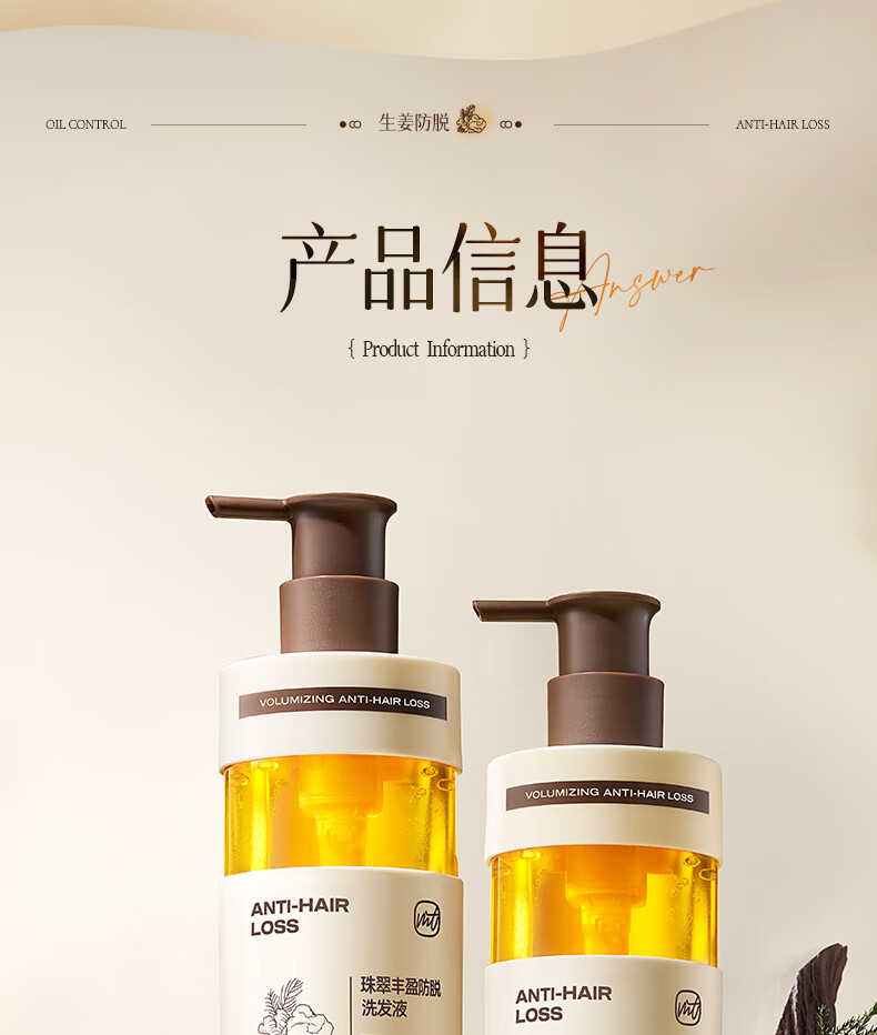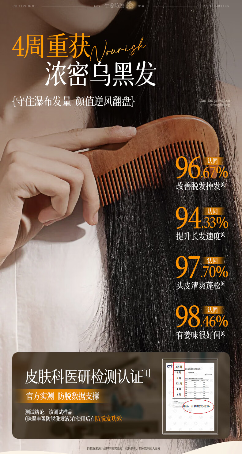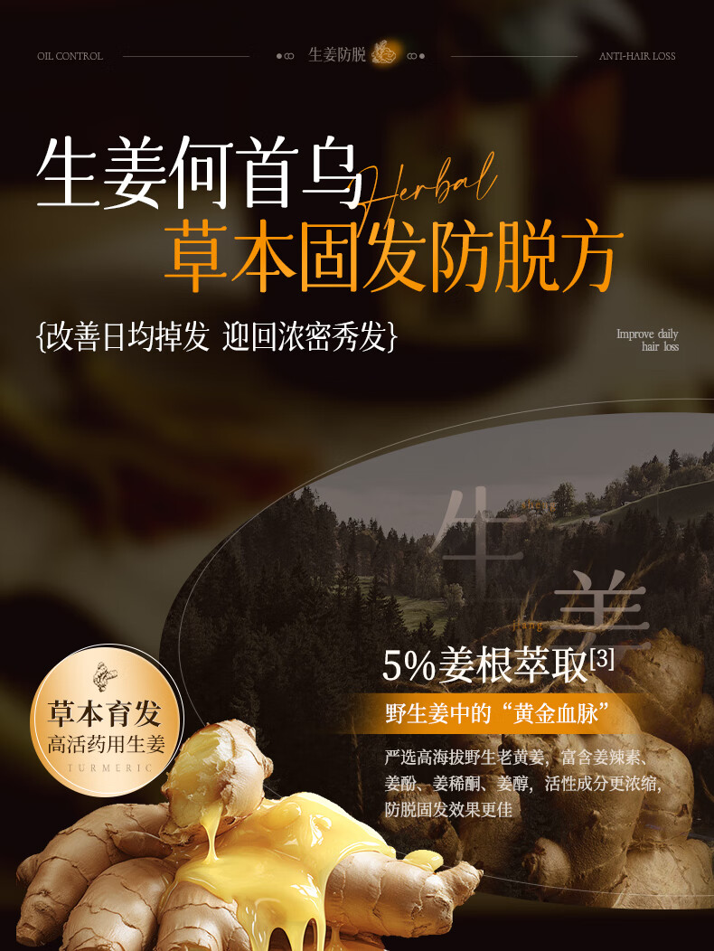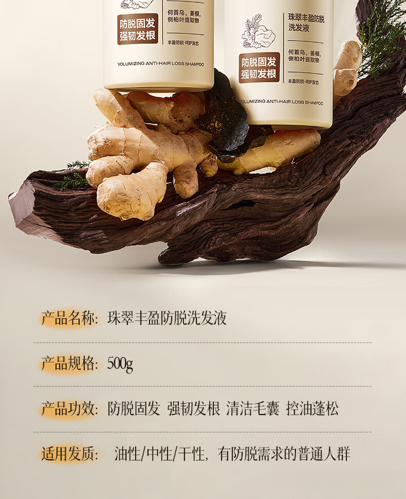 曼逖珠翠丰盈防脱育发洗发水 生姜固发侧柏叶控油洗头膏男女金榜500ml