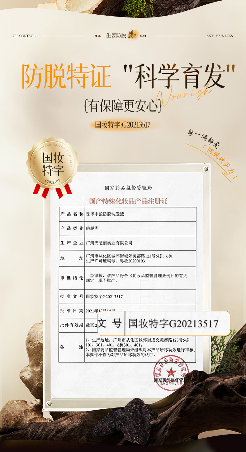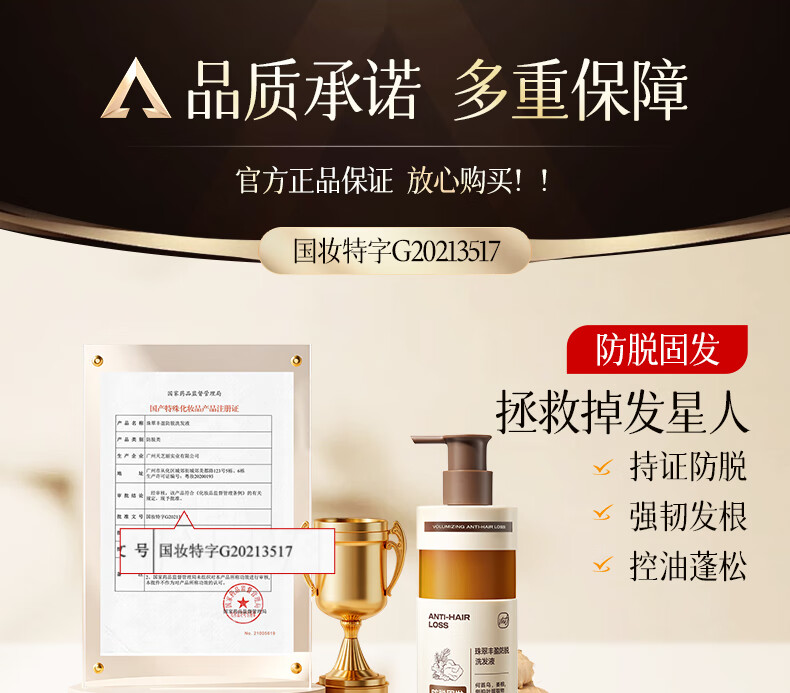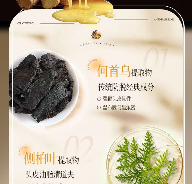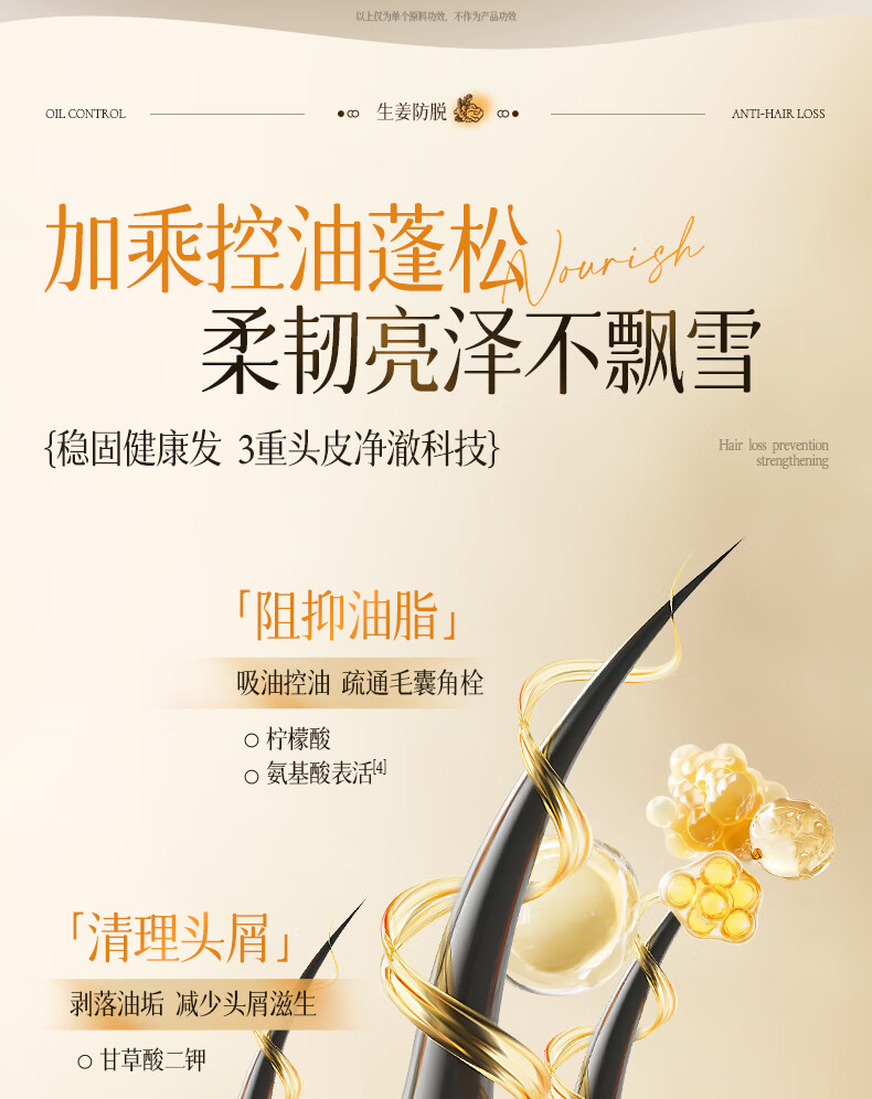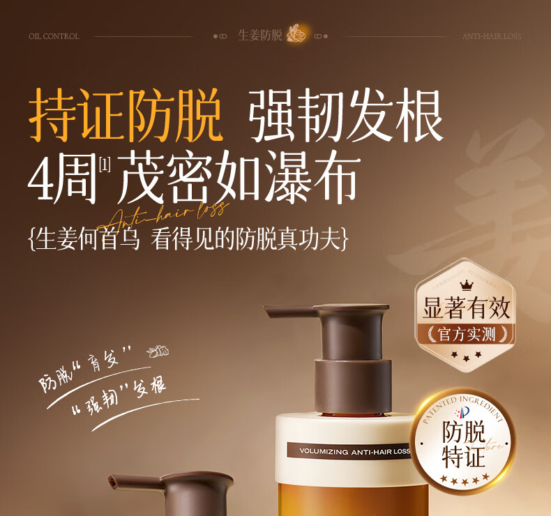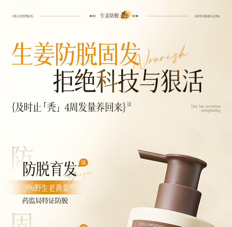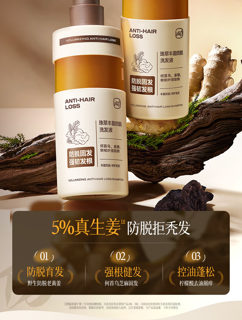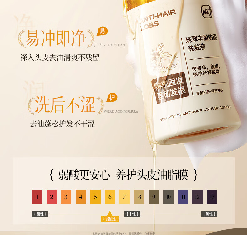 曼逖珠翠丰盈防脱育发洗发水 生姜固发侧柏叶控油洗头膏男女金榜500ml