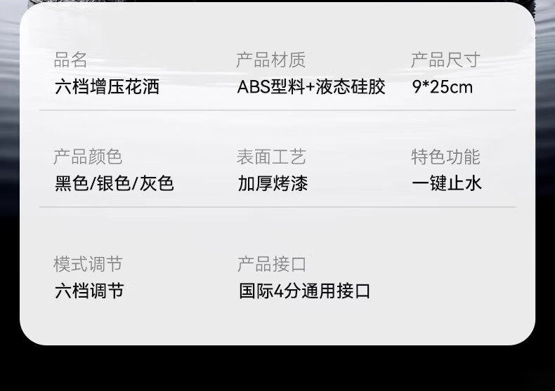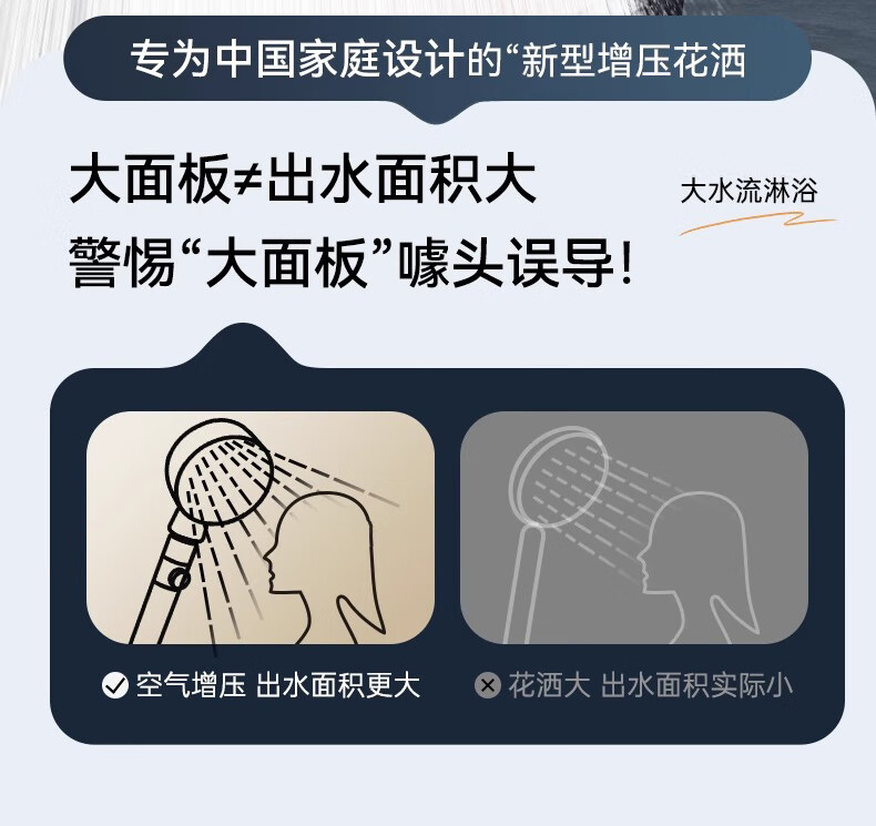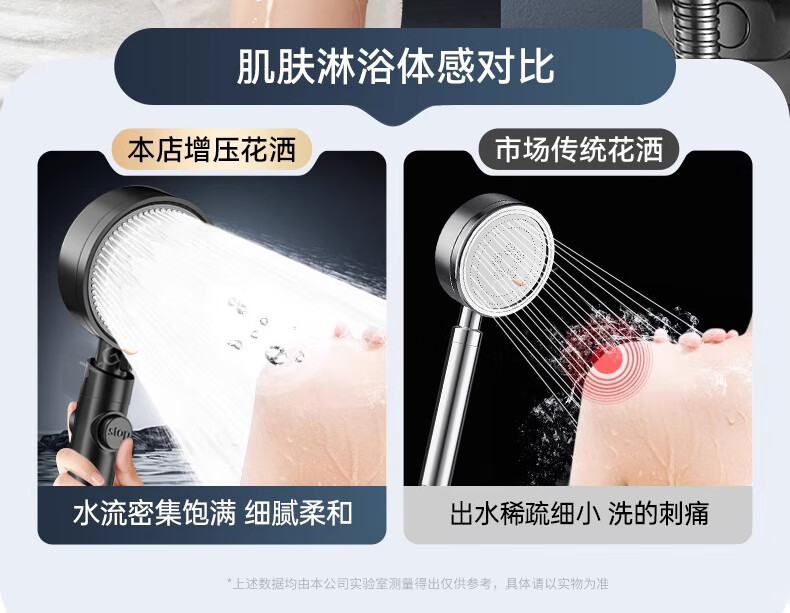 Rosecret【德国】增压淋浴花洒喷头家用手持超强高压卫生间洗澡沐浴莲蓬头 五档增压花洒【雅黑色】单花洒 硅胶出水孔密集大出水量畅享淋浴
