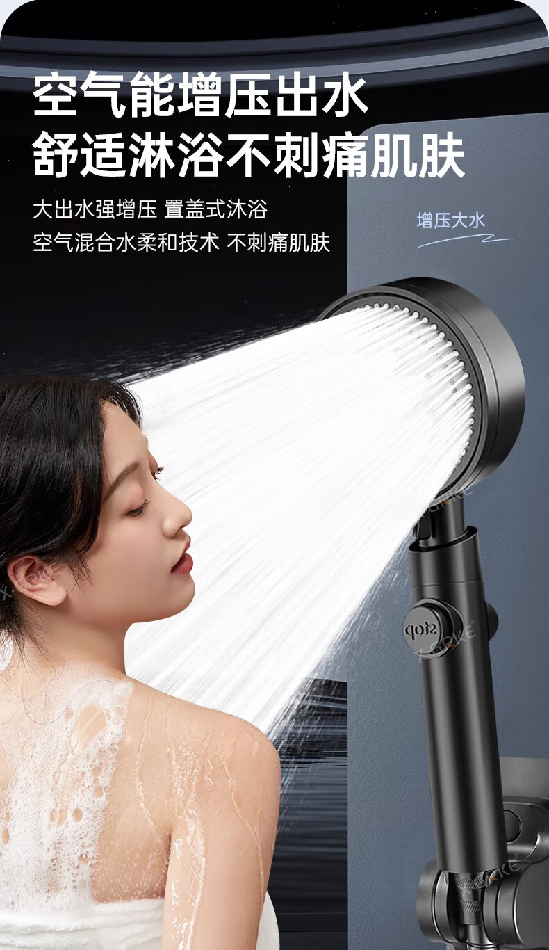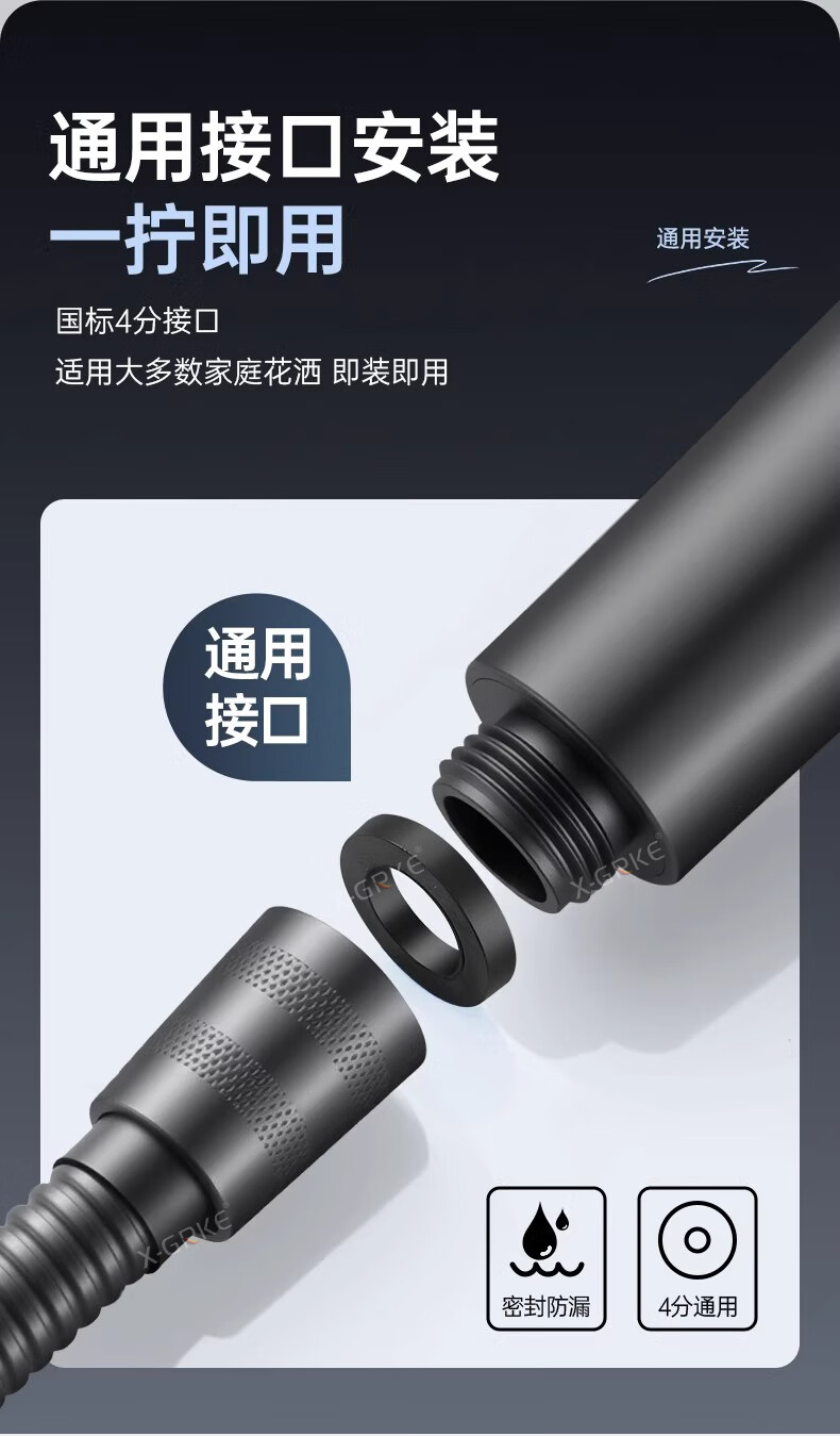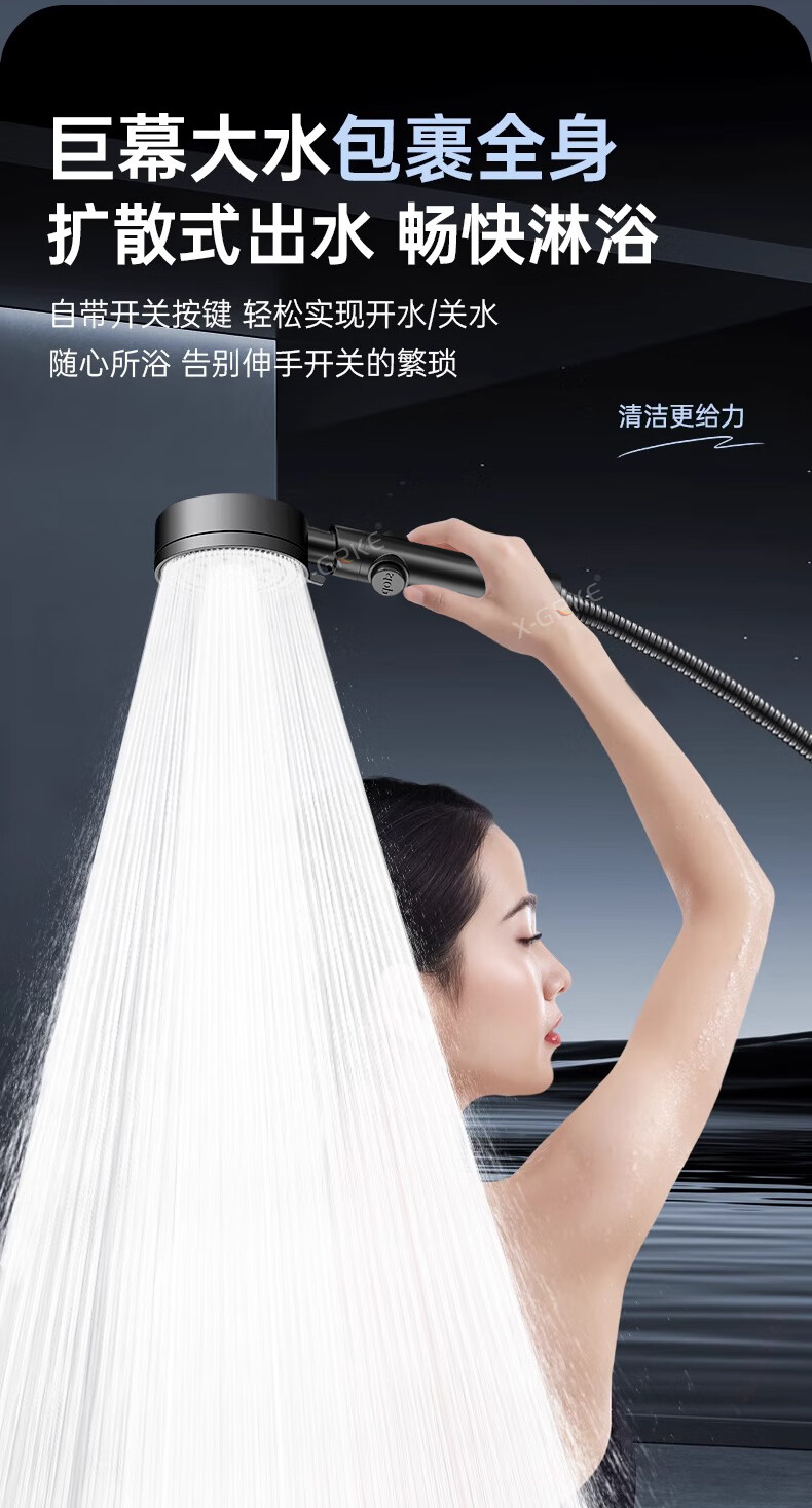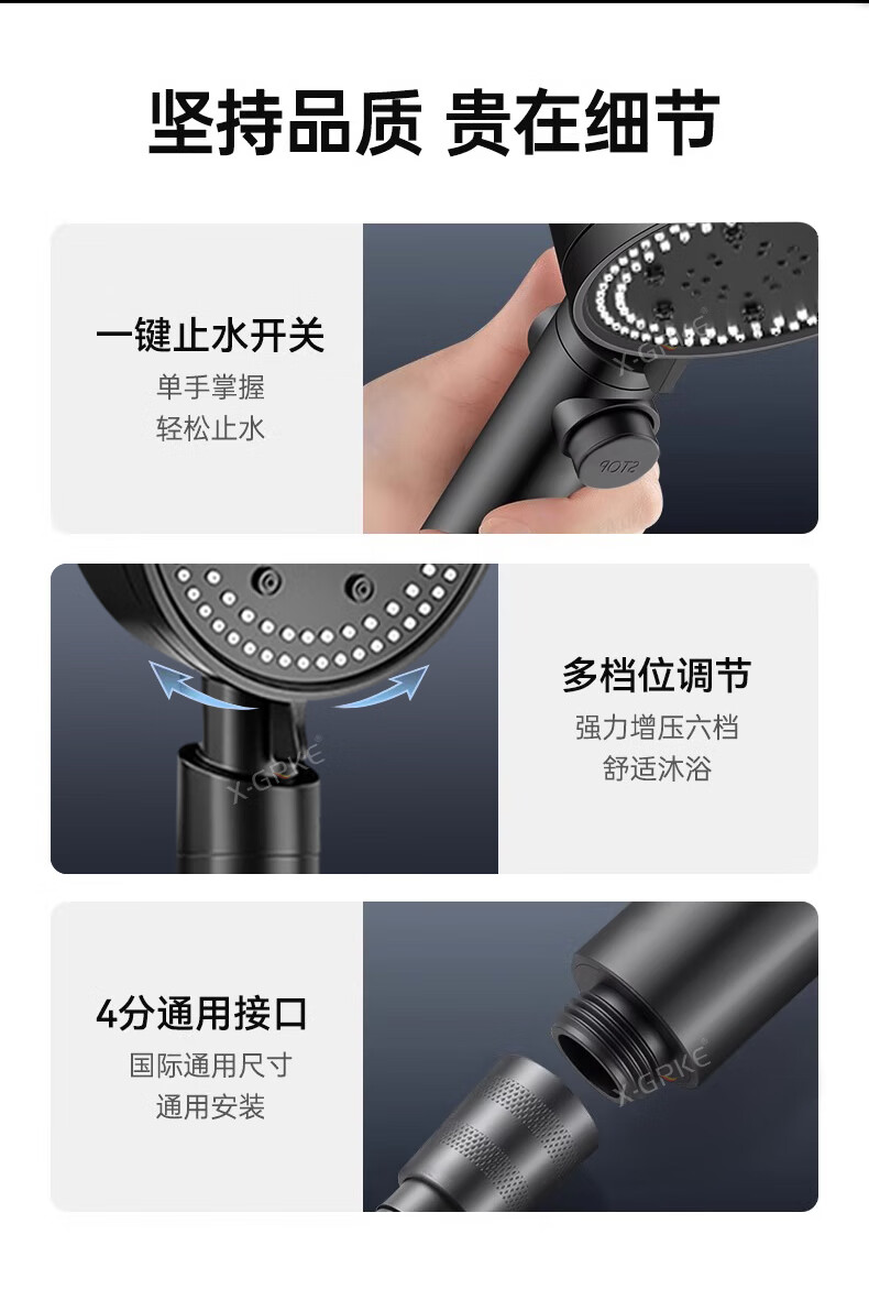 X-GRKE【德国】增压淋浴花洒喷头全套装强劲家用多功能洗澡手持莲蓬头 单花洒+1.5m软管+支架【三件套】 强劲六档增压丨密集大出水