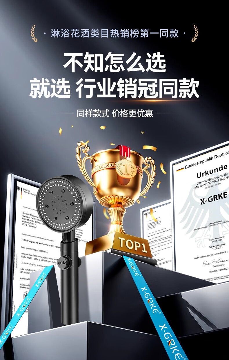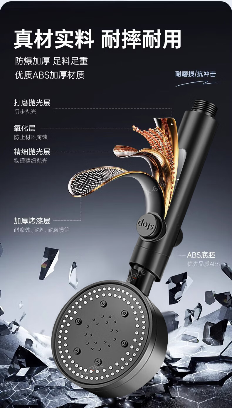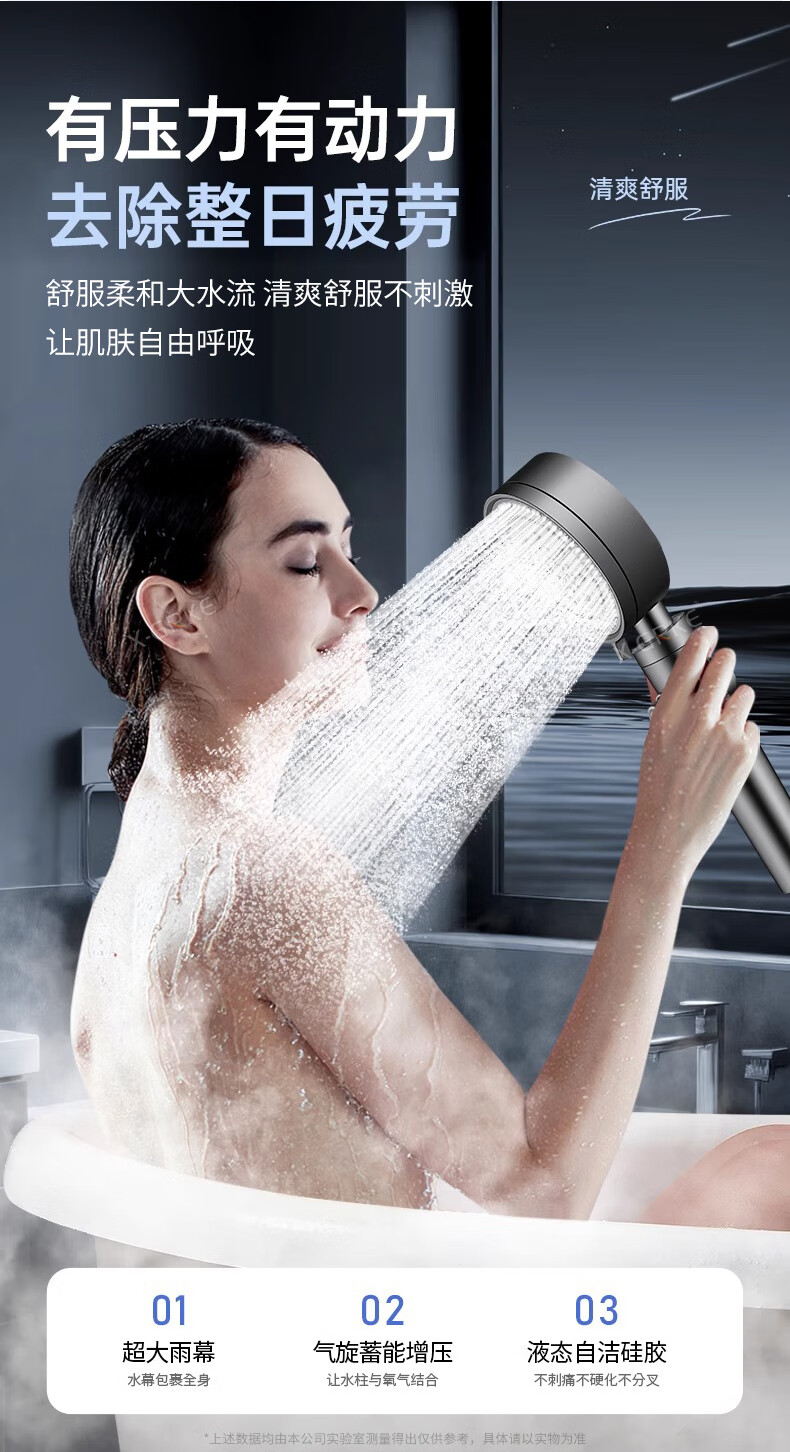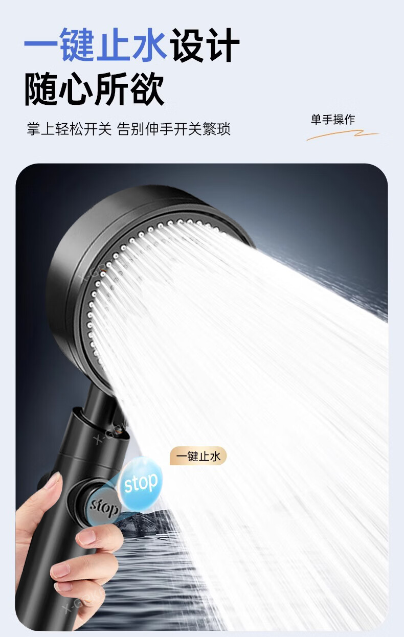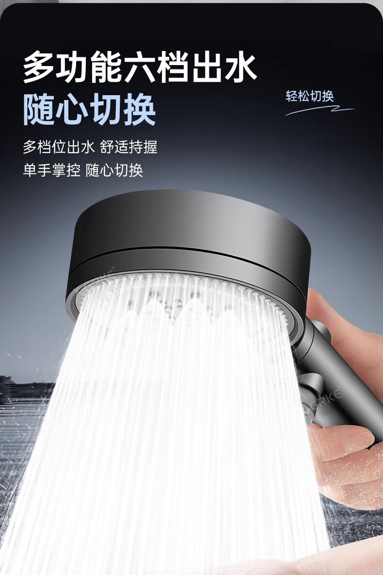 X-GRKE【德国】增压淋浴花洒喷头全套装强劲家用多功能洗澡手持莲蓬头 单花洒+1.5m软管+支架【三件套】 强劲六档增压丨密集大出水