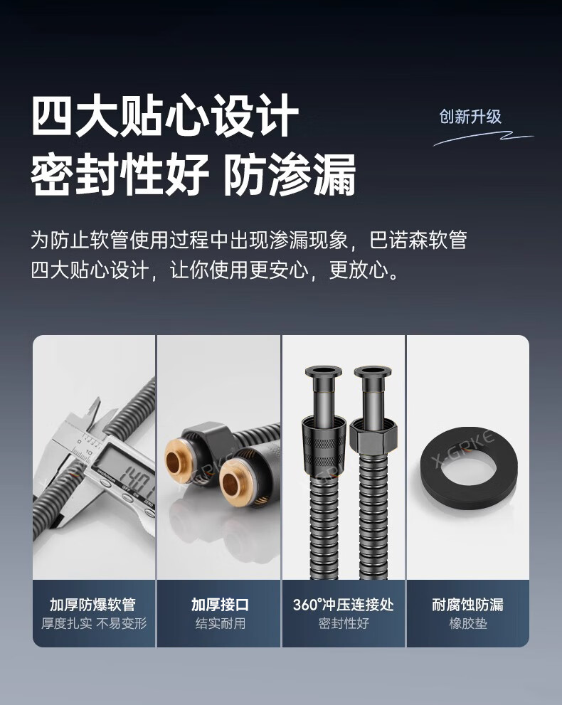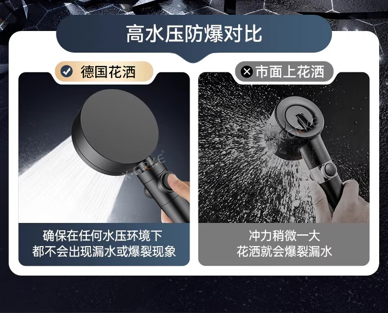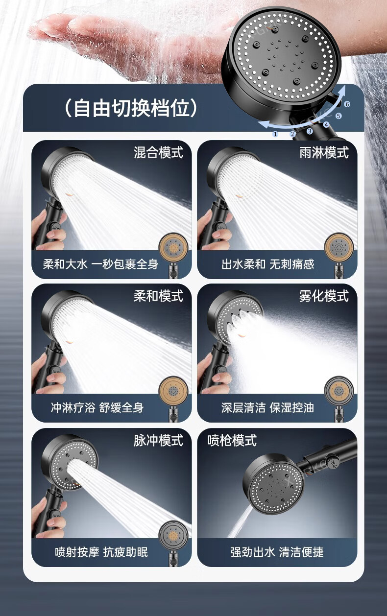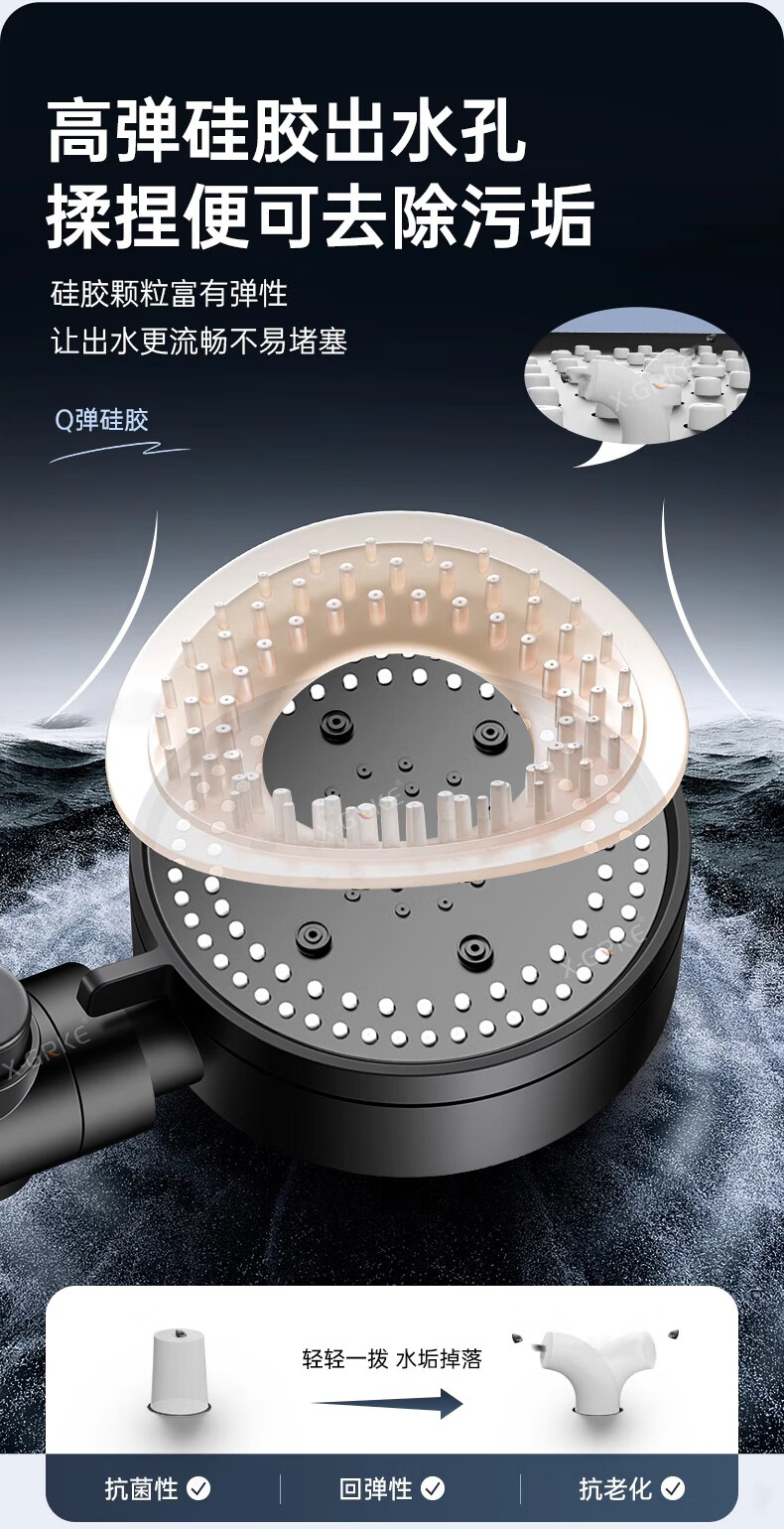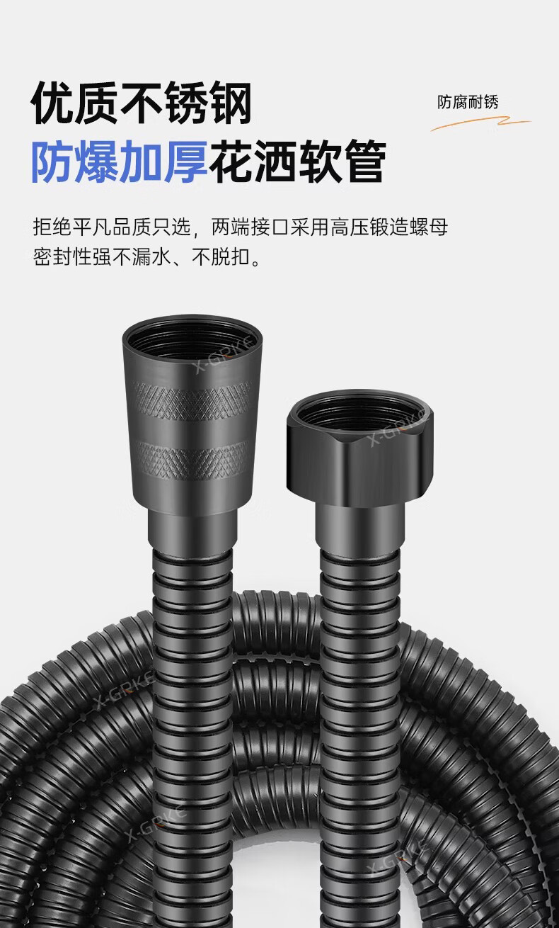 X-GRKE【德国】增压淋浴花洒喷头全套装强劲家用多功能洗澡手持莲蓬头 单花洒+1.5m软管+支架【三件套】 强劲六档增压丨密集大出水
