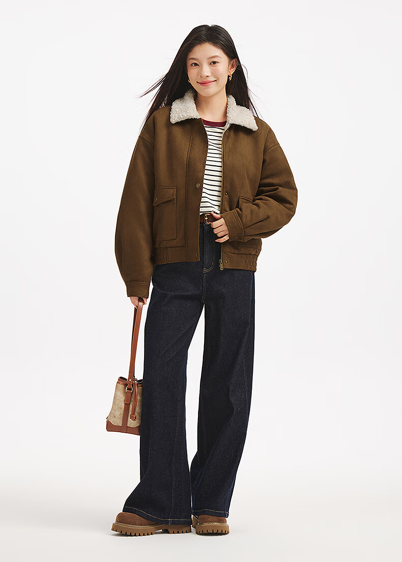 热风(Hotwind)2025年冬季新款女士仿麂皮绒外套 02棕色 S