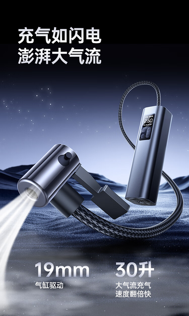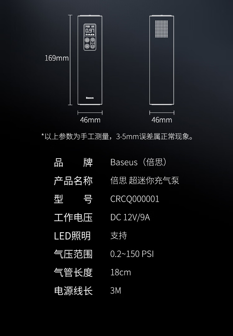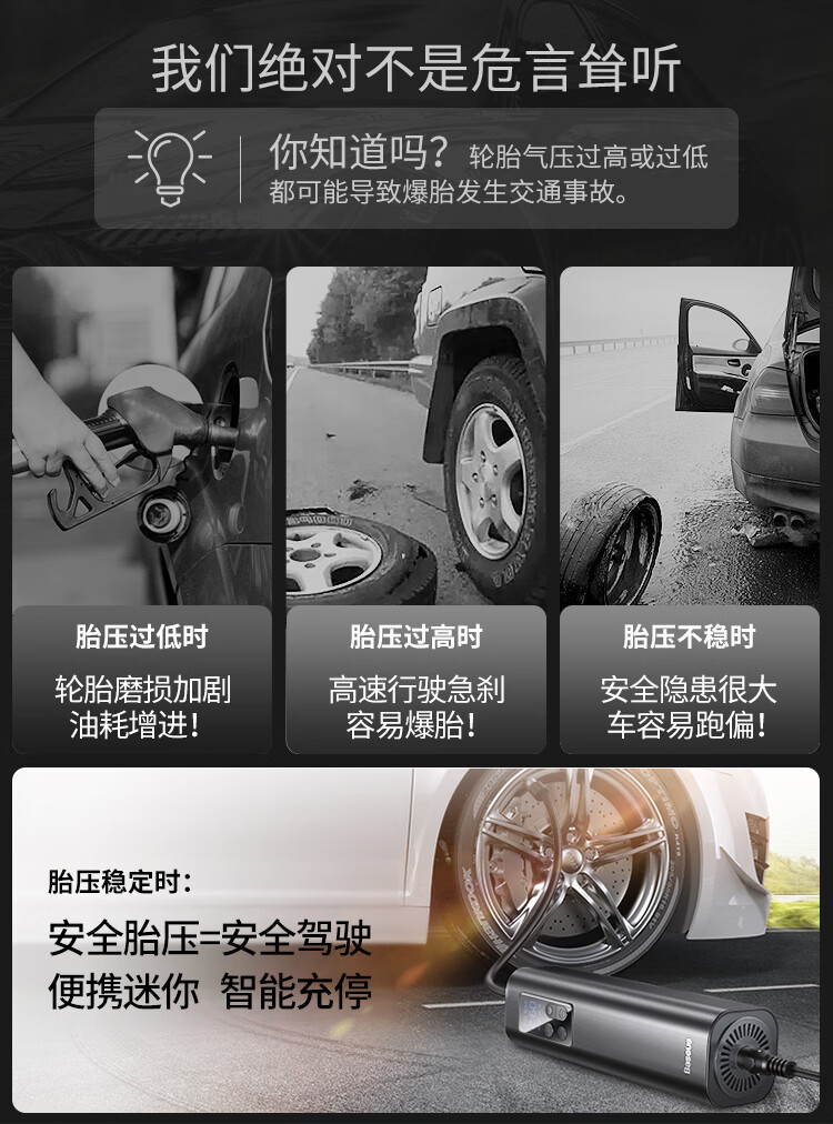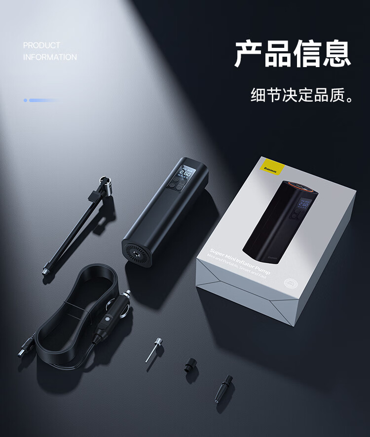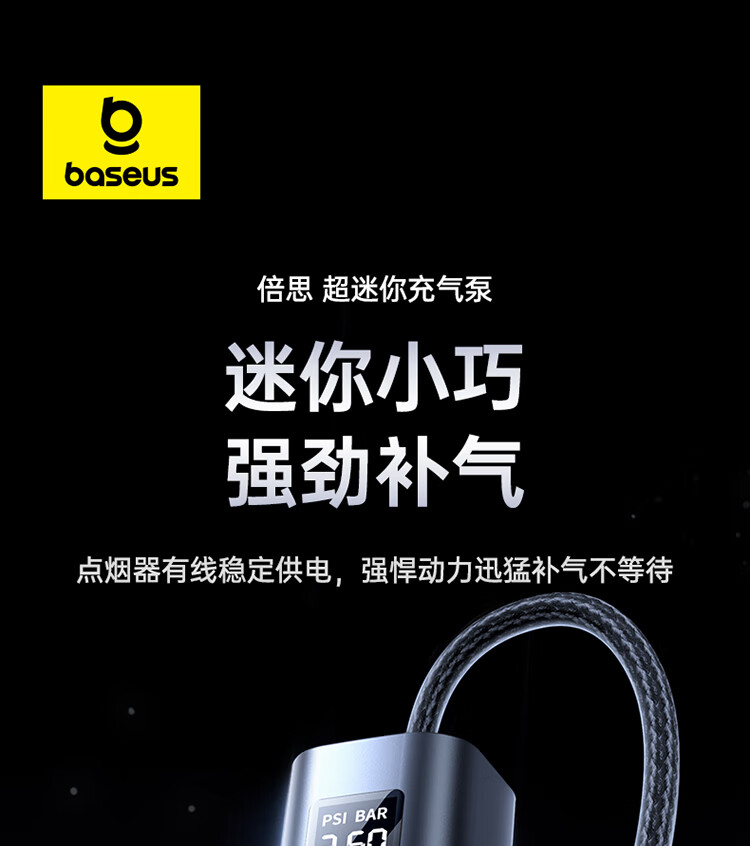 倍思车载充气泵 汽车轮胎打气泵电动自行车打气筒有线款适用小米YU7