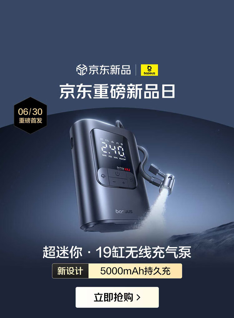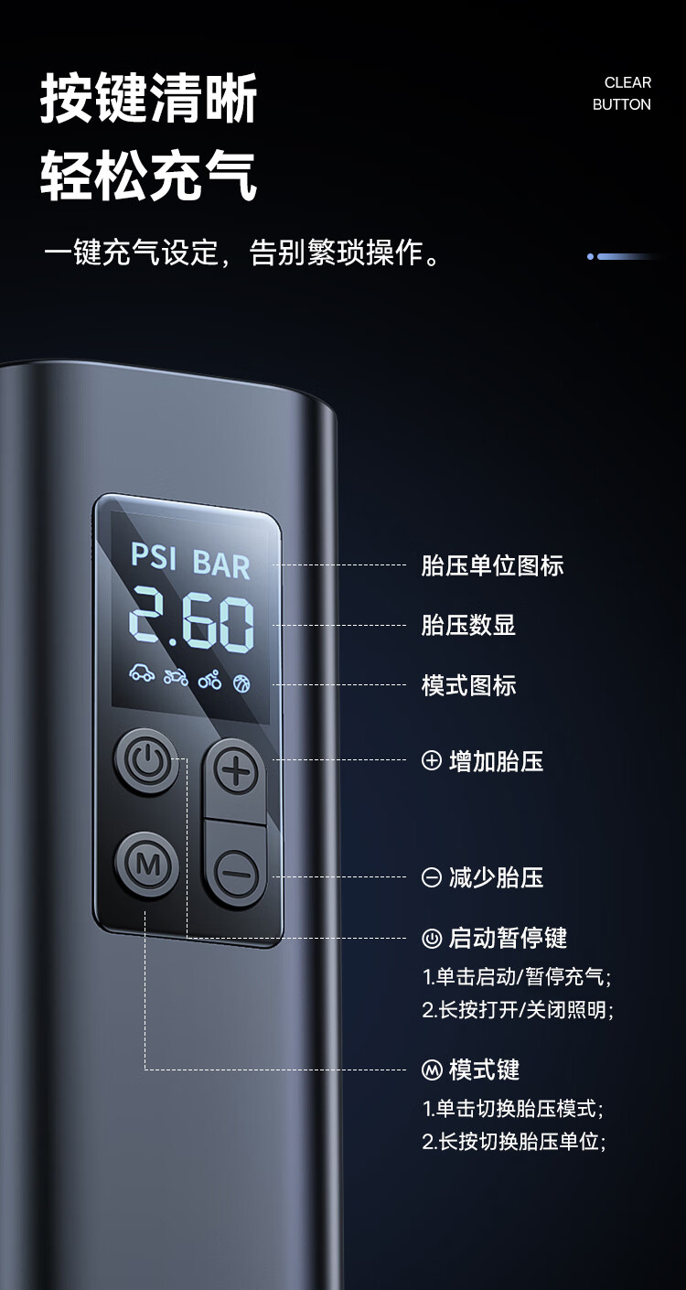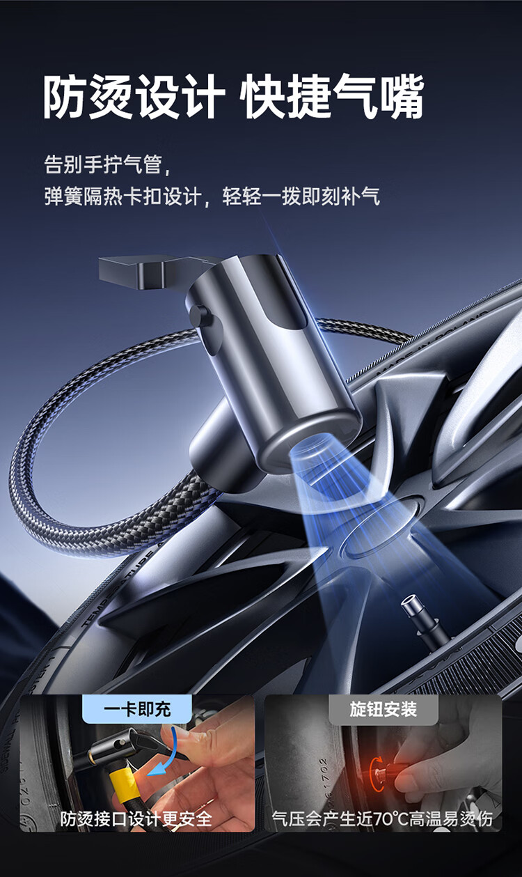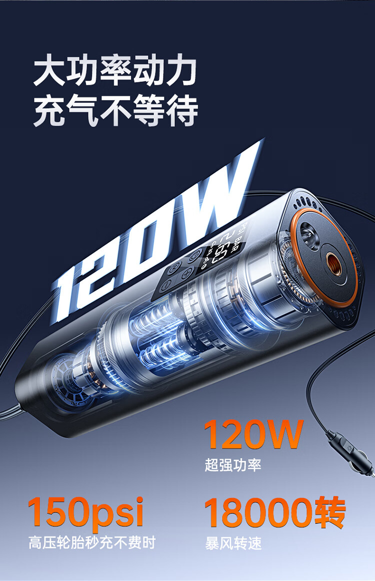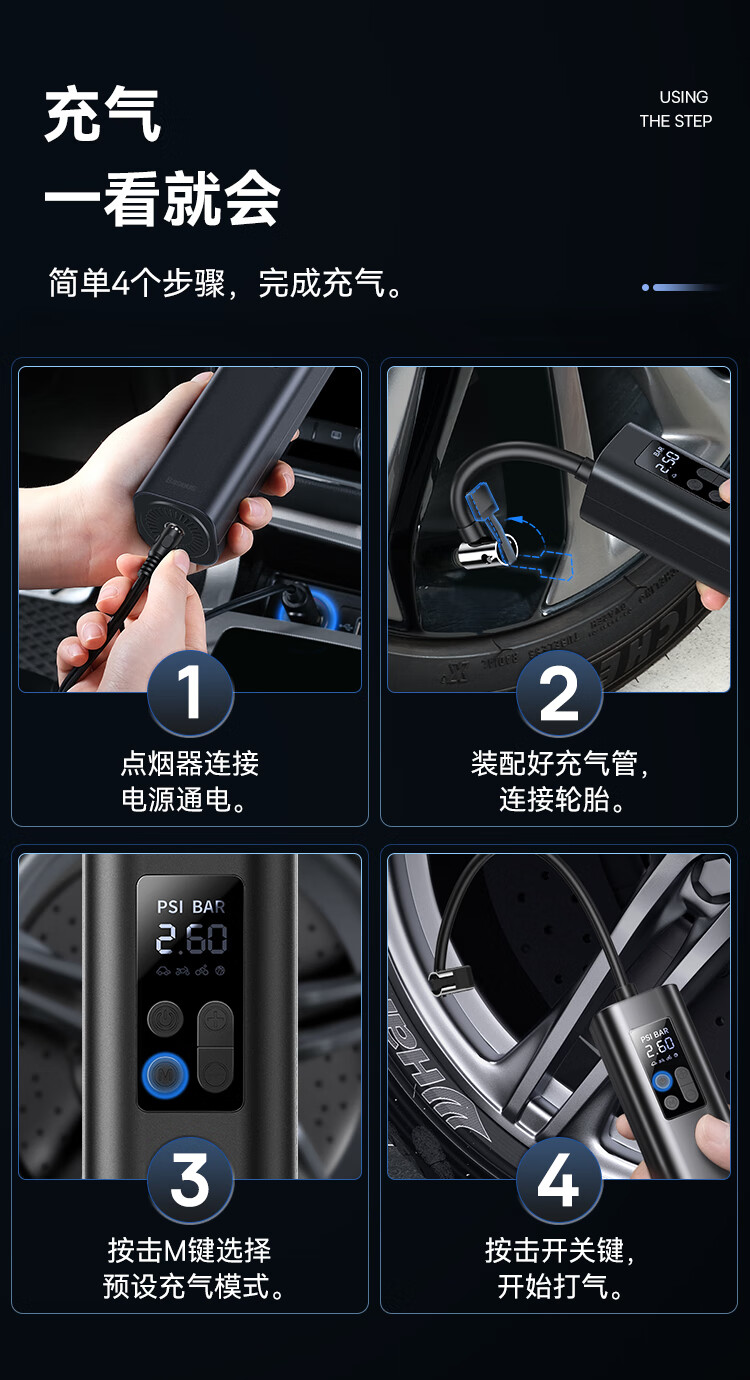 倍思车载充气泵 汽车轮胎打气泵电动自行车打气筒有线款适用小米YU7