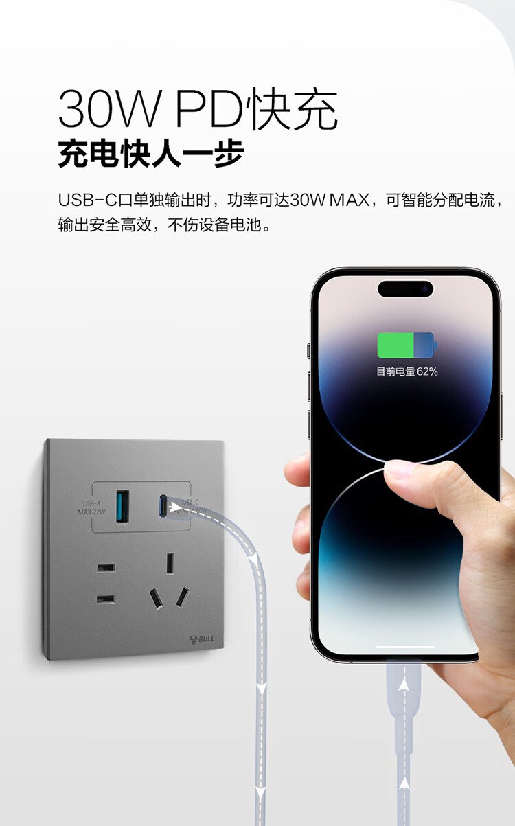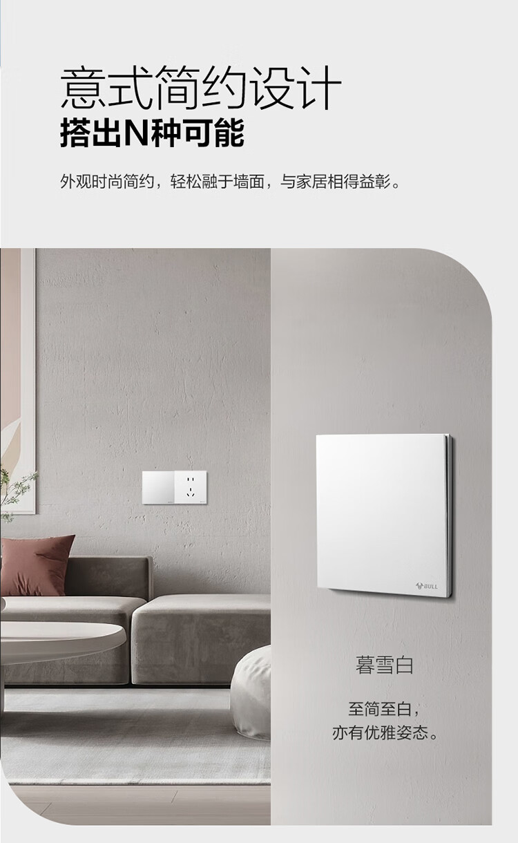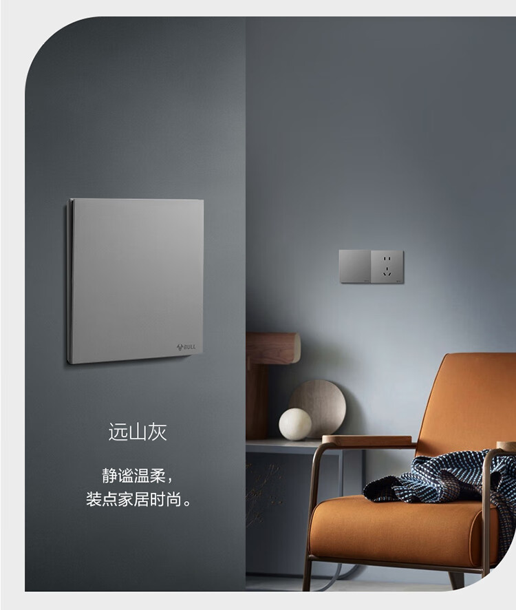 公牛(BULL)开关插座G57蝶翼超薄系列一位电脑六类插座G57T102远山灰暗装