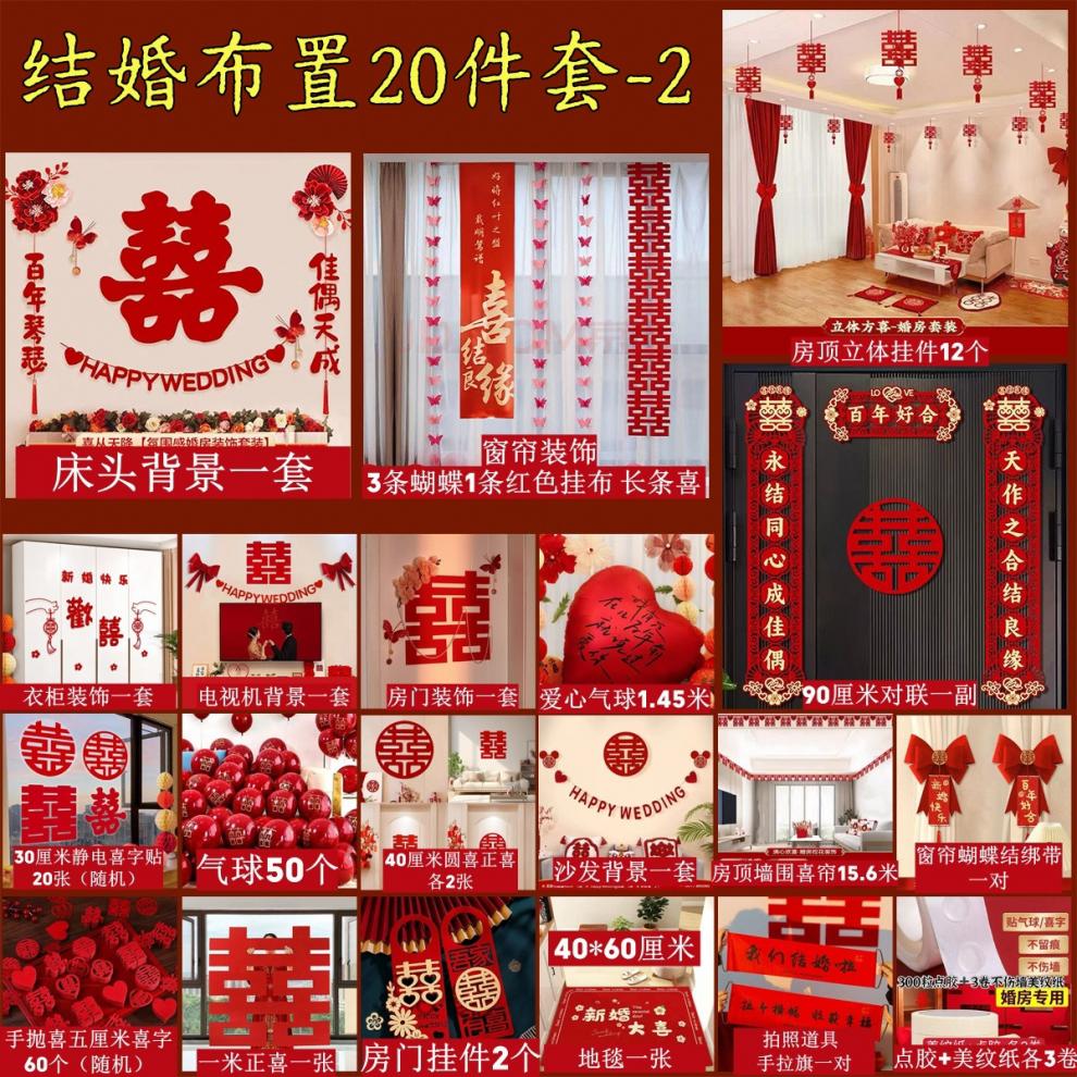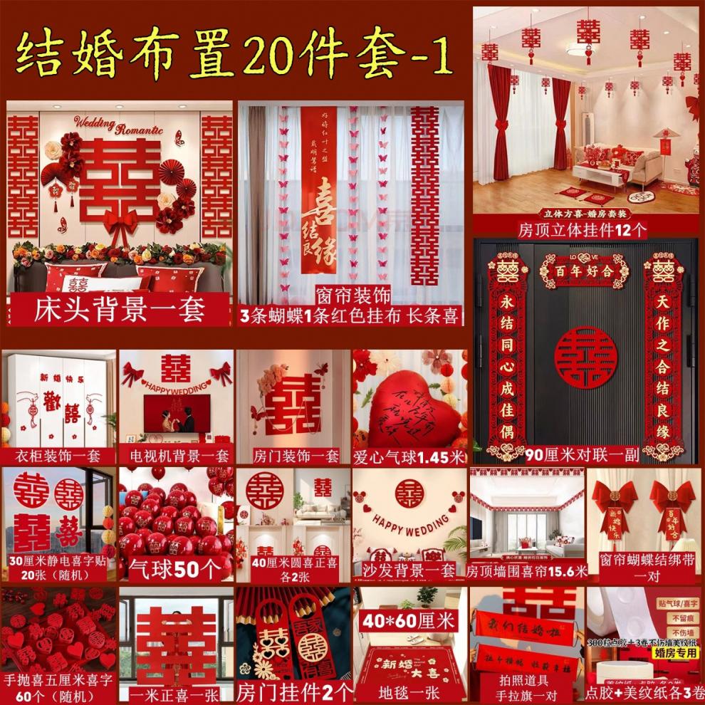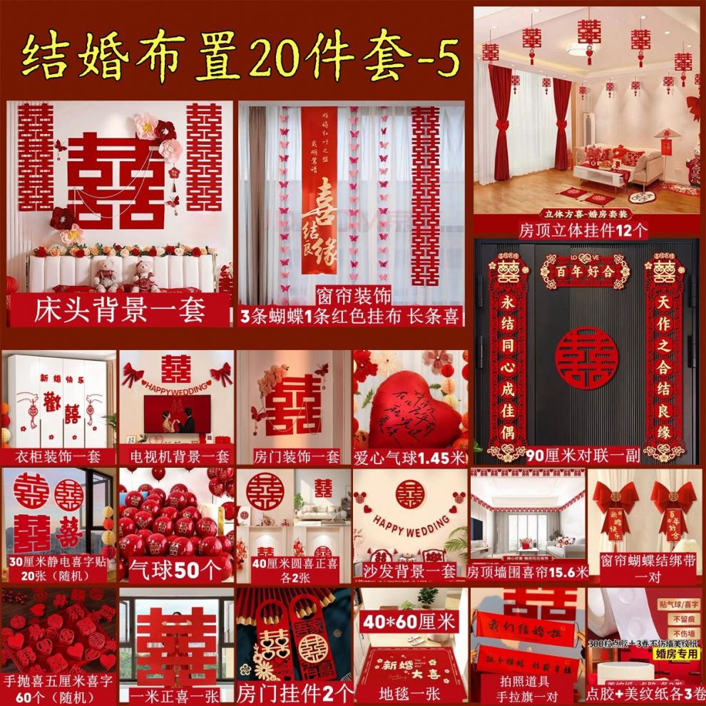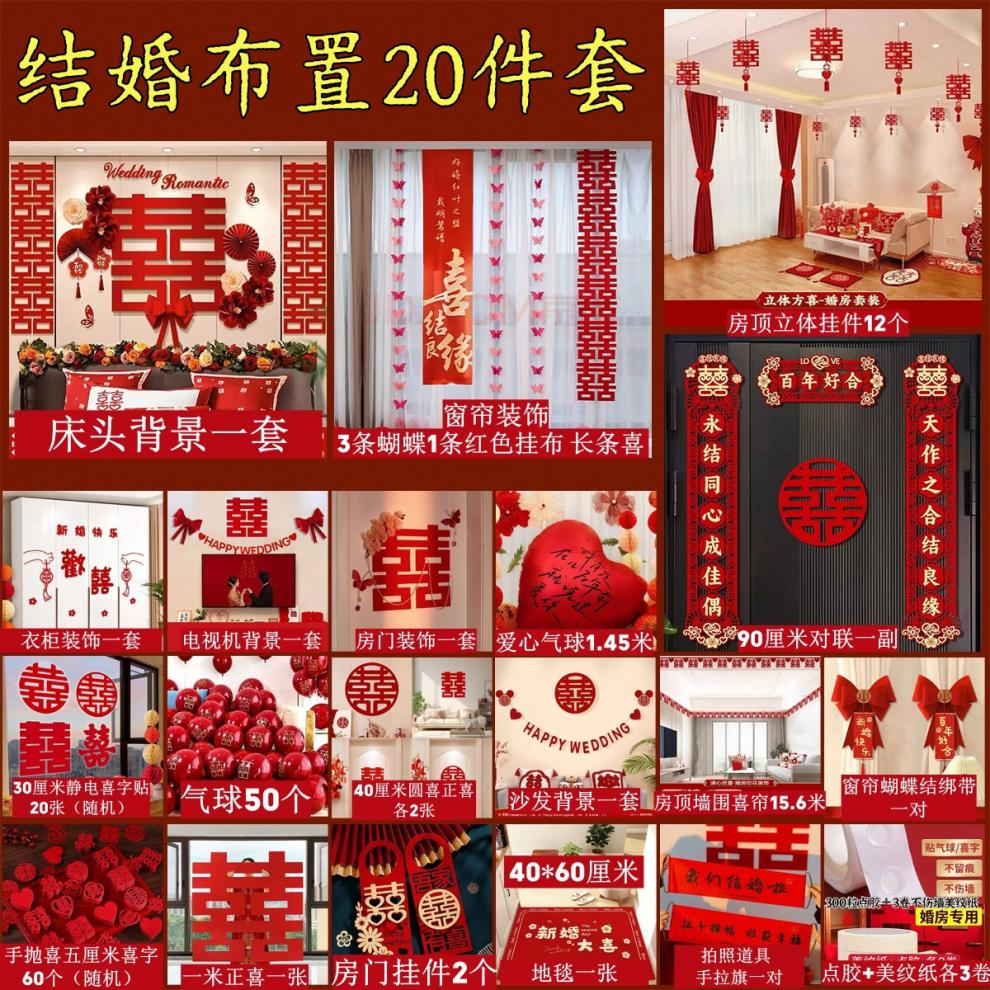 时鸟婚房布置套装结婚装饰男方婚礼新房女方卧室客厅用品大全装饰全套 新款(20件套)婚房布置全套 结婚装饰(新婚快乐)套餐-5