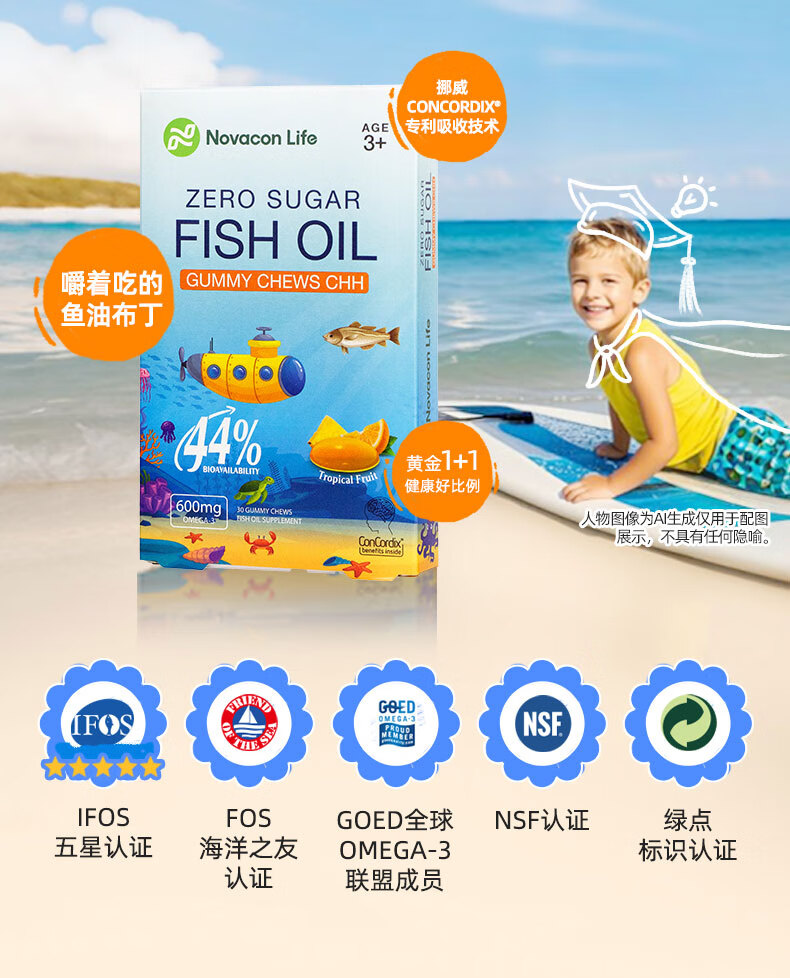 NOVACON LIFE诺康莱儿童DHA布丁鱼油三倍DHA补脑学生高纯度Omega3无腥味