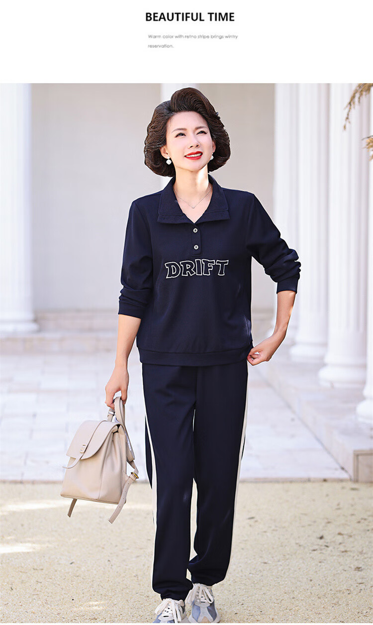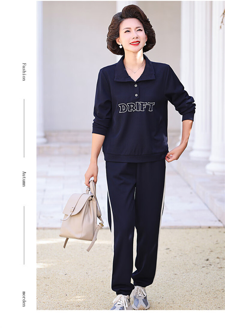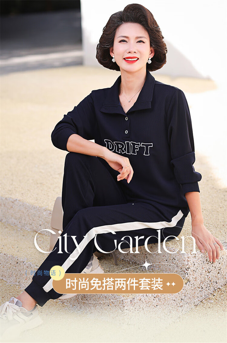 简狐妈妈秋季套装高贵气质春秋季保暖卫衣+休闲裤子时尚洋气两件套