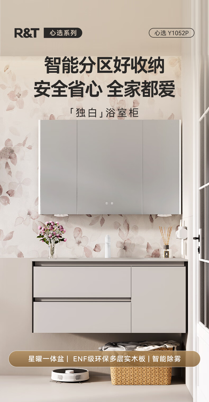 瑞尔特(R&T)全智能马桶S5智能浴室柜Y1058花洒K10豪华尊享全智能套装 全智能套餐【Y1058浴室柜+S5马桶+K10花洒】 305/300mm