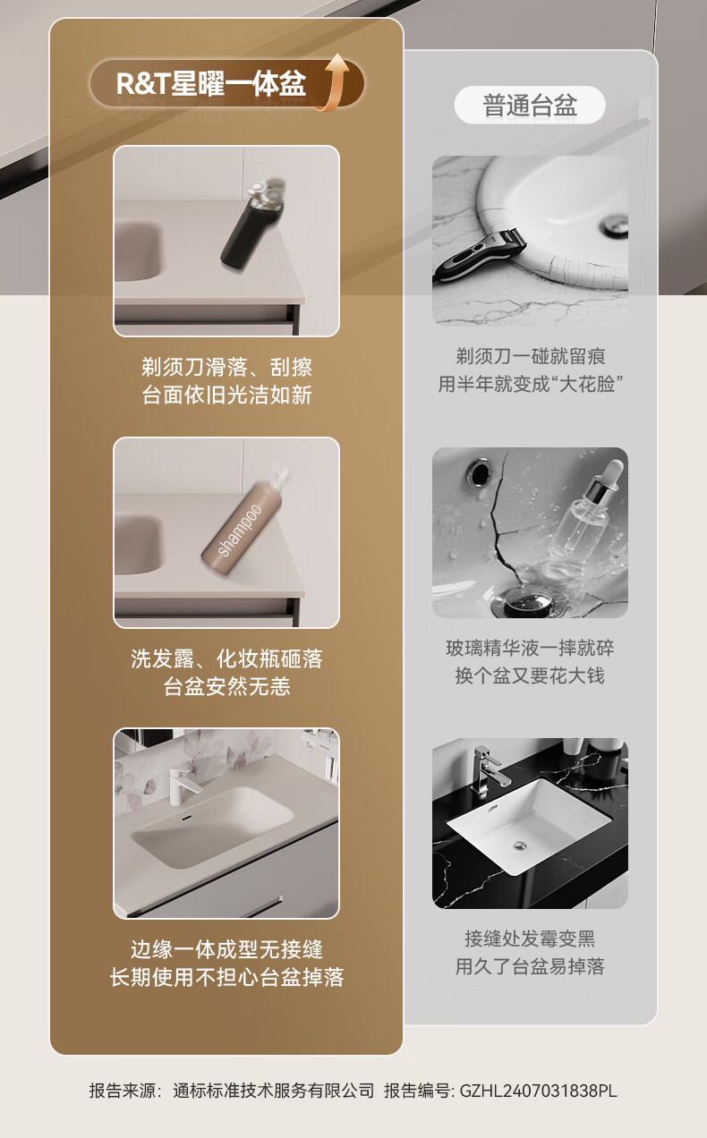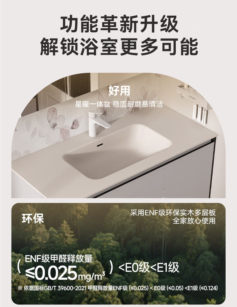 瑞尔特(R&T)2025新款浴室柜组合星曜一体盆ENF级环保卫生间洗脸洗漱台盆柜 ENF级环保多层实木-Y1052p 80cm