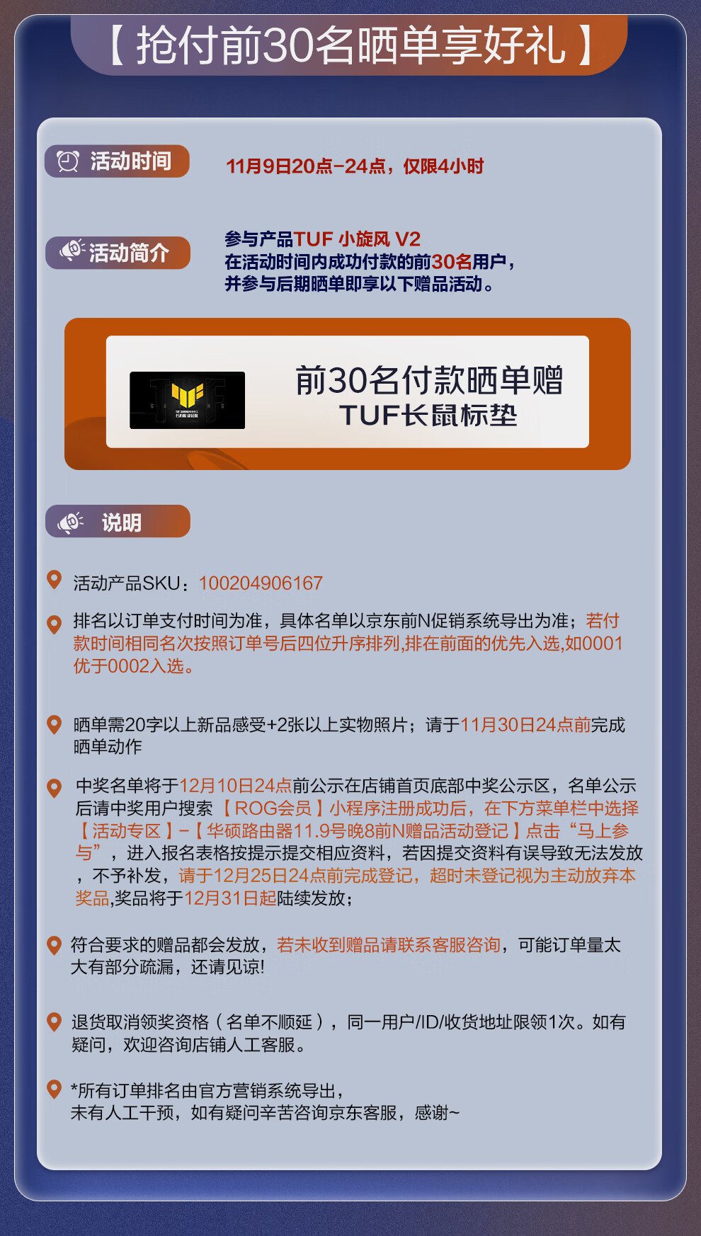 华硕(ASUS)【国家补贴】TUF小旋风V2 WiFi7电竞路由器 家用无线千兆穿墙王路由 全屋WiFi7套装Aimesh随心组