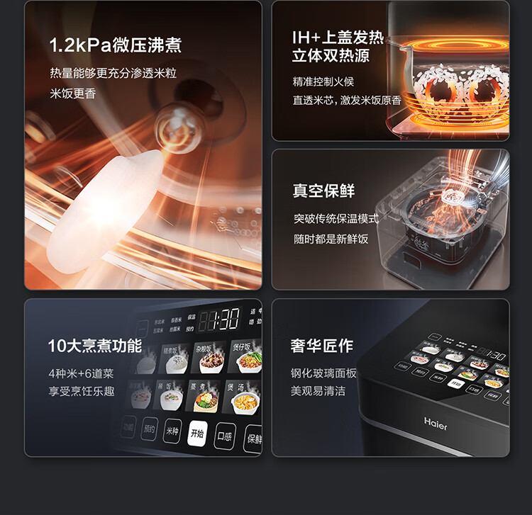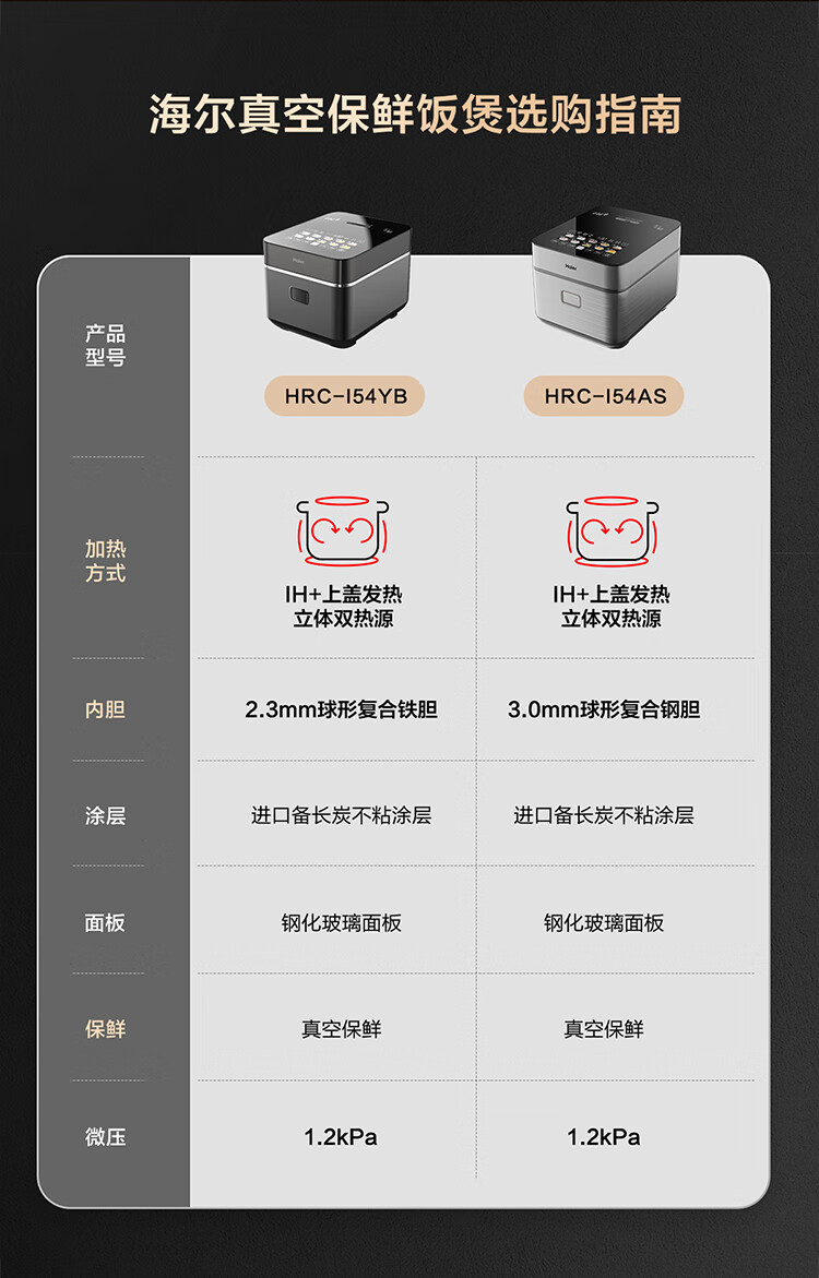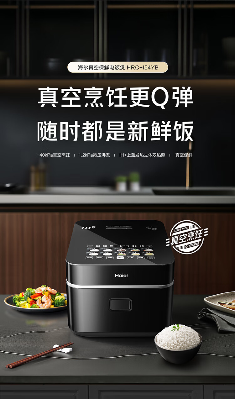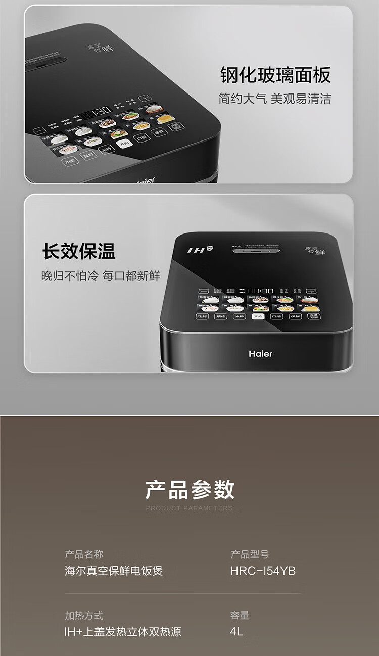 海尔(Haier)【国家补贴】真空电饭煲球釜微压电饭锅家用4L大容量4-5人IH立体双热源备长炭不粘涂层HRC-I54YB