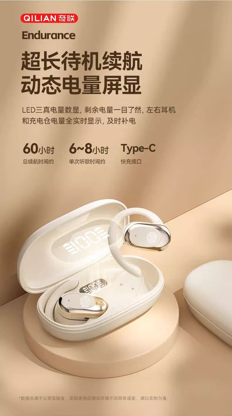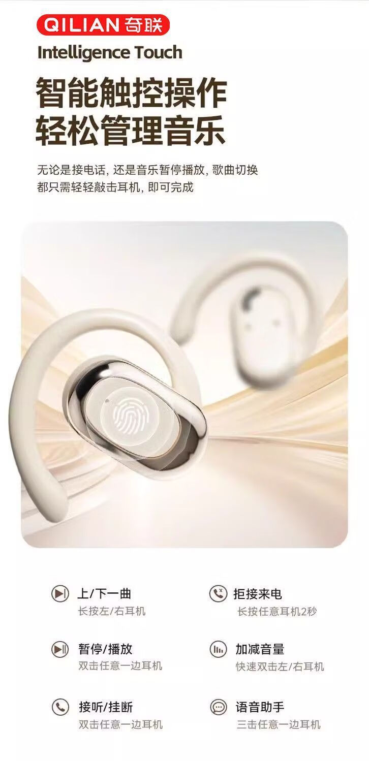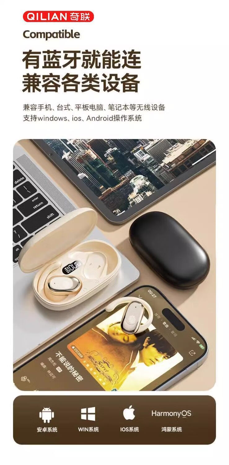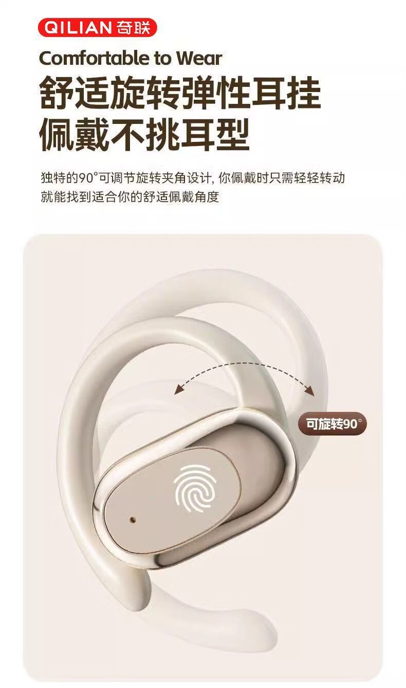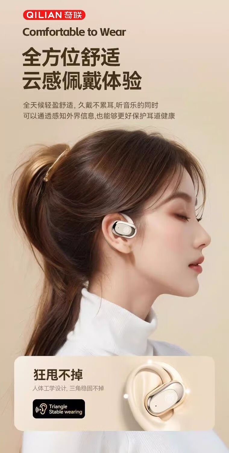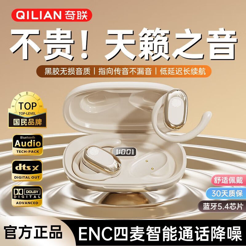 奇联不入耳蓝牙耳机挂耳式2025新款无线听歌音乐高音质游戏低延迟久戴不痛超长续航开放式ENC智能降噪 白色