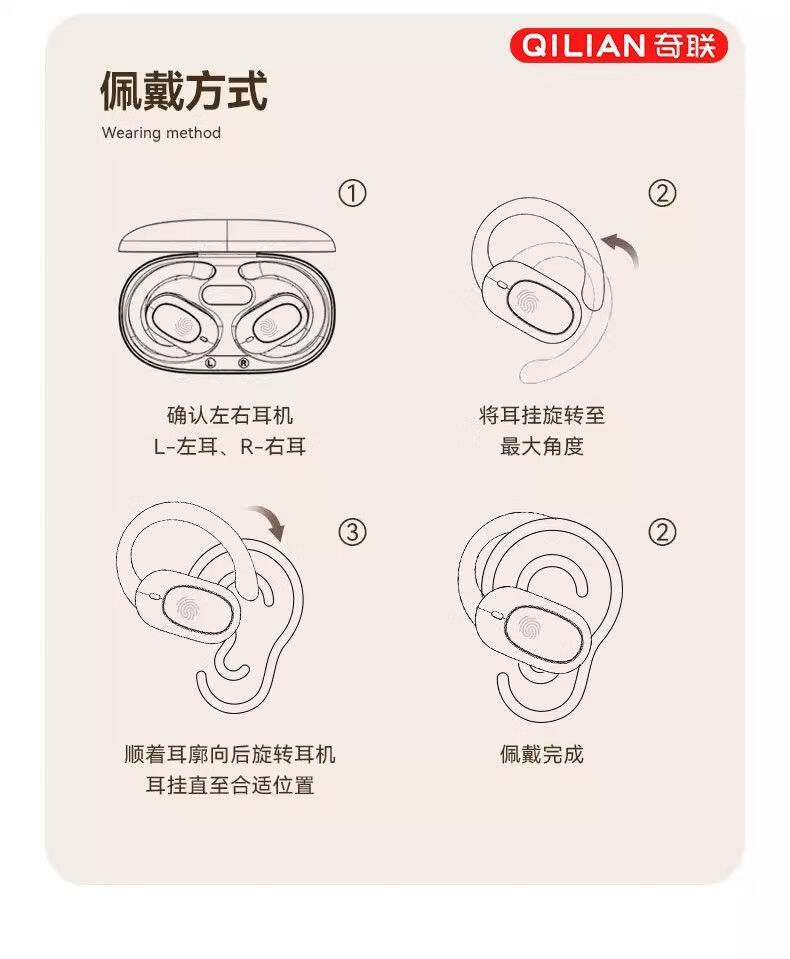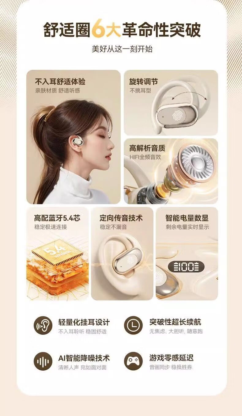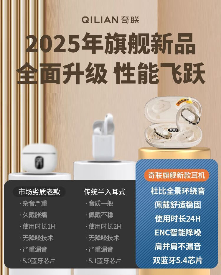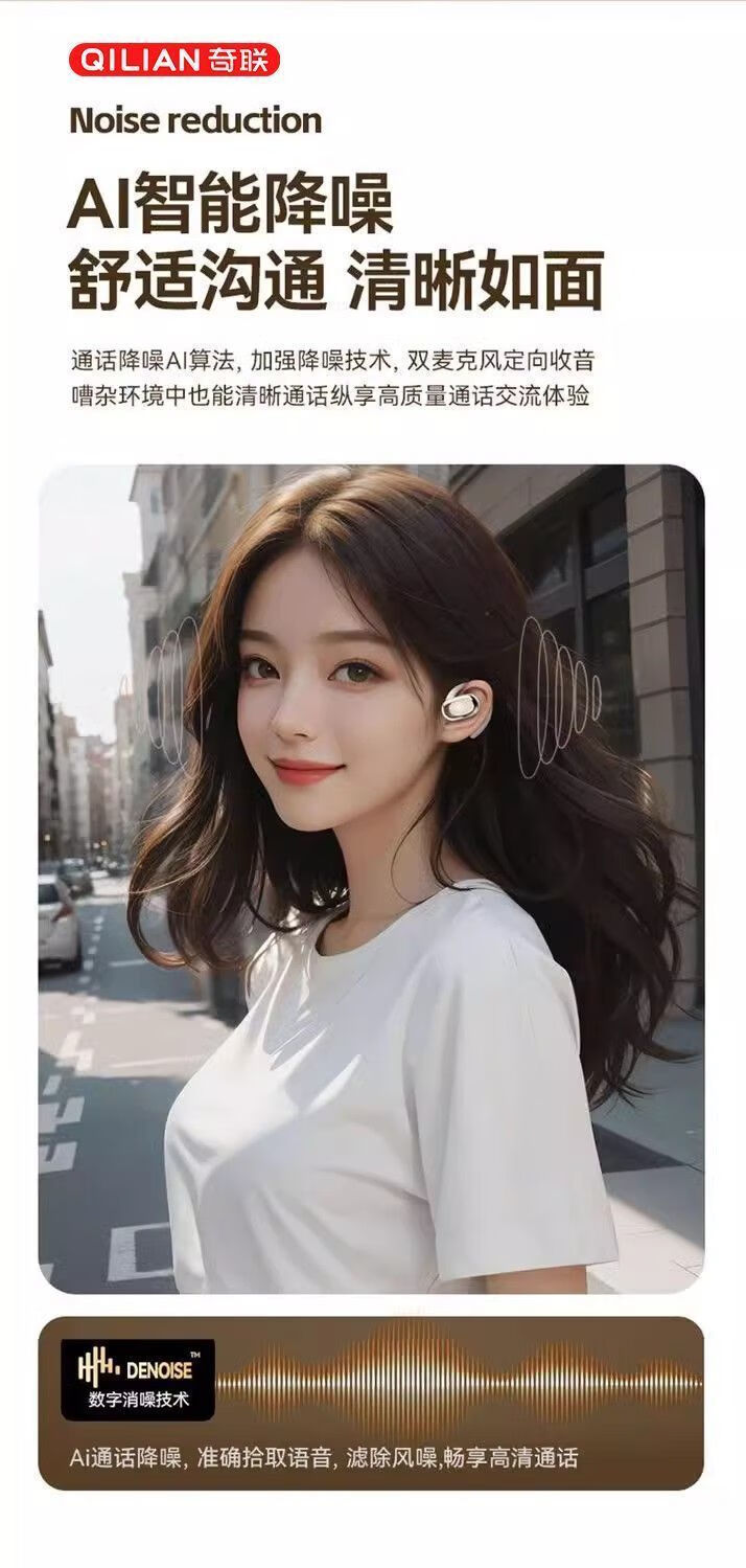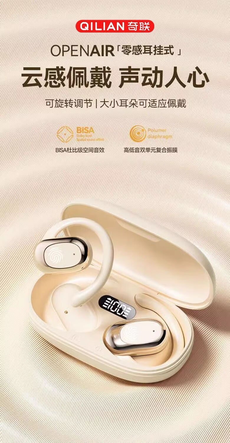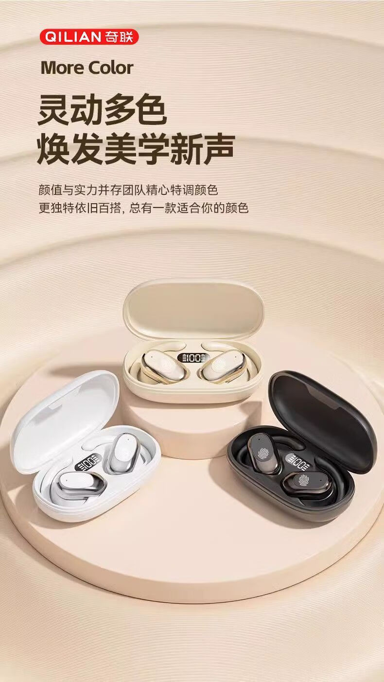 奇联不入耳蓝牙耳机挂耳式2025新款无线听歌音乐高音质游戏低延迟久戴不痛超长续航开放式ENC智能降噪 白色
