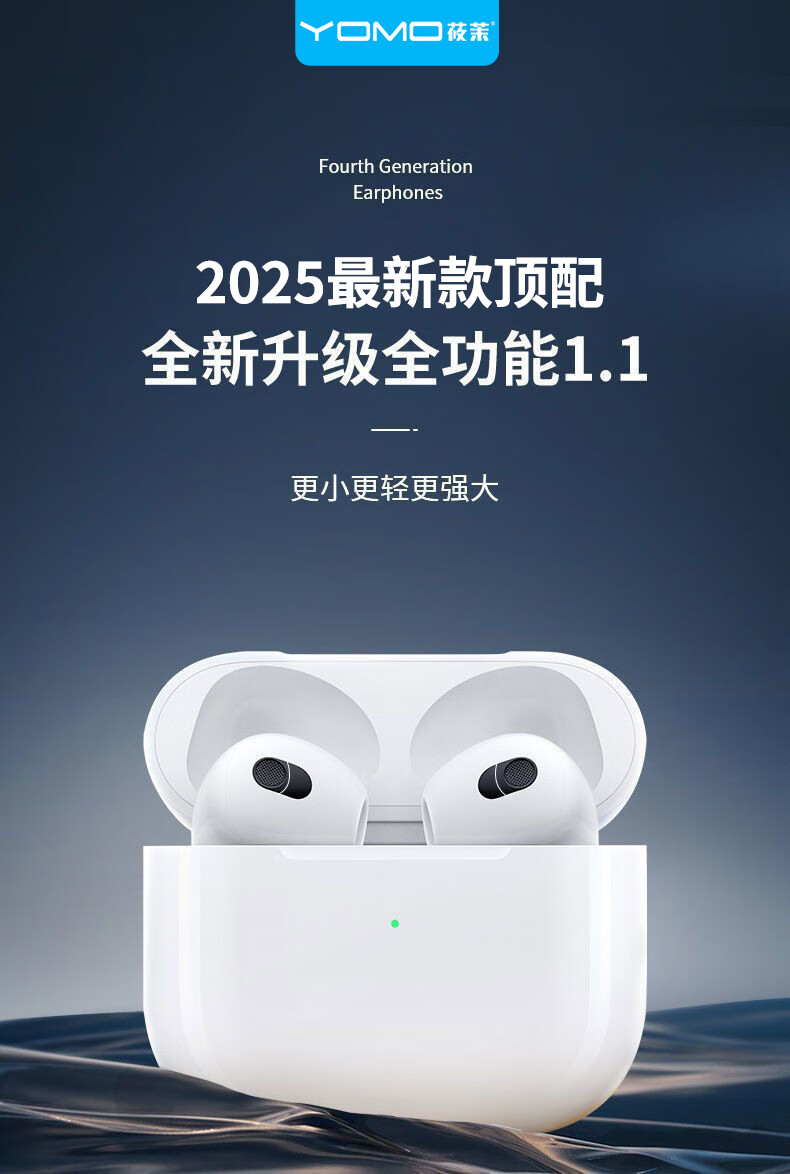 YOMO【顶配柏林之音】蓝牙耳机 半入耳式无线耳机 长续航运动耳机适用于苹果华为小米oppo手机Air7