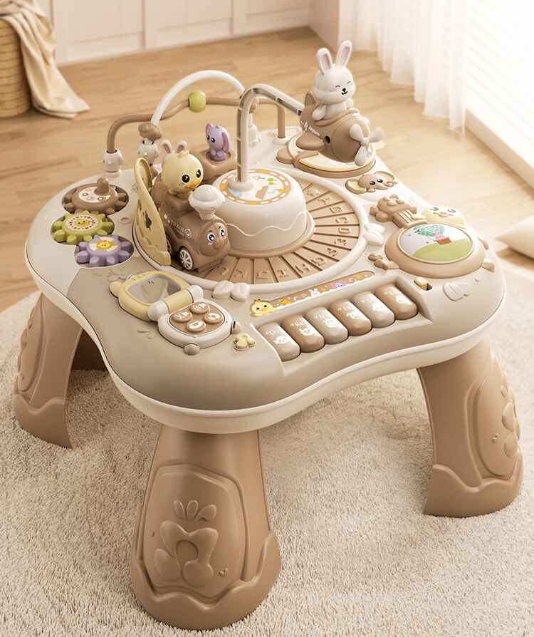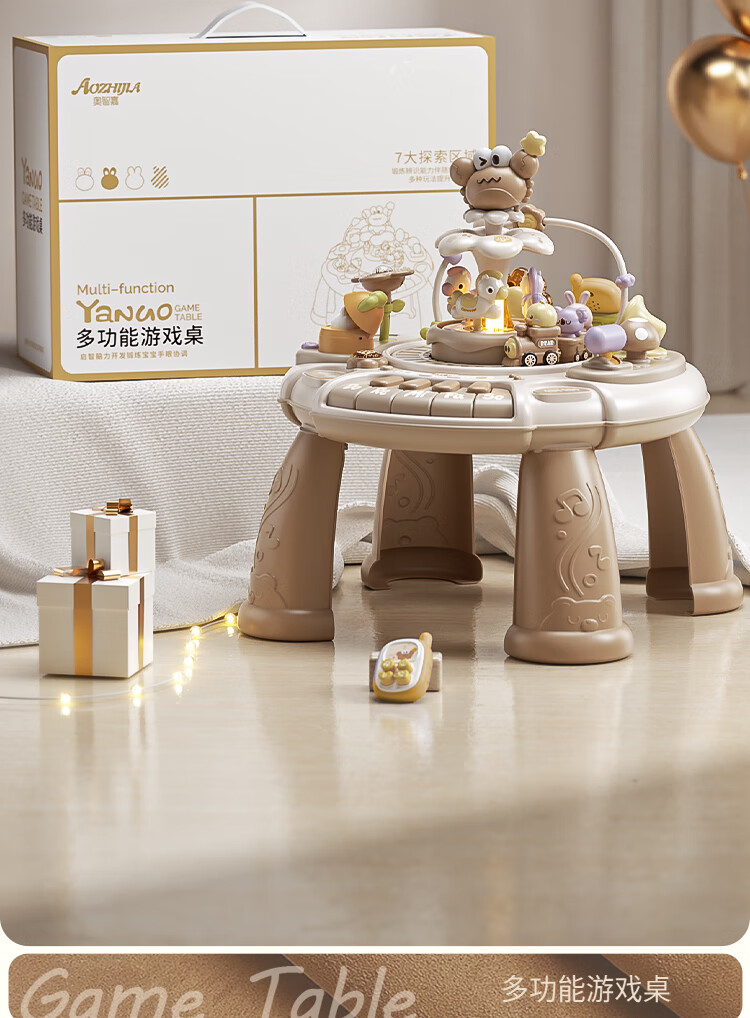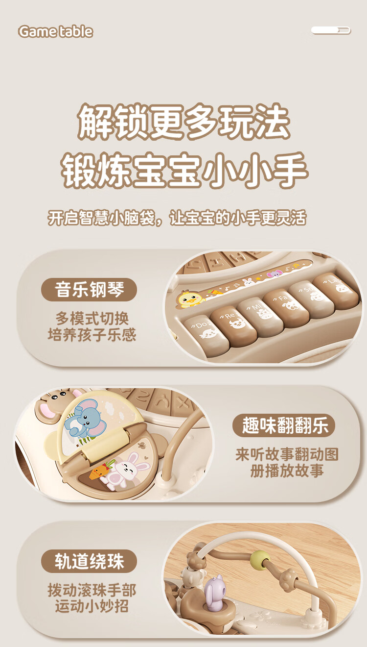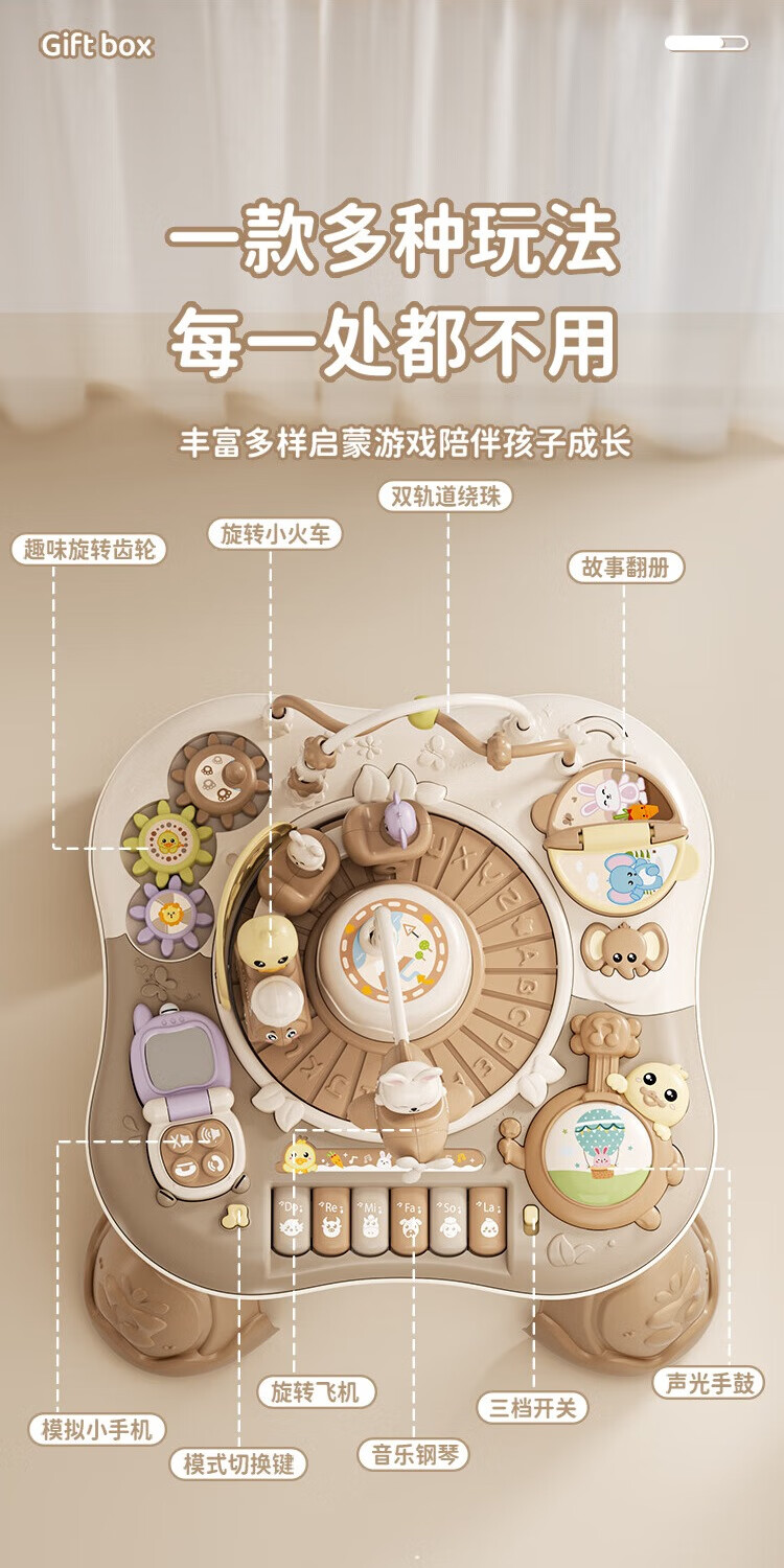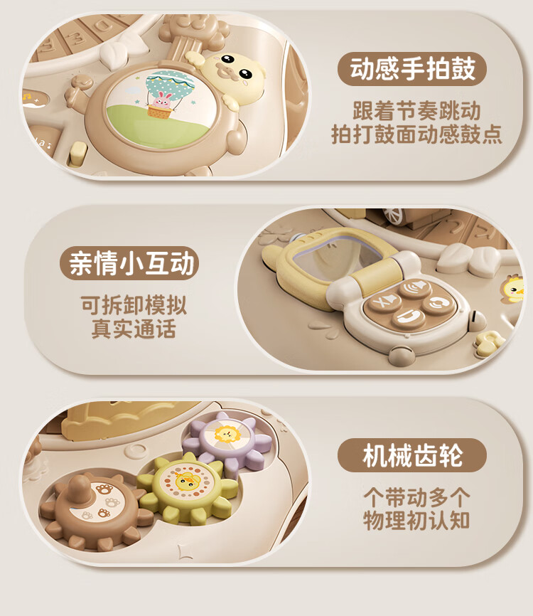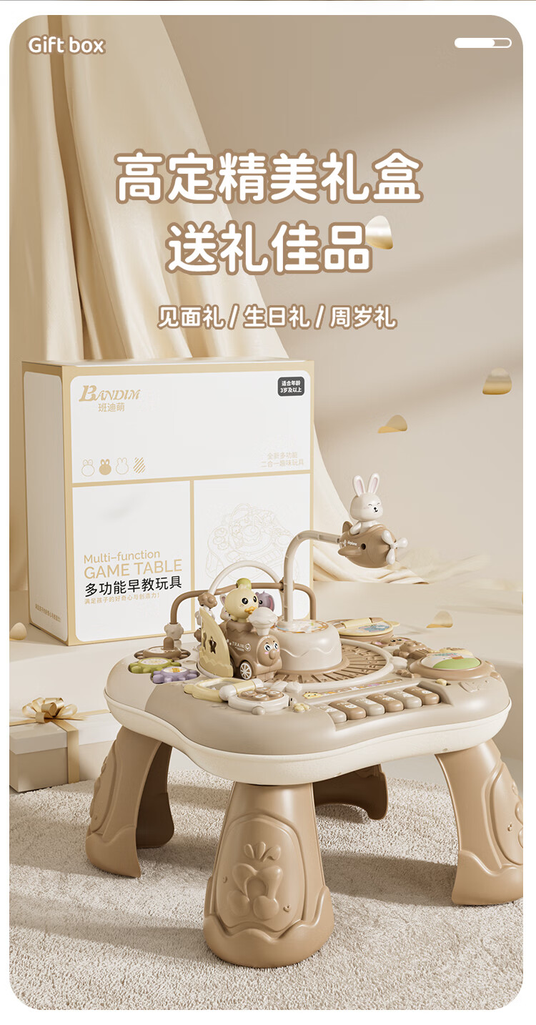 班迪萌(BANDIMENG)多功能游戏桌婴儿玩具0-1岁益智多面体手拍鼓忙碌版宝宝周岁礼物 [礼盒版]多功能奶咖早教游戏桌