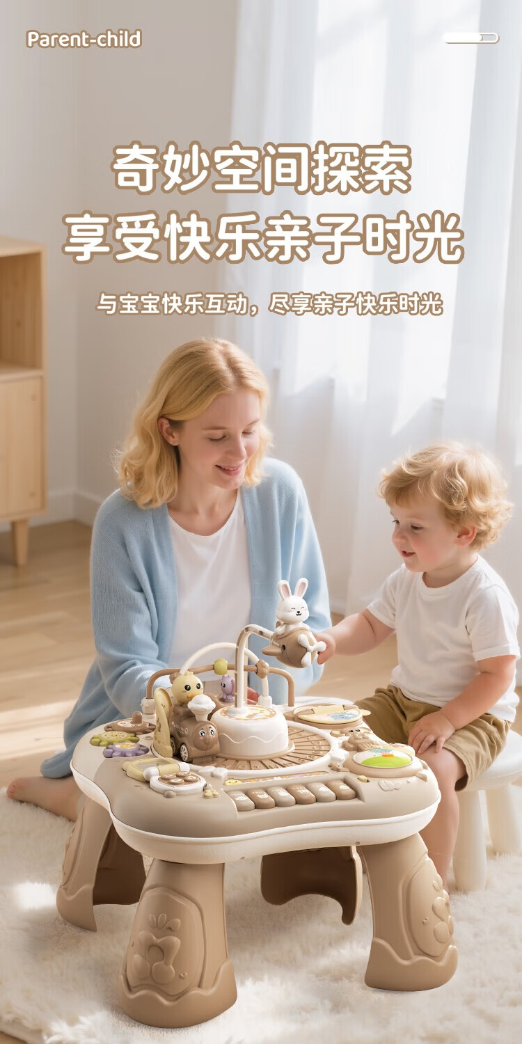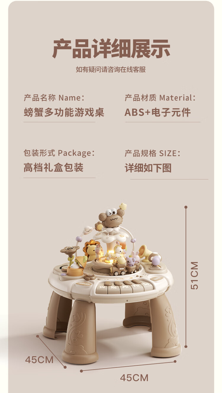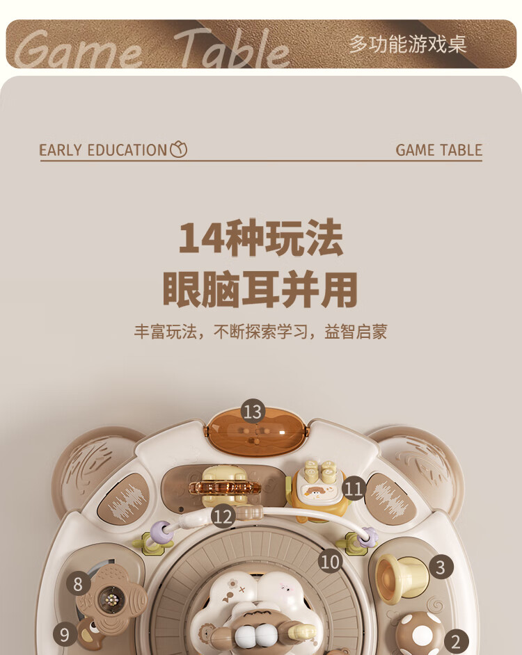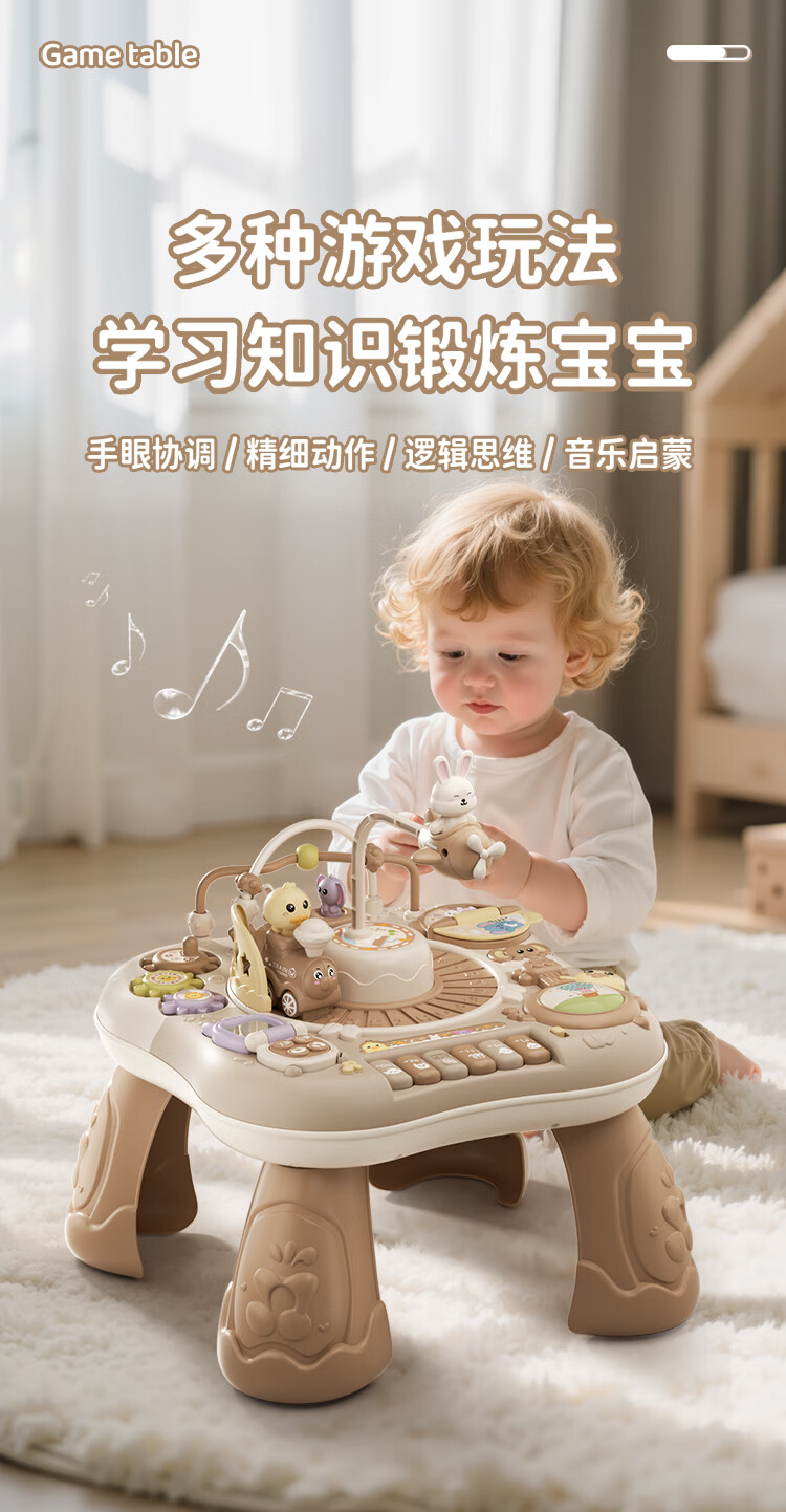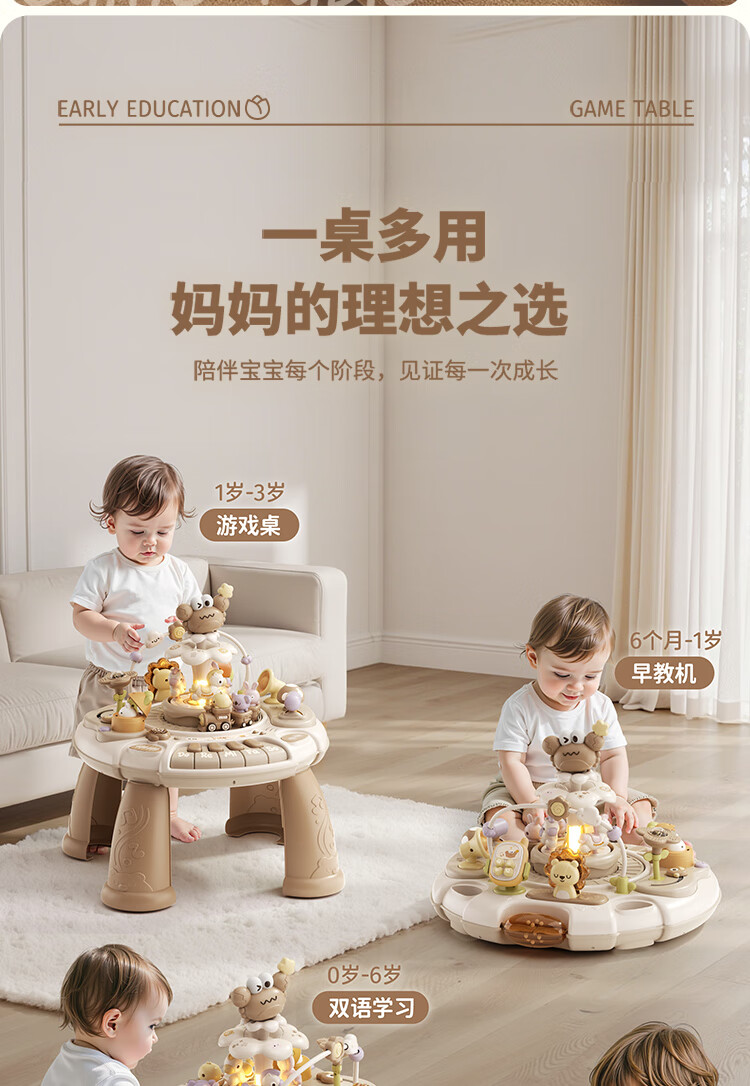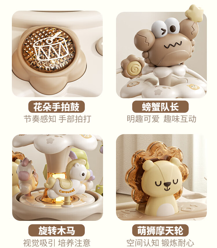 班迪萌(BANDIMENG)多功能游戏桌婴儿玩具0-1岁益智多面体手拍鼓忙碌版宝宝周岁礼物 [礼盒版]多功能奶咖早教游戏桌