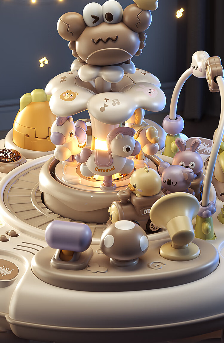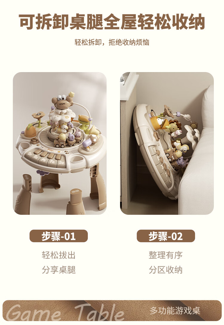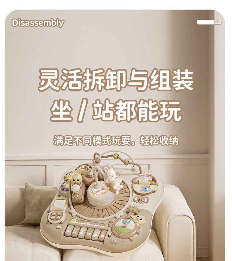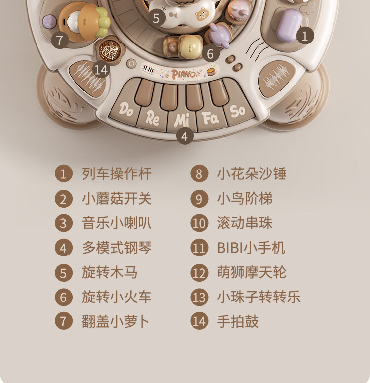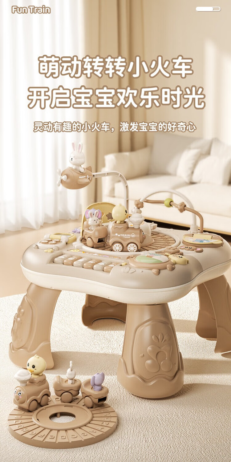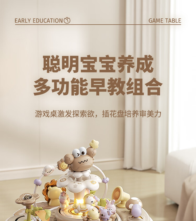 班迪萌(BANDIMENG)多功能游戏桌婴儿玩具0-1岁益智多面体手拍鼓忙碌版宝宝周岁礼物 [礼盒版]多功能奶咖早教游戏桌
