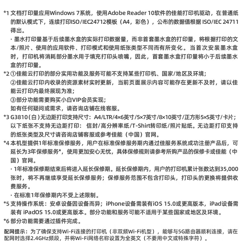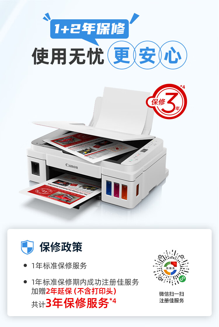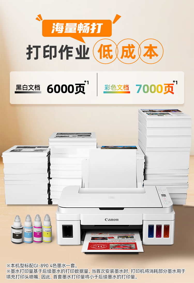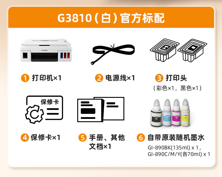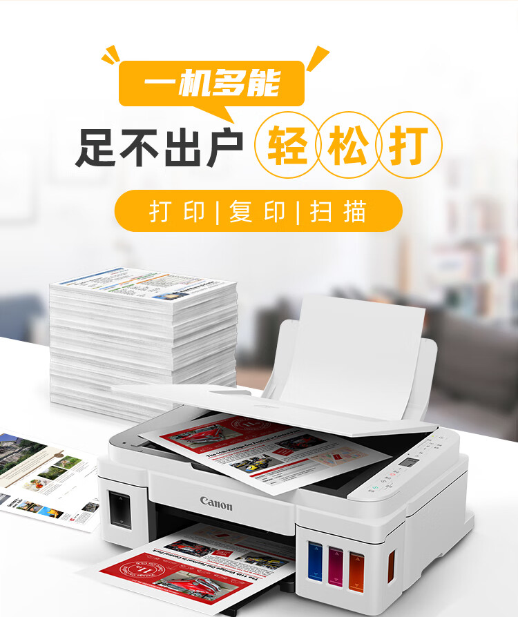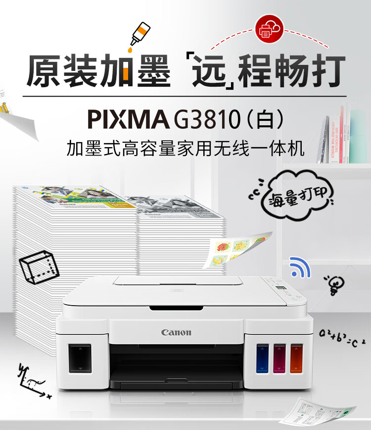 佳能(Canon)G3810大容量可加墨打印机打印复印扫描一体机家用家庭学生作业办公彩色喷墨墨仓式手机无线连接 【G3810 白】3in1-无线打印-7000页 官方标配