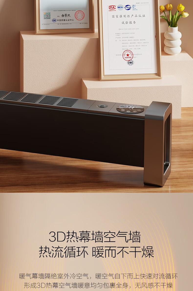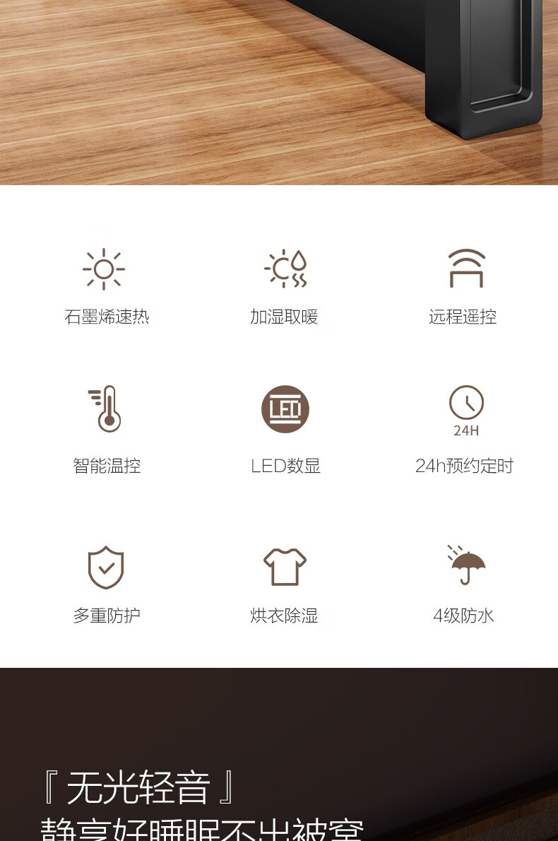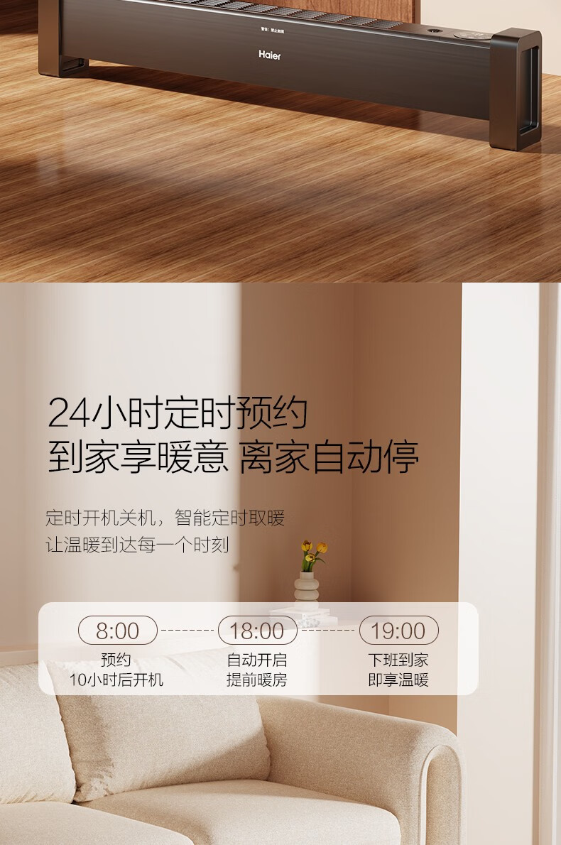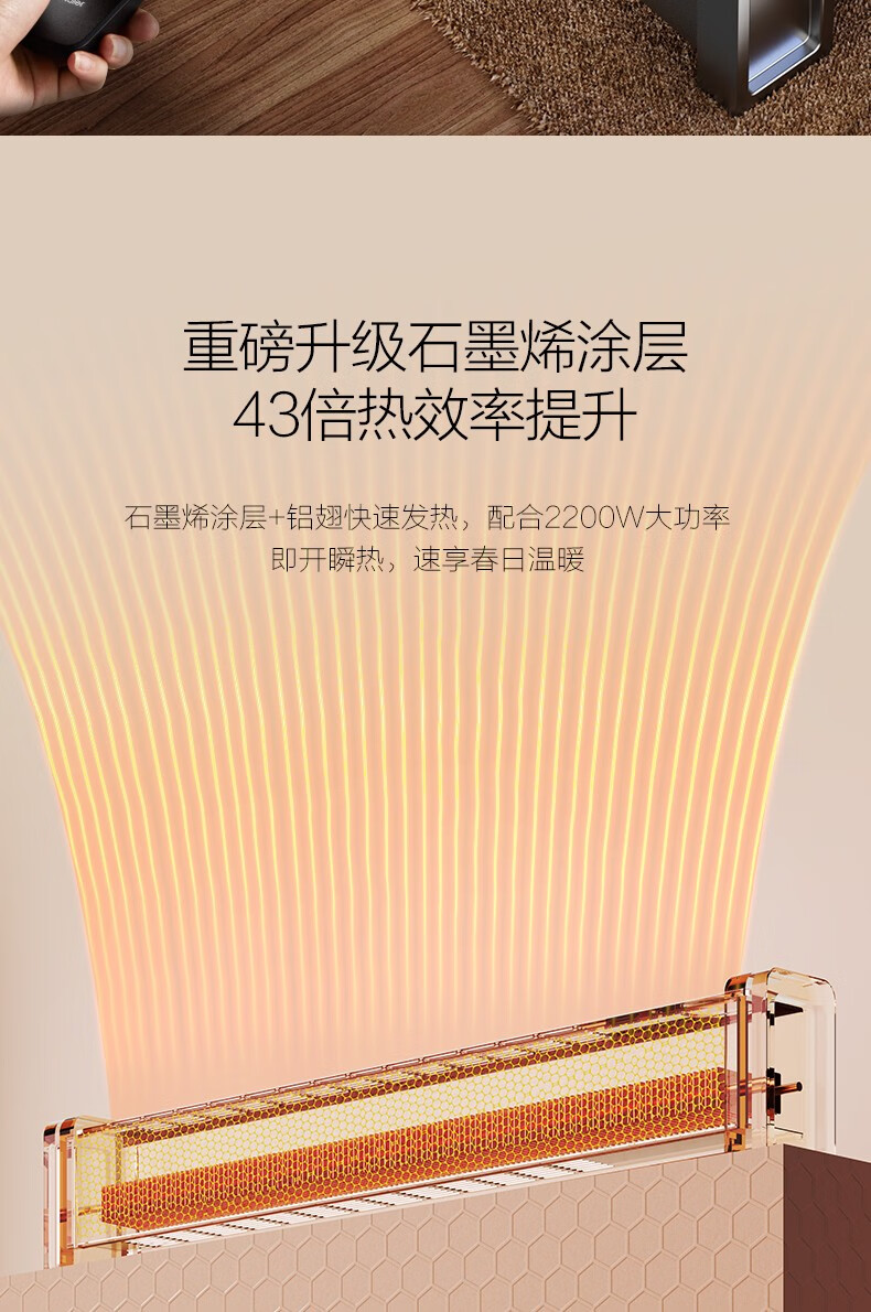 海尔(Haier)石墨烯踢脚线取暖器家用电暖器电暖气片节能取暖神器遥控加湿4级防水浴室干衣速热移动地暖烤火炉 【石墨烯速热-恒温遥控款】HKS2215C