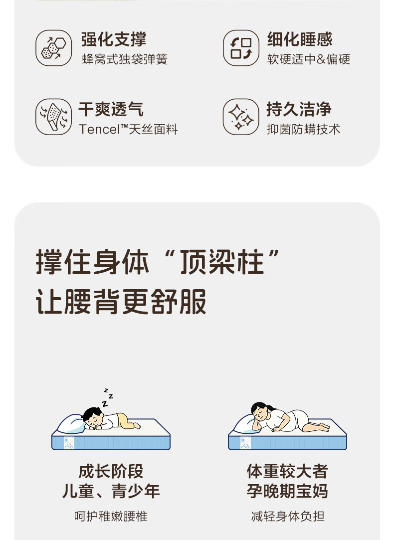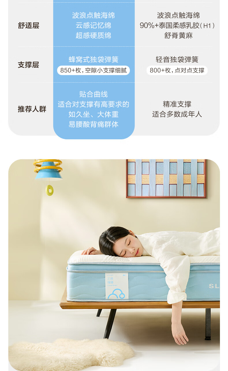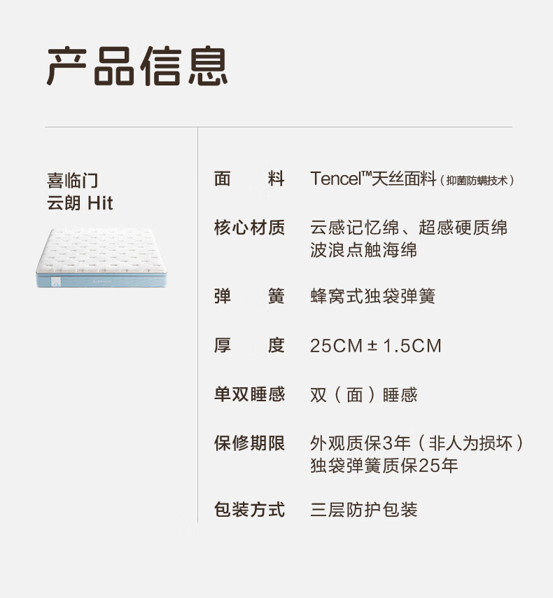 喜临门云朗弹簧床垫 强化支持 细化睡感 床垫软硬适中 云朗hit 云朗hit-单床垫 1.8*2米