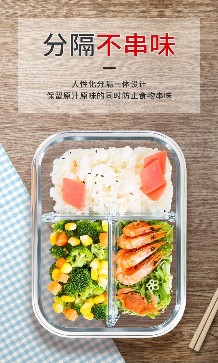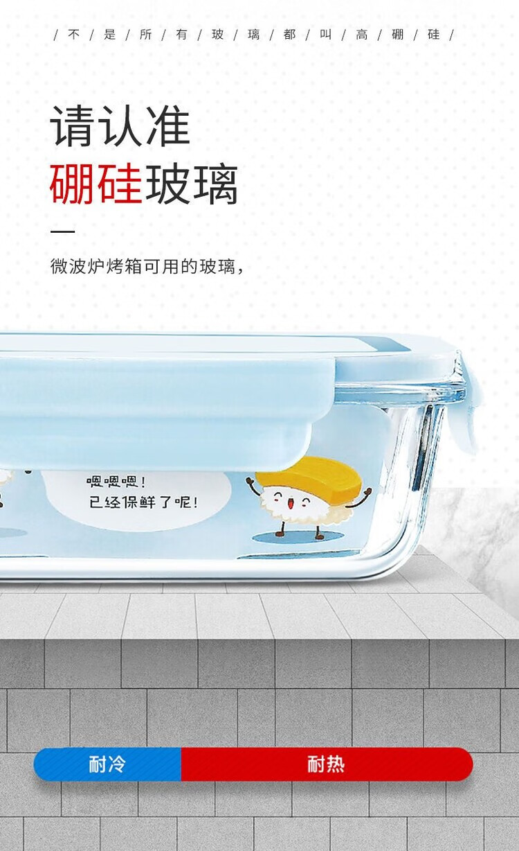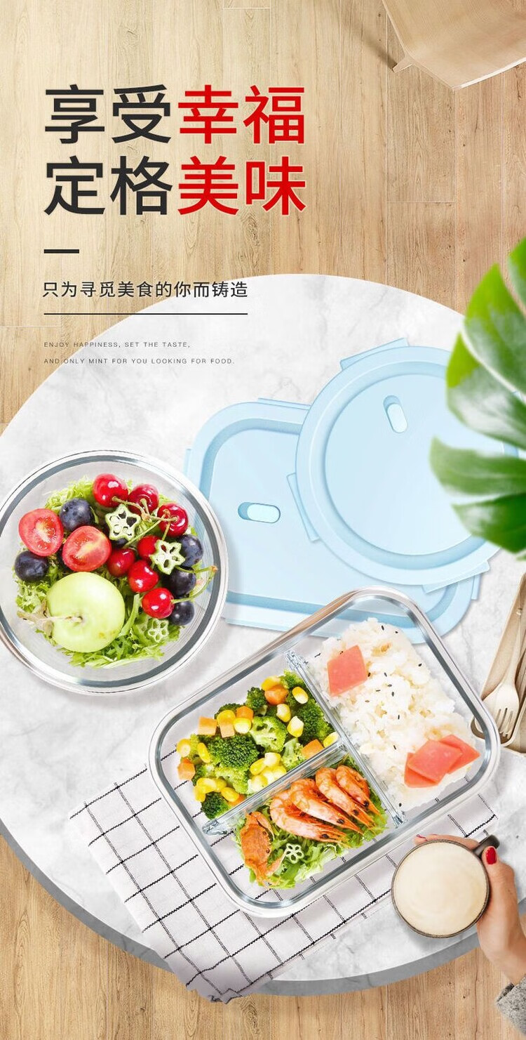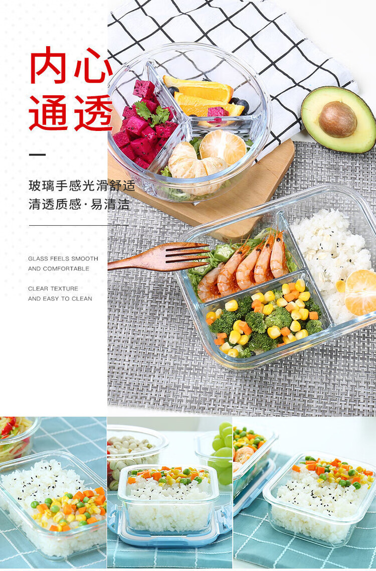 DEATKN上班族可微波炉加热专用碗耐高温分隔保温玻璃饭盒水果便当盒餐盒 岩蓝. 无隔400毫升