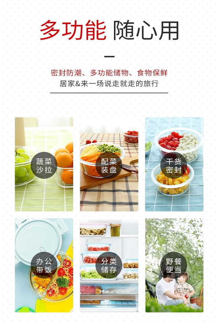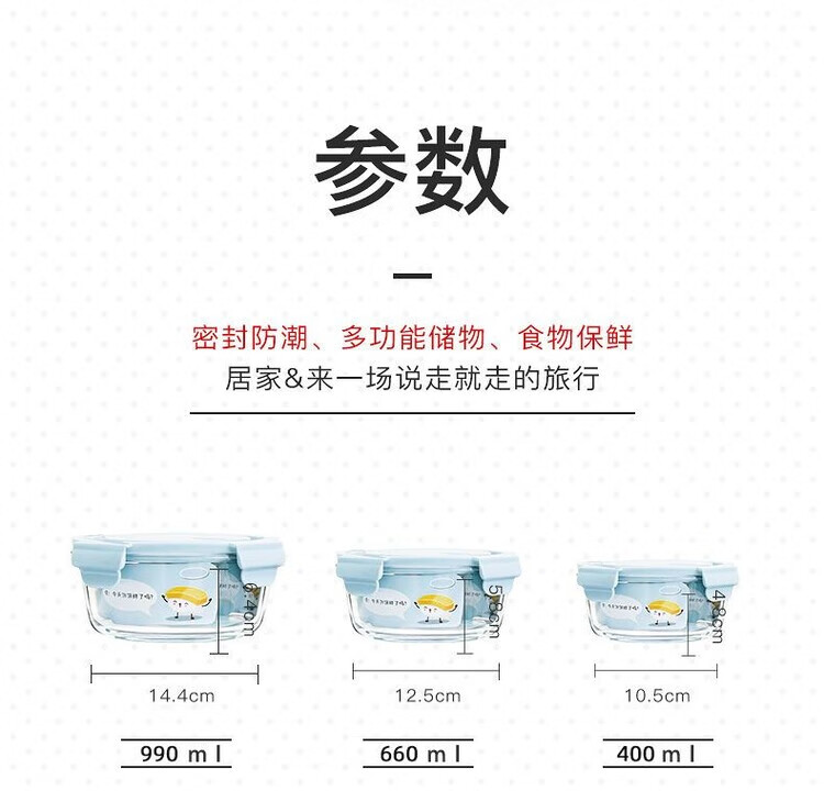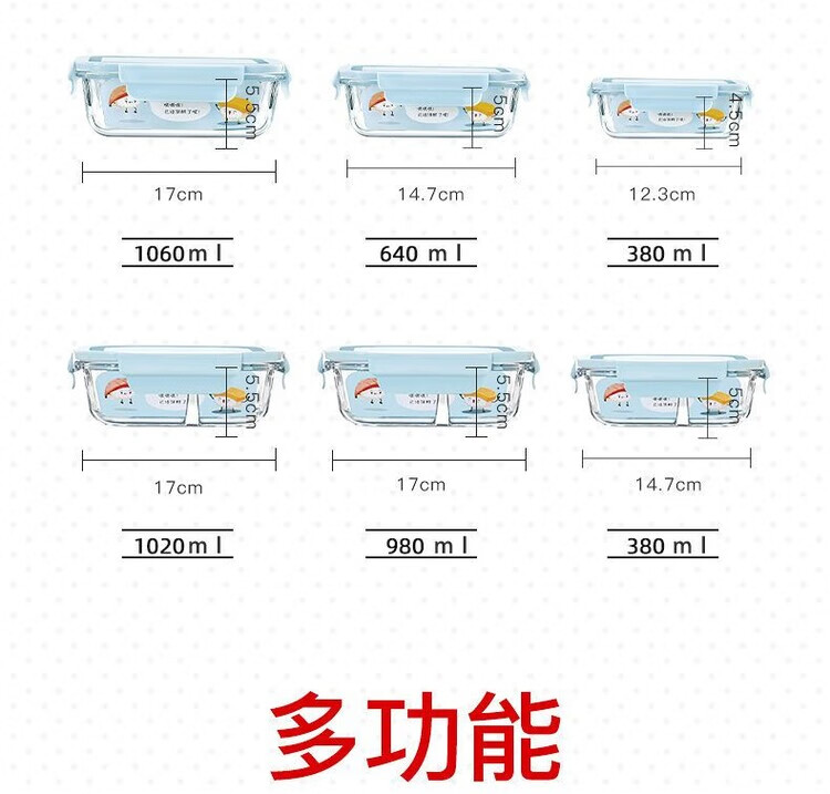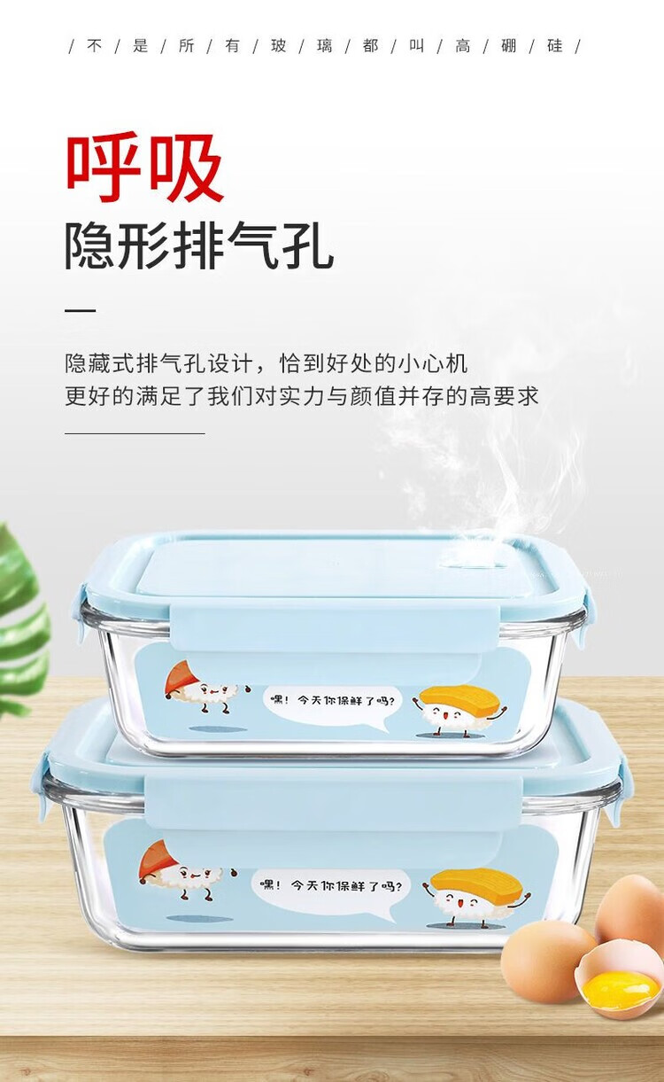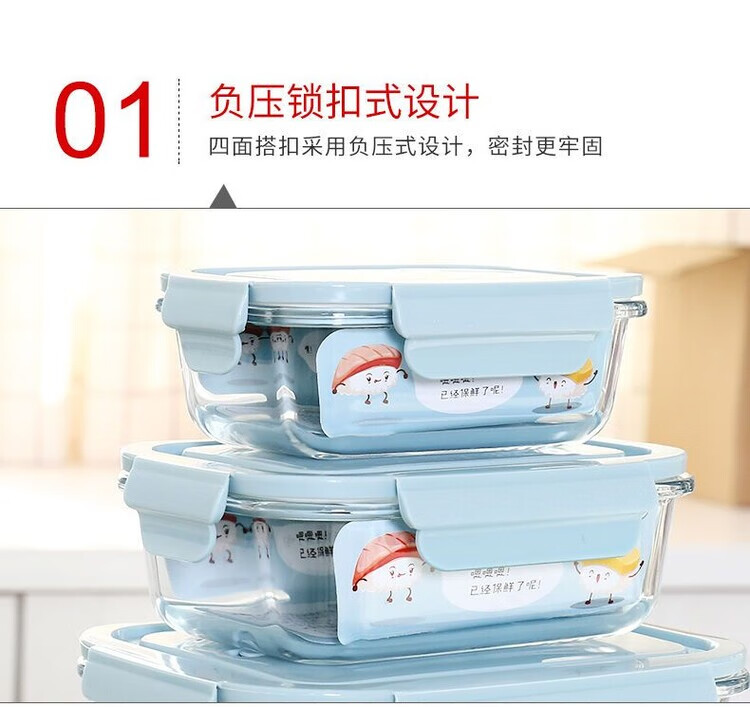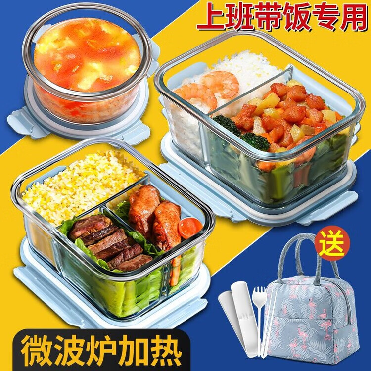 DEATKN上班族可微波炉加热专用碗耐高温分隔保温玻璃饭盒水果便当盒餐盒 岩蓝. 无隔400毫升