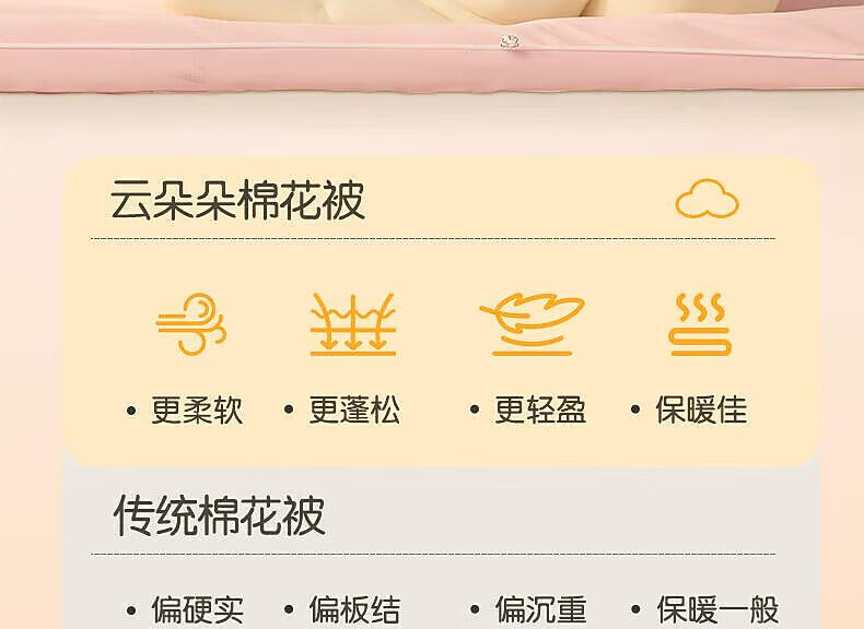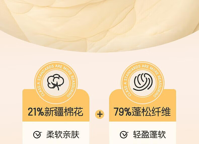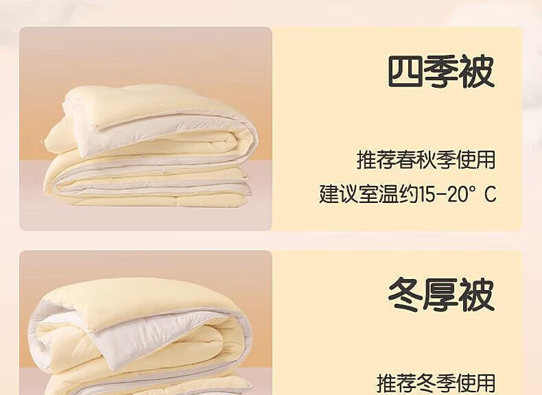 百丽丝被子a类新疆棉花抗菌被子四季被冬季被子抗菌 云朵朵棉花抗菌四季被(黄奶油色) 200cm×230cm