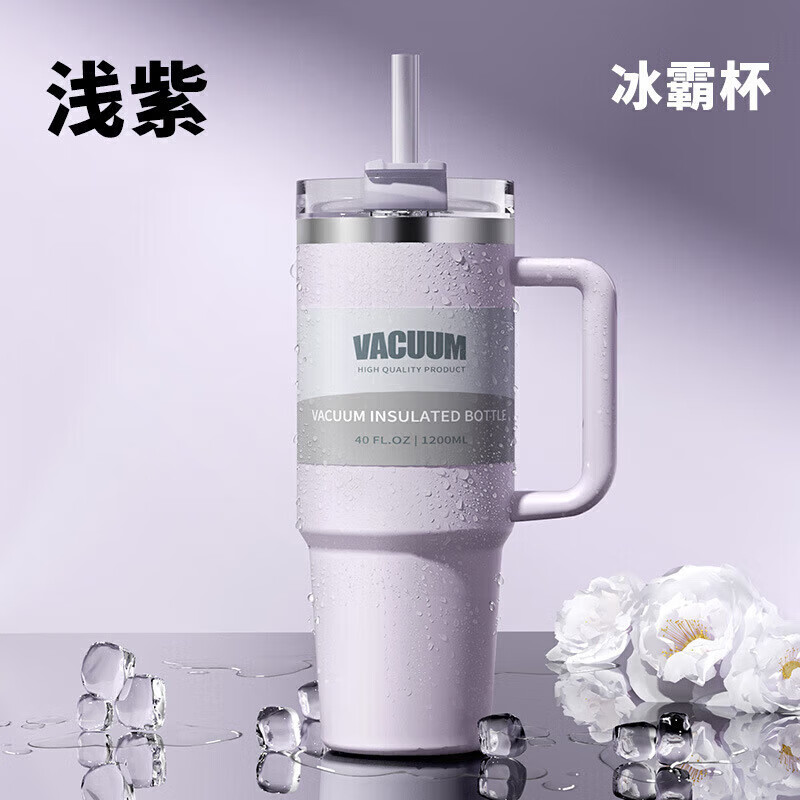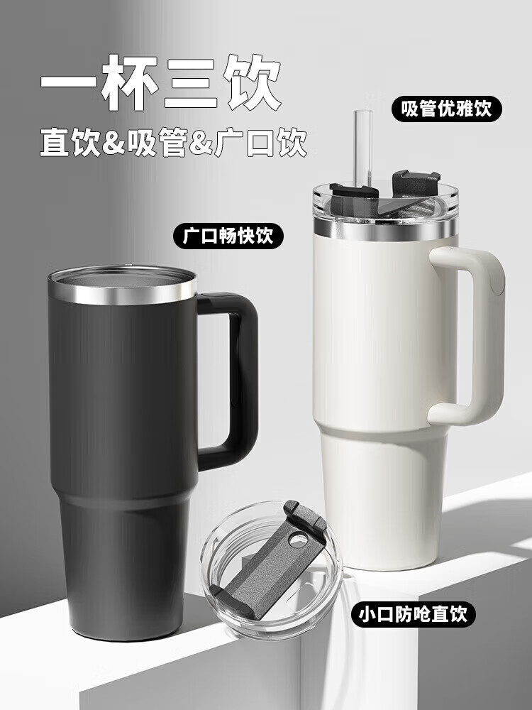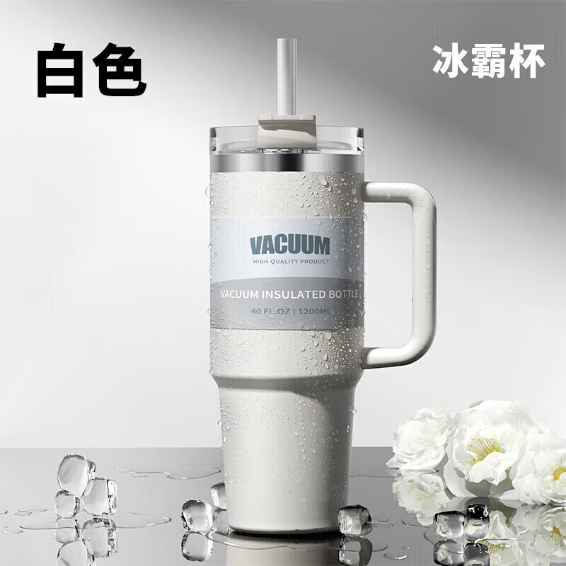 皇家洛克 ROYALLOCKE冰霸杯304不锈钢水杯咖啡杯保温杯保冷吸管随行便携杯子大容量 白色1200Ml