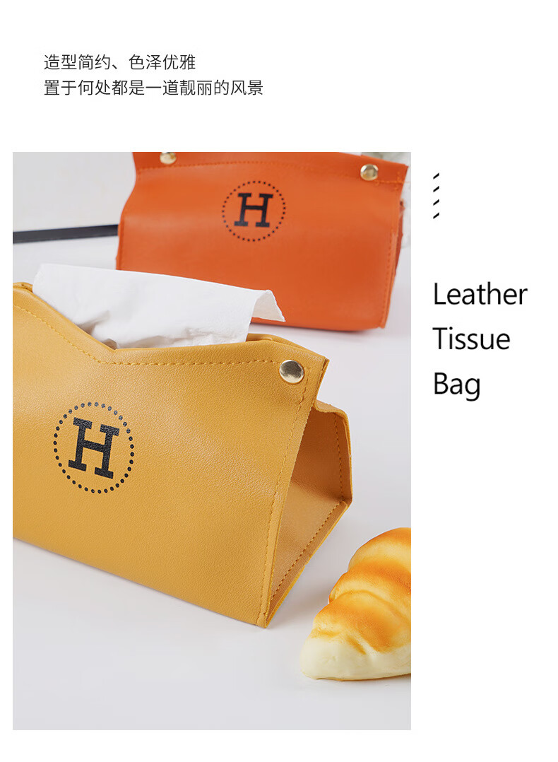 【精选】pu纸巾盒创意皮革纸巾盒北欧家用客厅轻奢抽纸盒卧室高档 V口橘色(1个装)