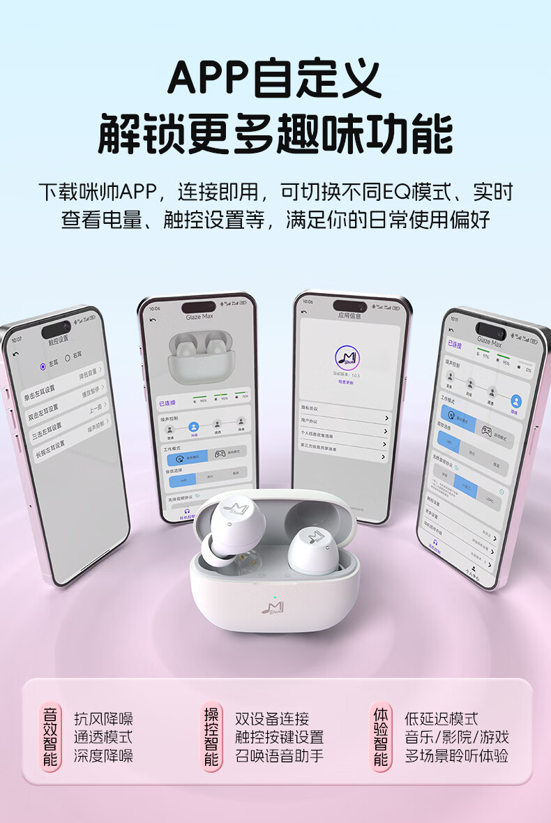 咪帅琉璃MAX无线蓝牙耳机2025新款高颜值降噪音乐耳机男女士运动入耳式高音质 【钻石黑】-55dB深海级降噪+AI通话降噪+HIFI级音质 标配版