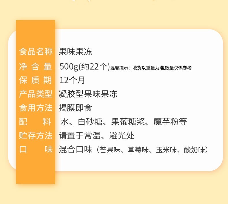 味滋源 果冻 4种口味混合水果味果冻 芒果草莓玉米酸奶味 儿童零食 500g *1箱