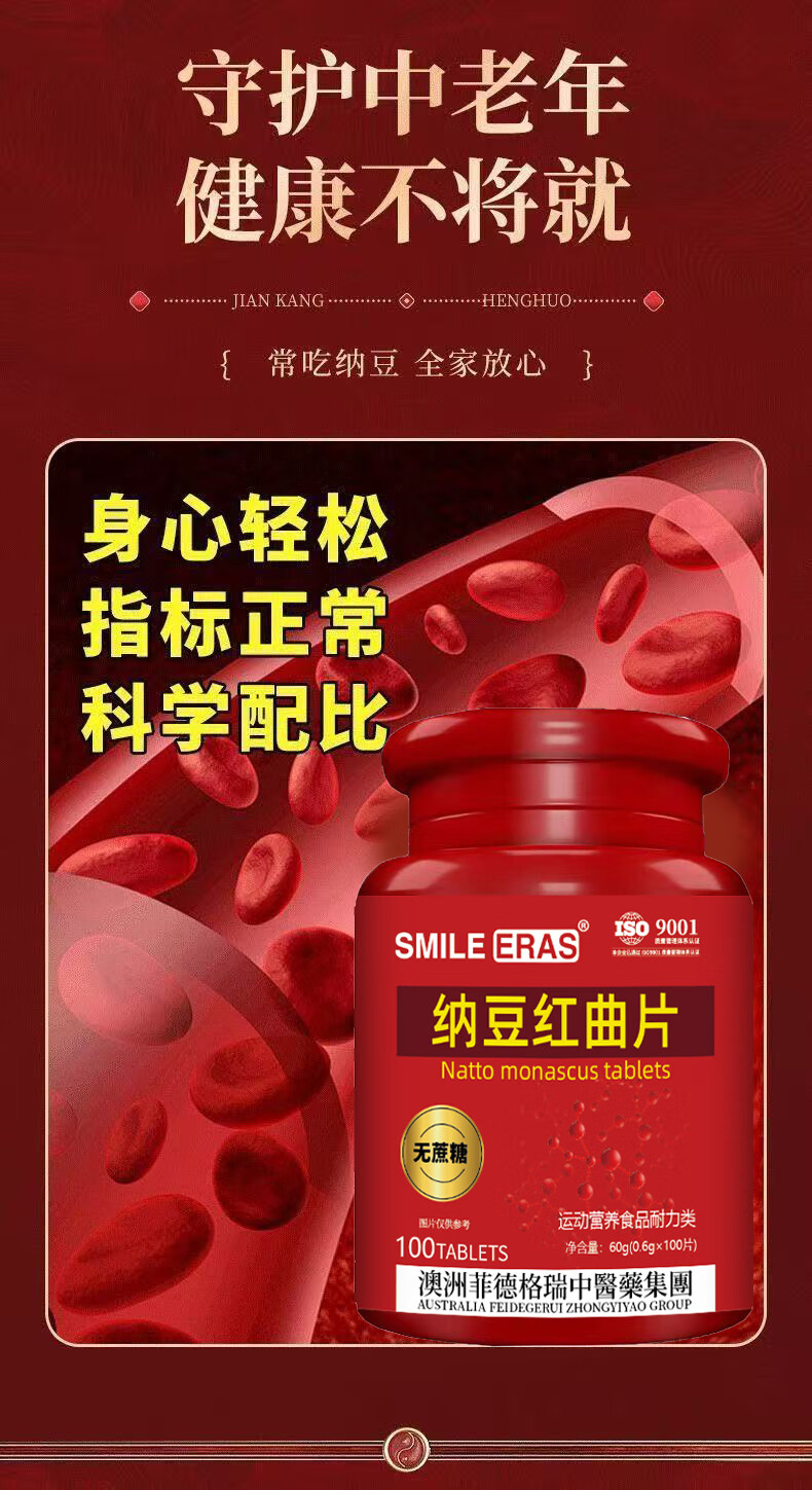 纳豆红曲片高活性纳豆激酶科学配比降血脂降血压守护老人孝敬爸妈 纳豆红曲片1瓶60g