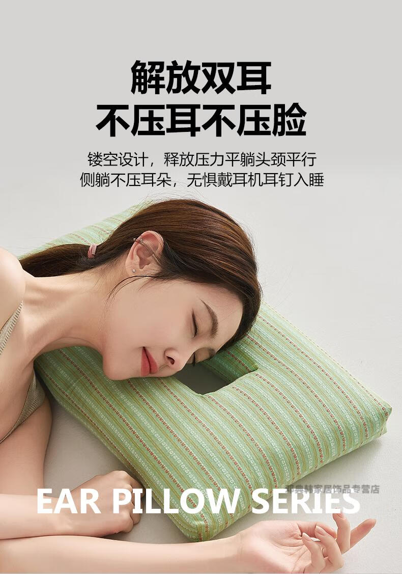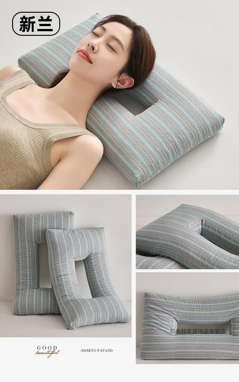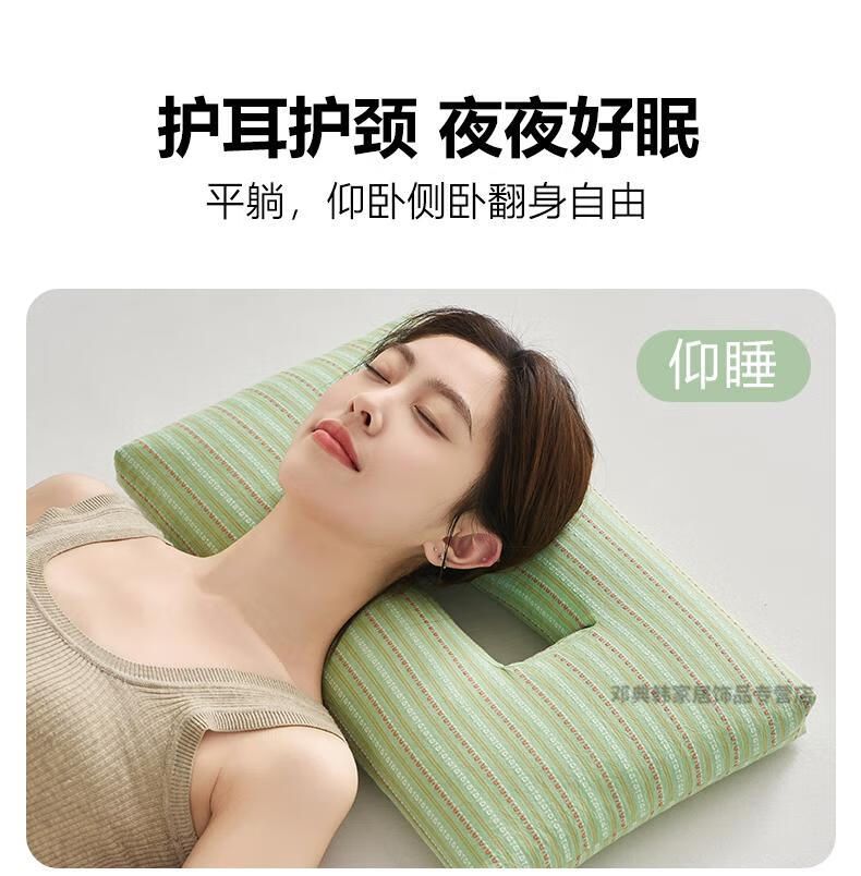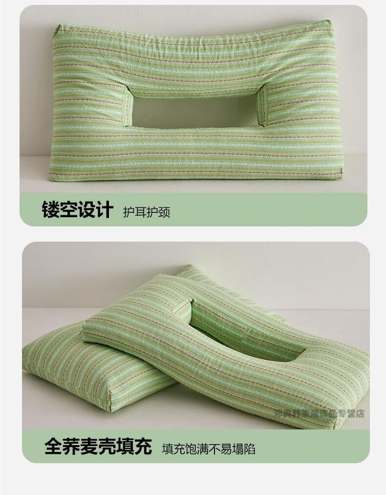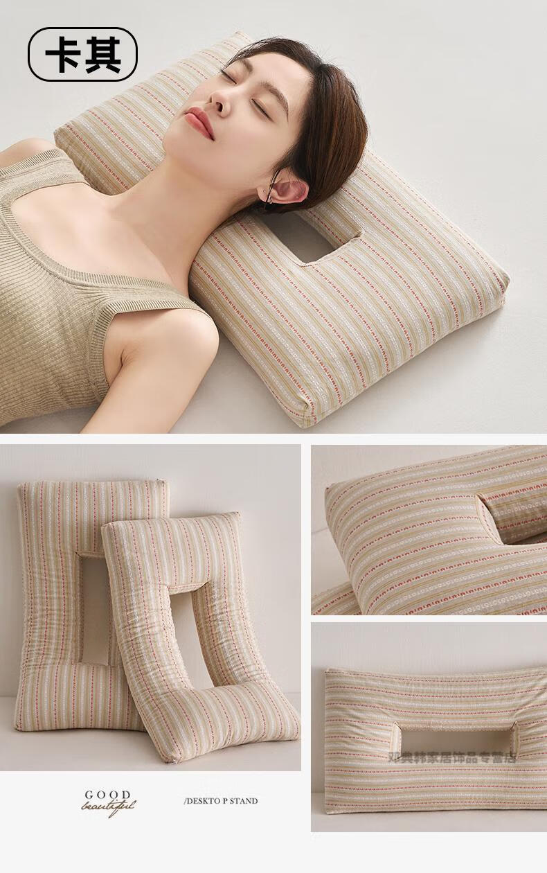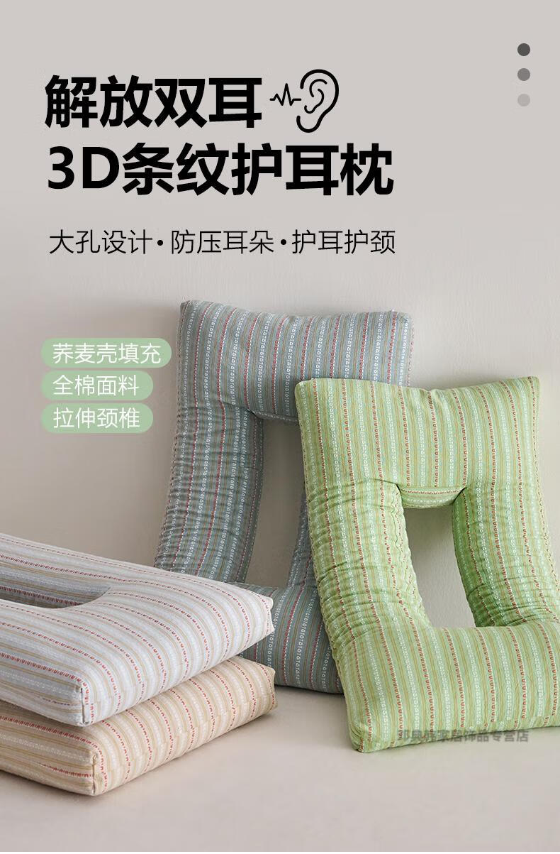 DEATKN德国荞麦壳护耳洞枕头一对侧睡趴睡枕芯镂空不压脸防皱纹术后防压 卡其-解放双耳_侧睡护耳枕【单祇