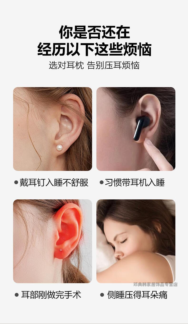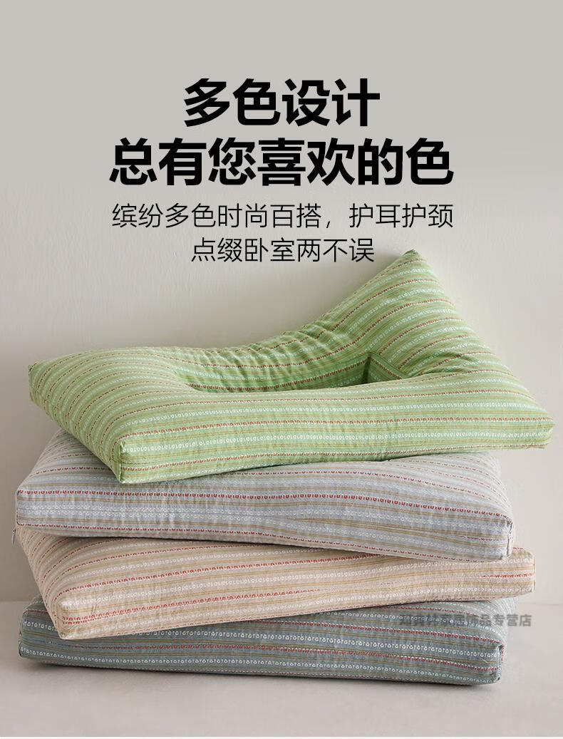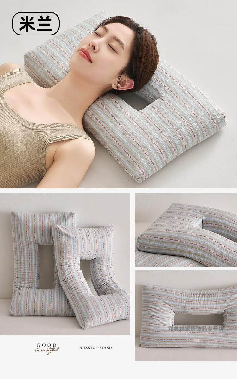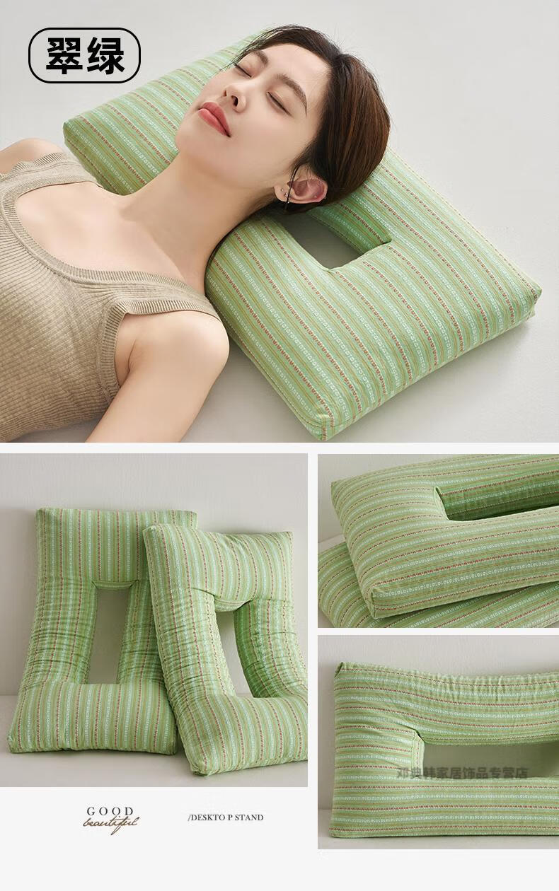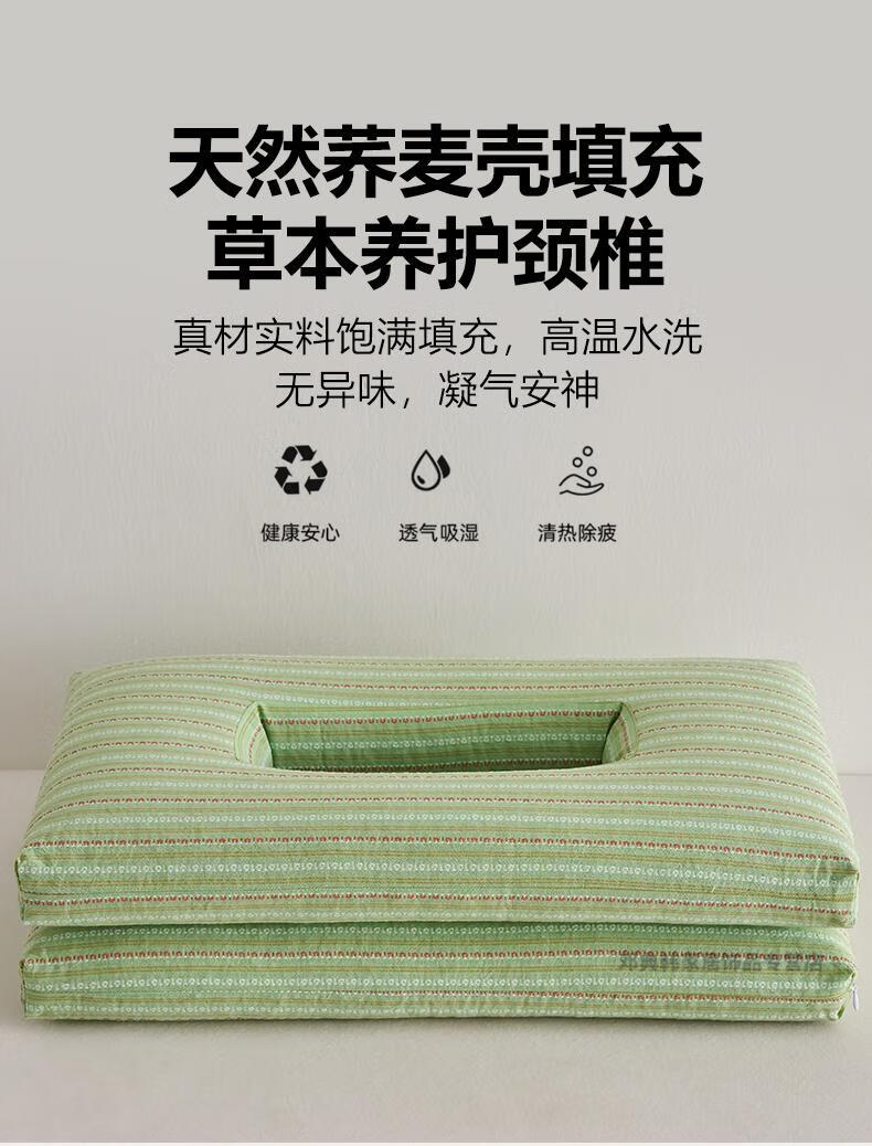 DEATKN德国荞麦壳护耳洞枕头一对侧睡趴睡枕芯镂空不压脸防皱纹术后防压 卡其-解放双耳_侧睡护耳枕【单祇
