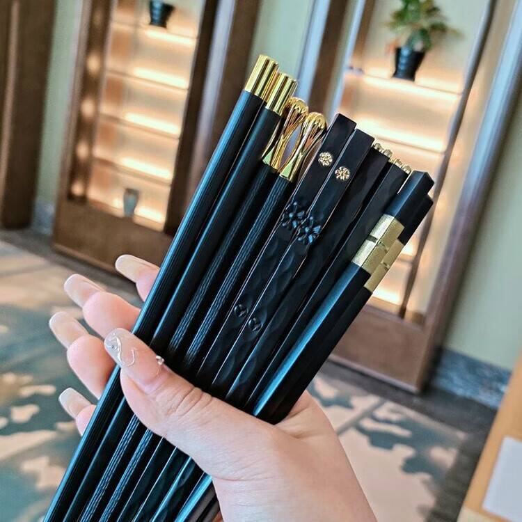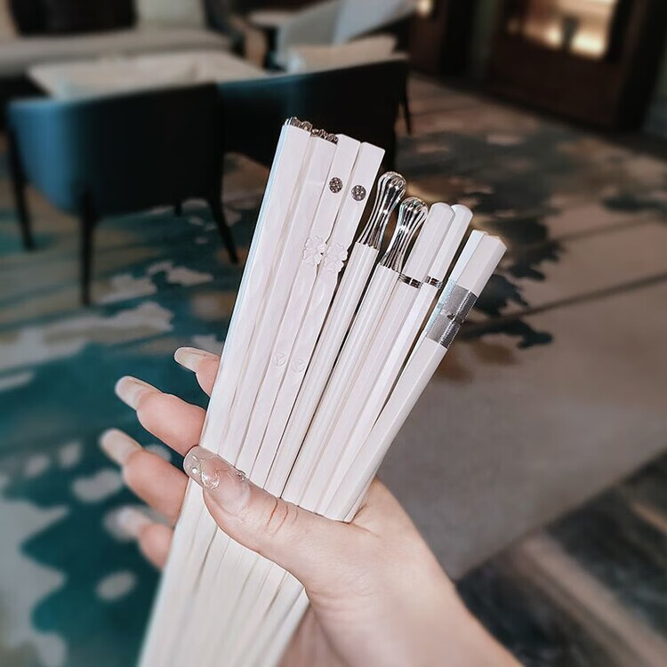 DEATKN【老板娘自用轻奢款】北欧风筷子家用耐高温一人一筷分餐筷合金筷 5双汉白银简约筷【Ag离子抗菌款】