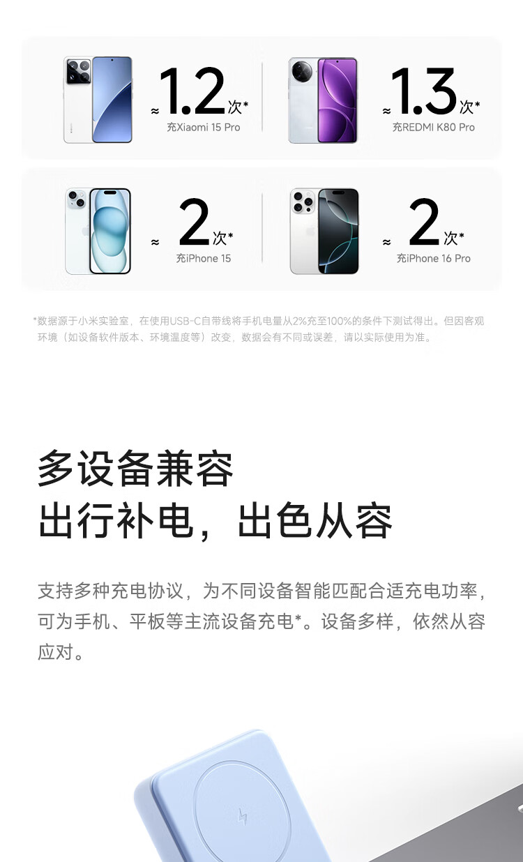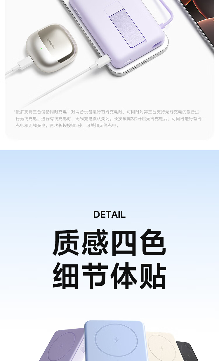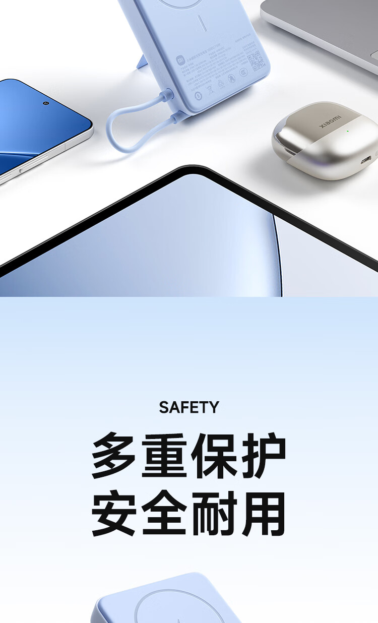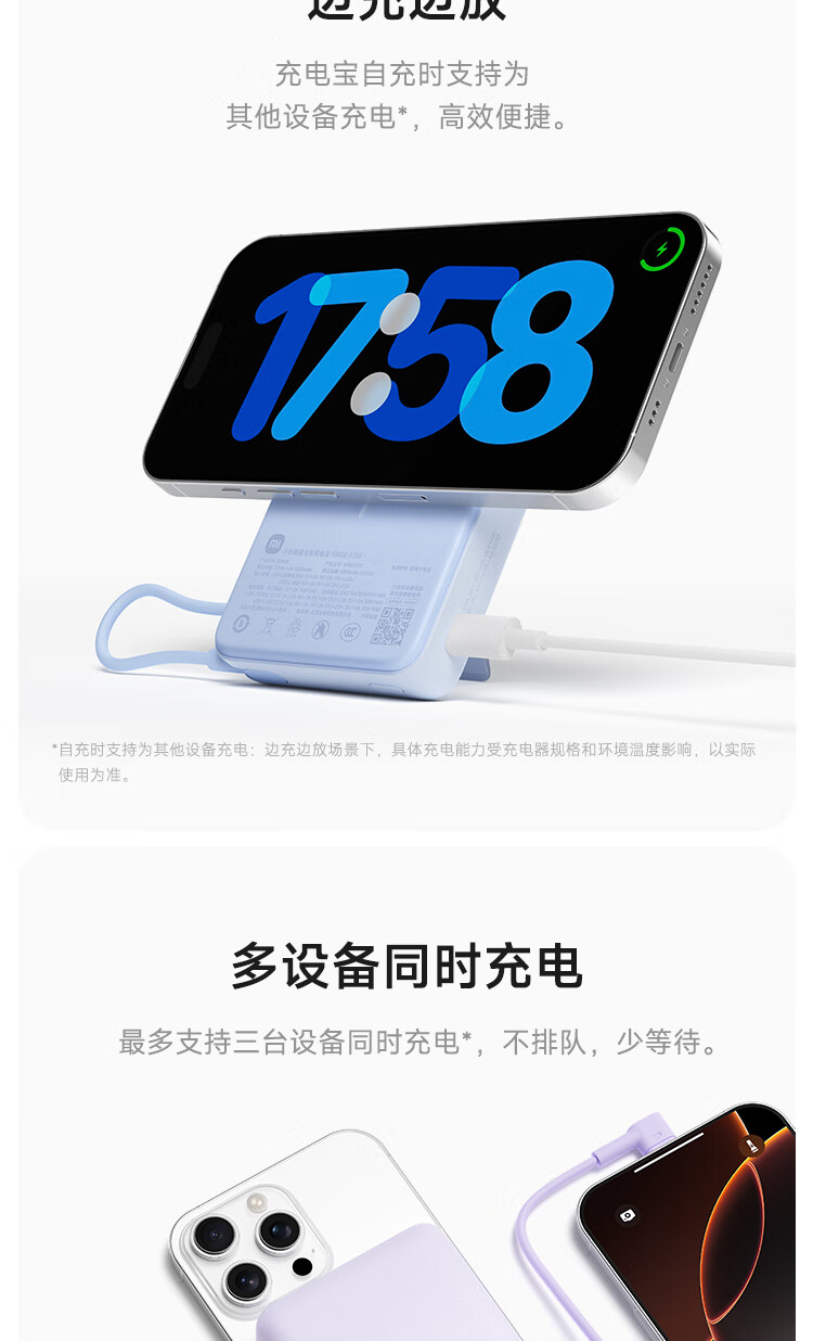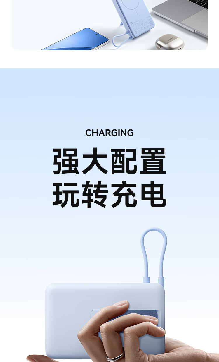 小米(MI)【3C认证】磁吸支架充电宝 10000 7.5W 浅蓝色 可上飞机 有线33W快充 iPhone安卓可用