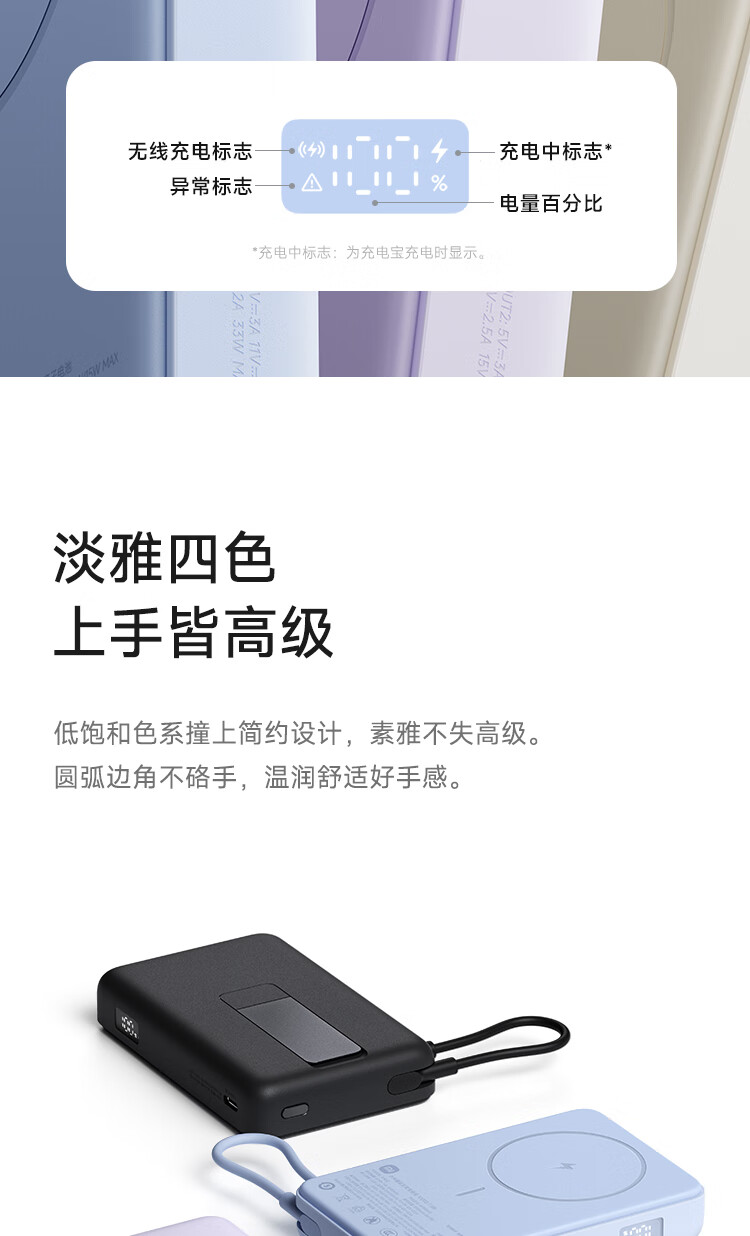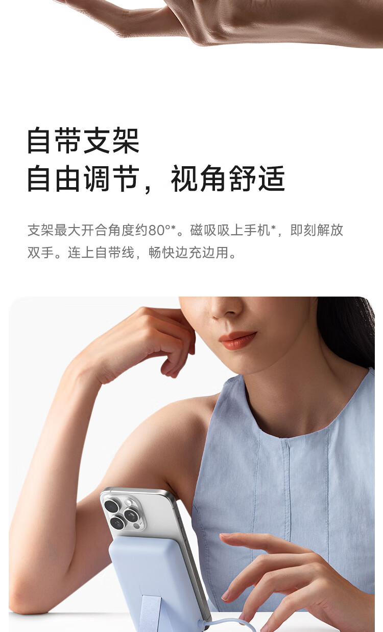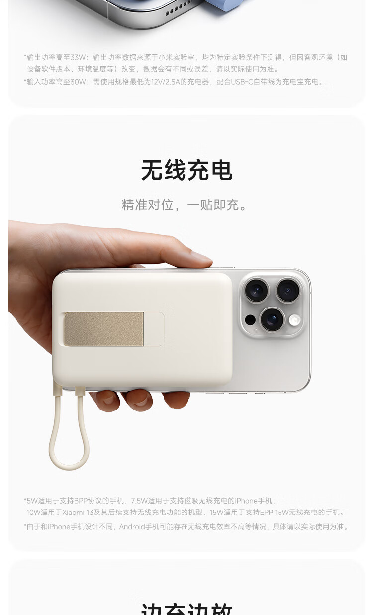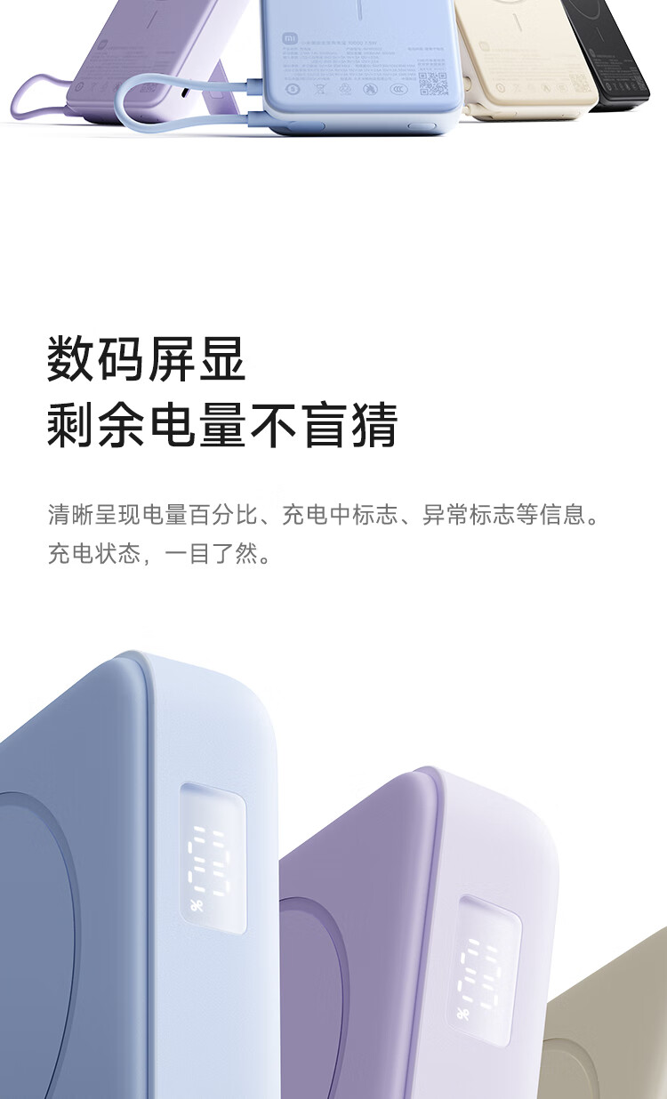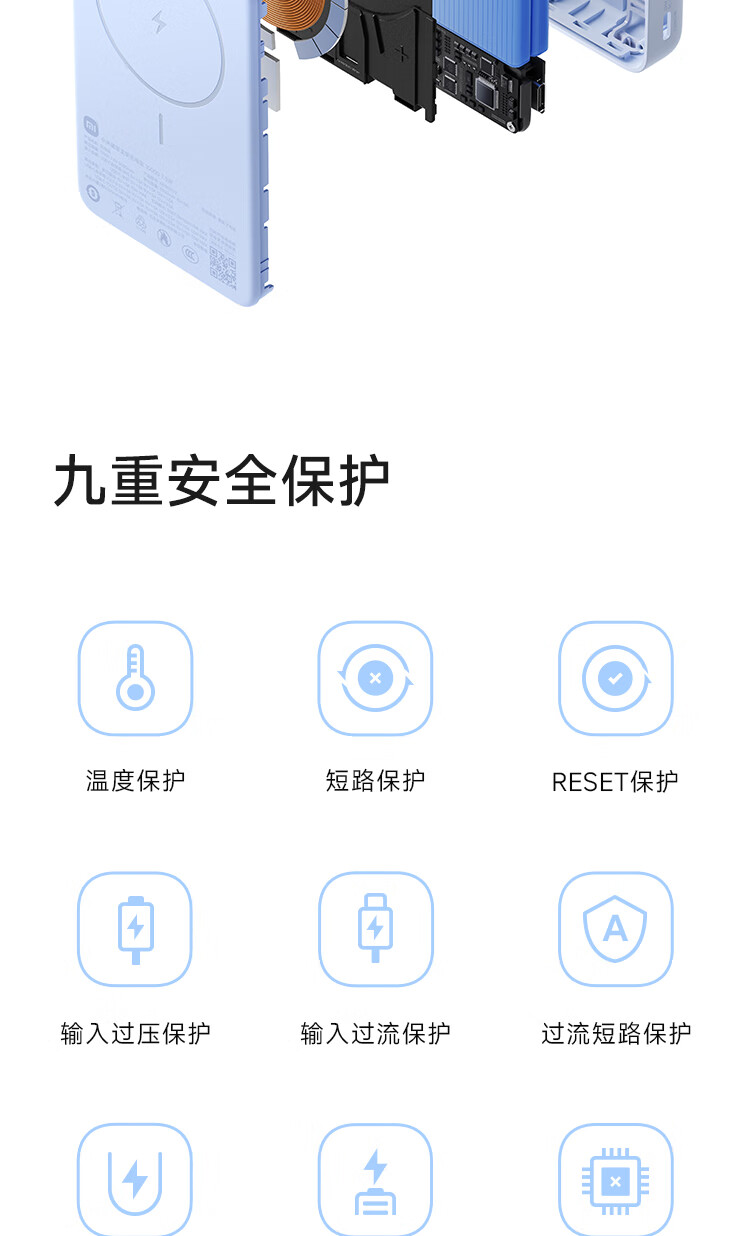 小米(MI)【3C认证】磁吸支架充电宝 10000 7.5W 浅蓝色 可上飞机 有线33W快充 iPhone安卓可用